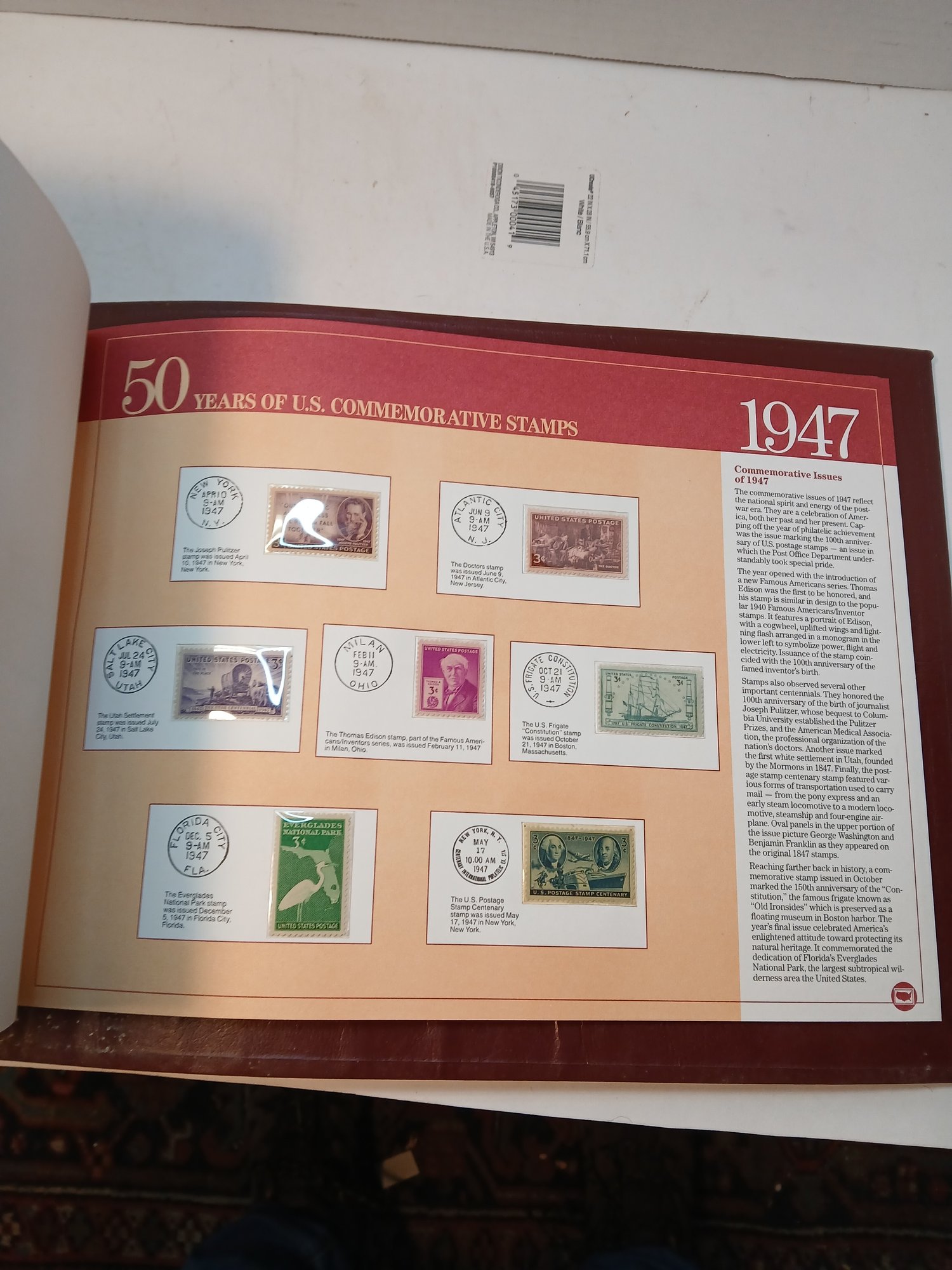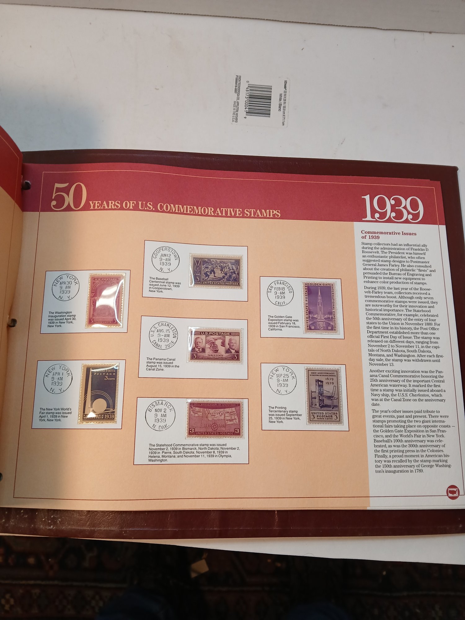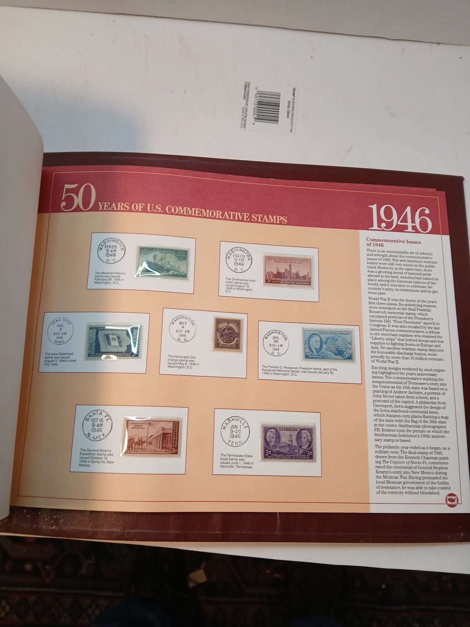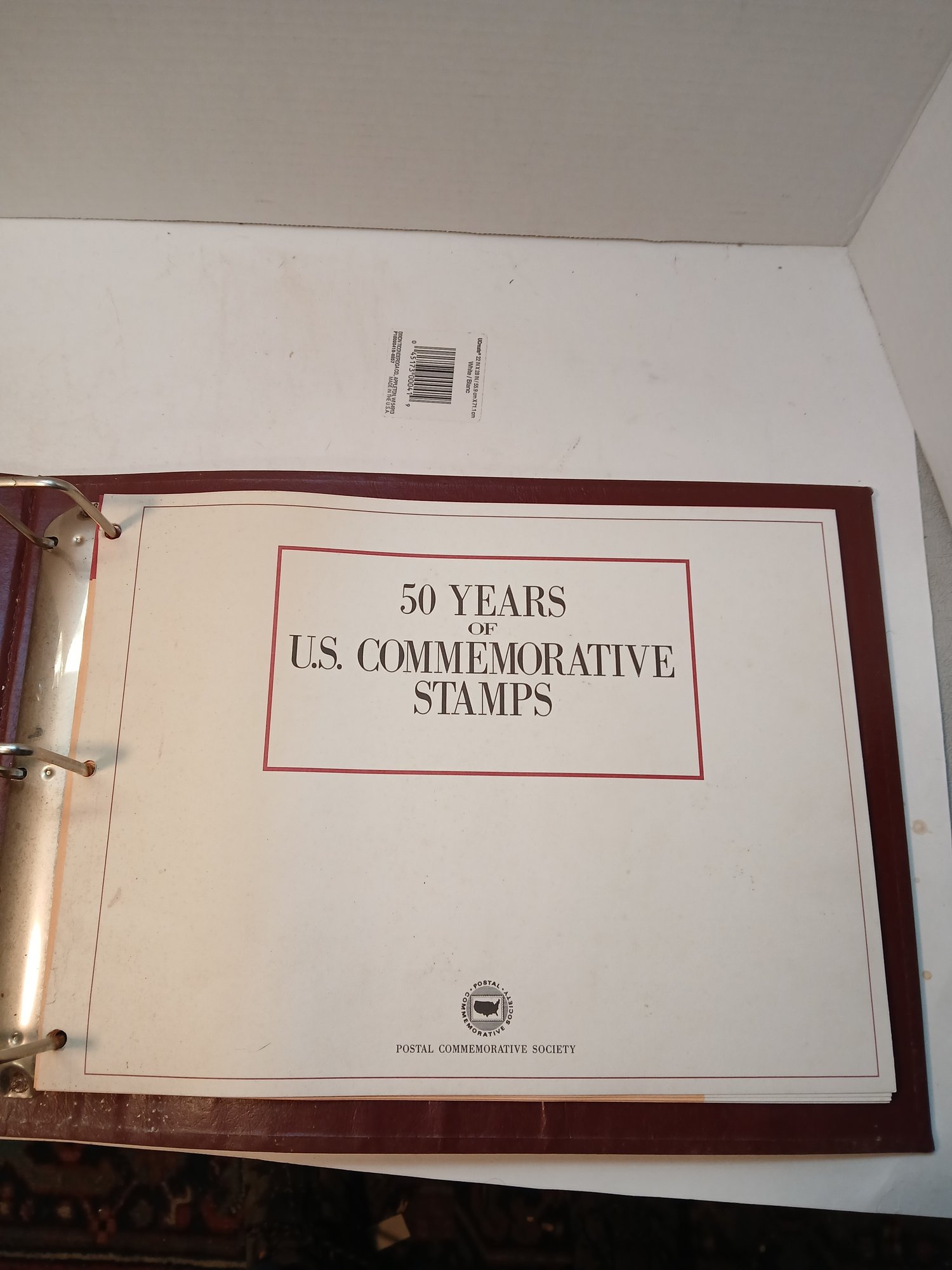 large binder with 50 years of commemorative uS stamps, binder is a bit bent