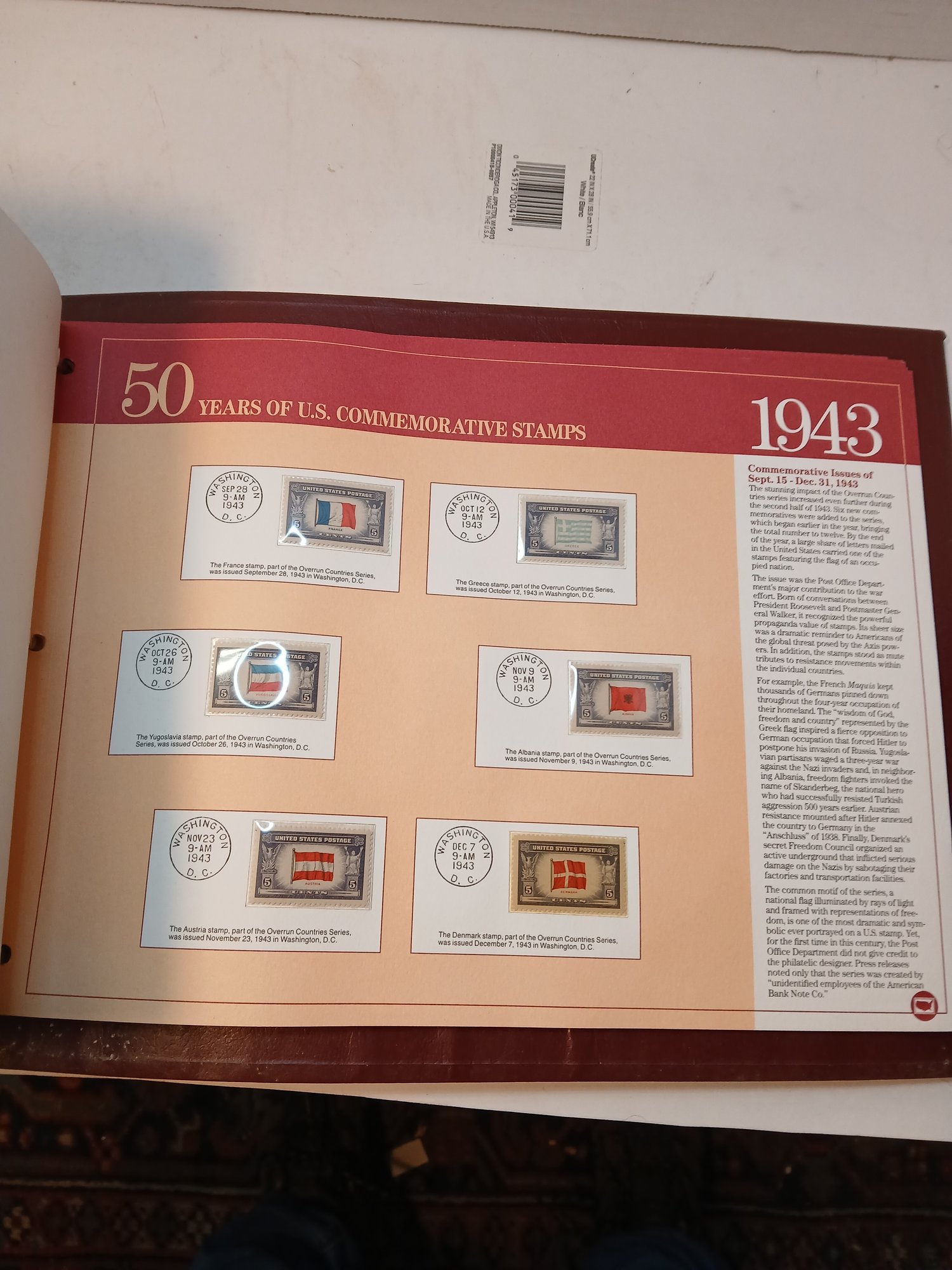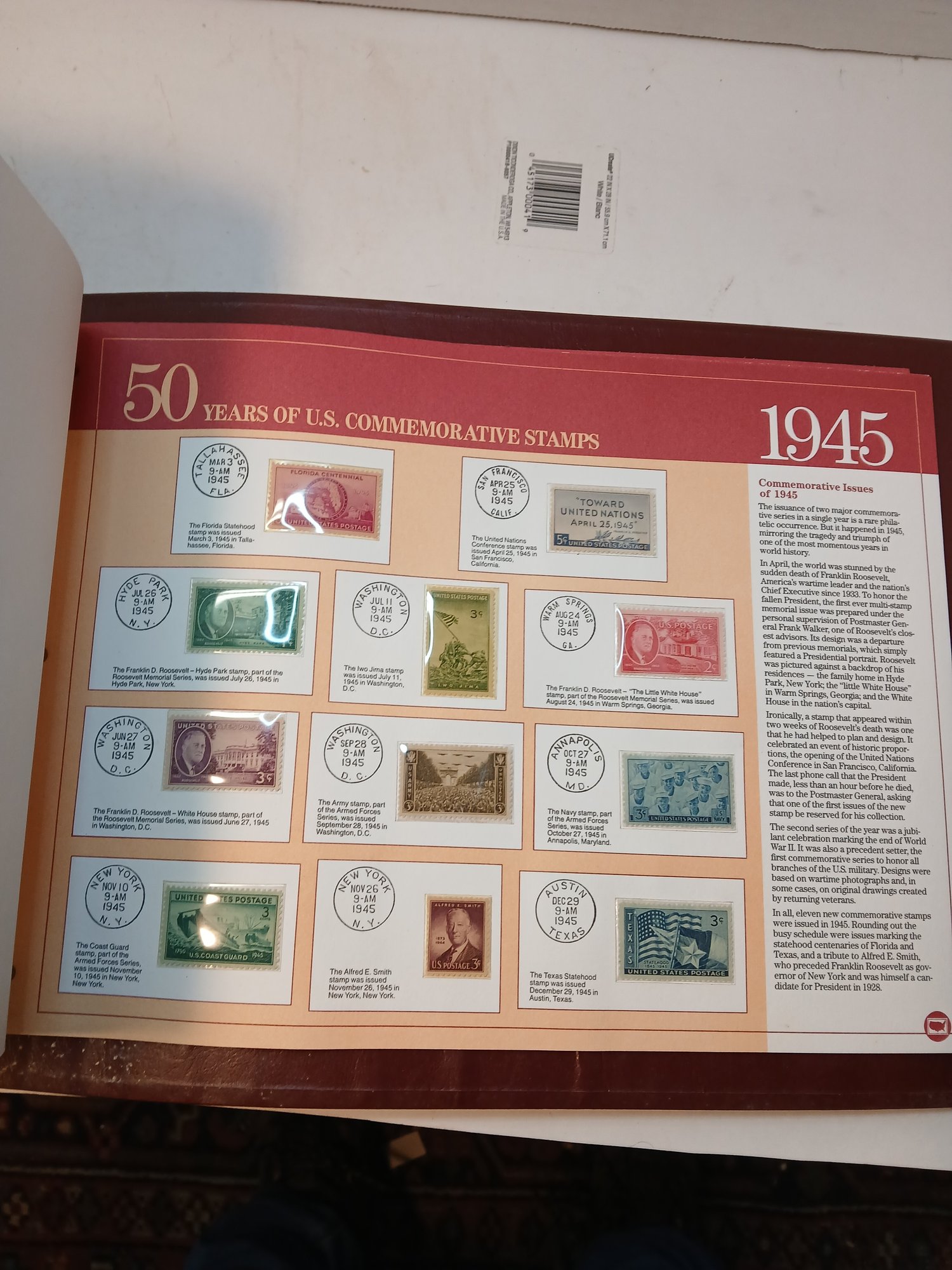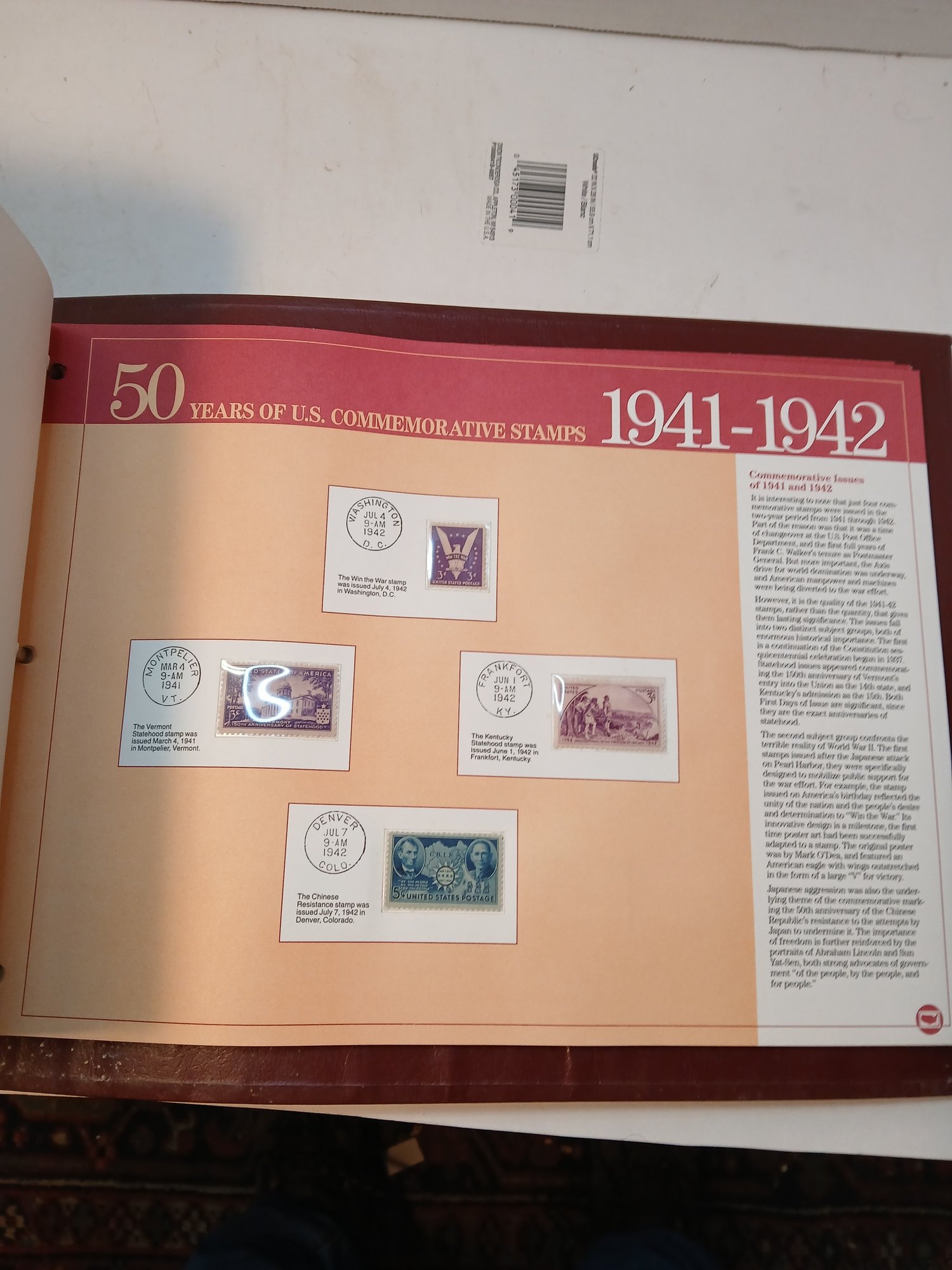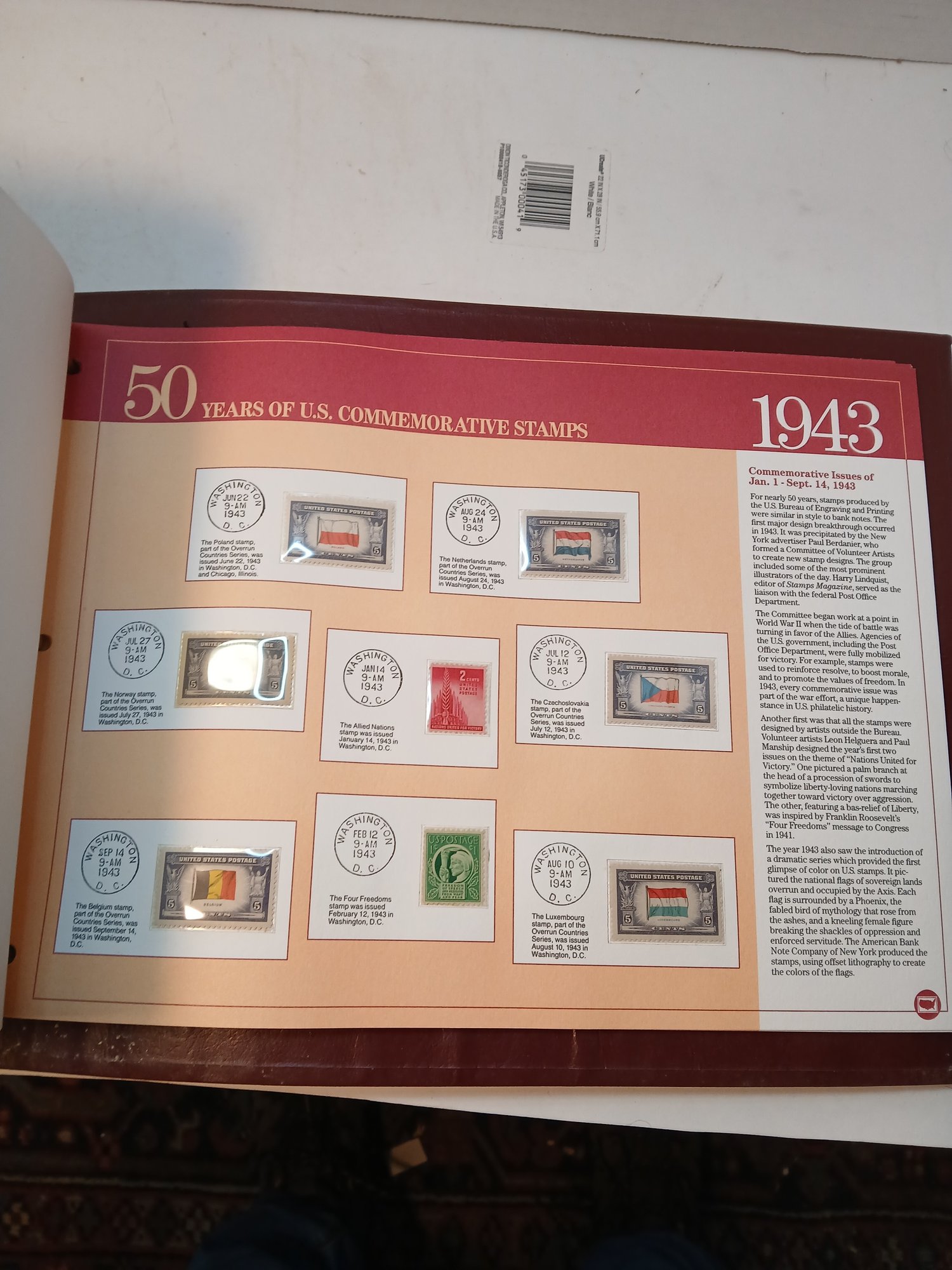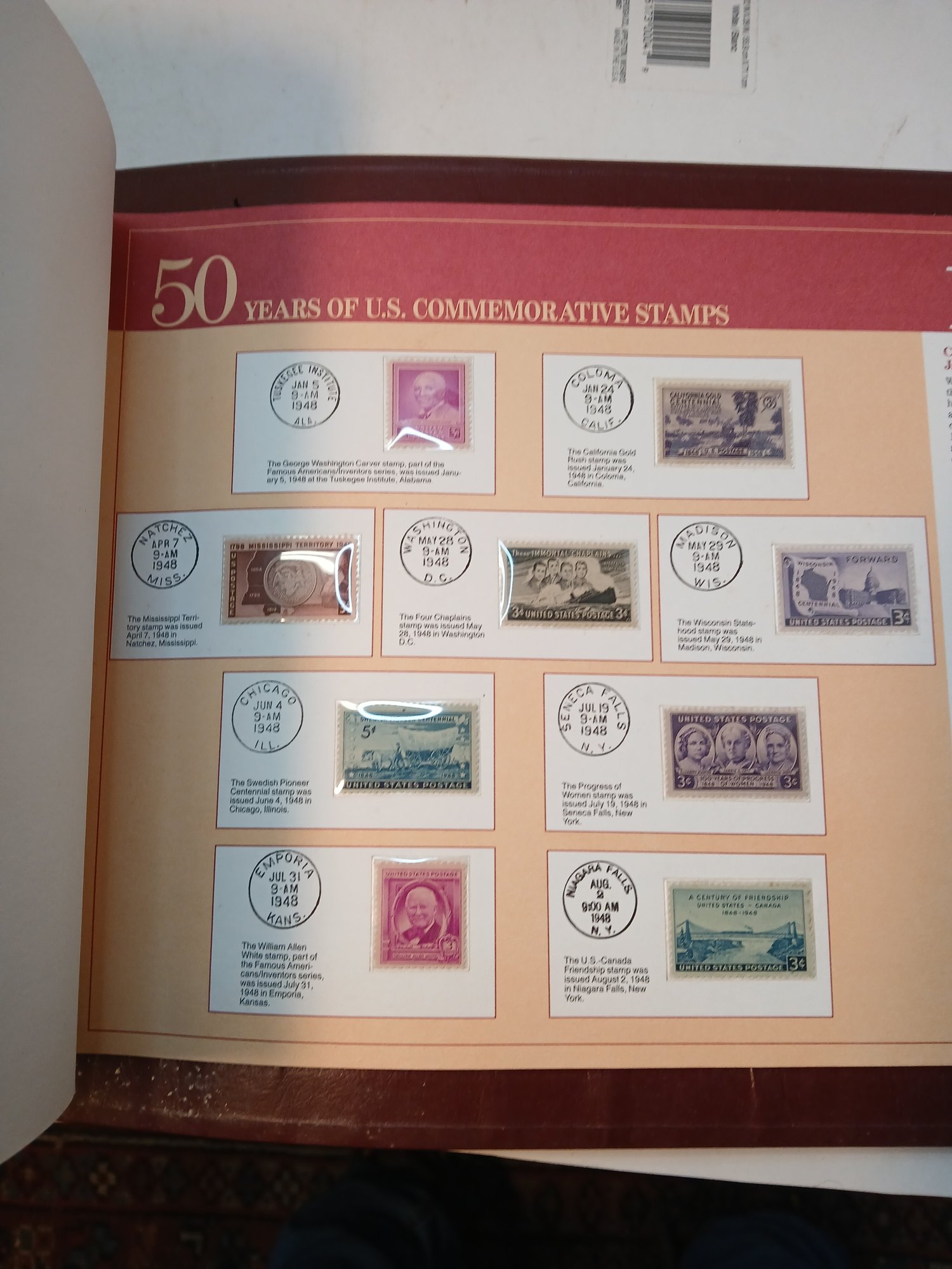 large binder with 50 years of commemorative uS stamps, binder is a bit bent