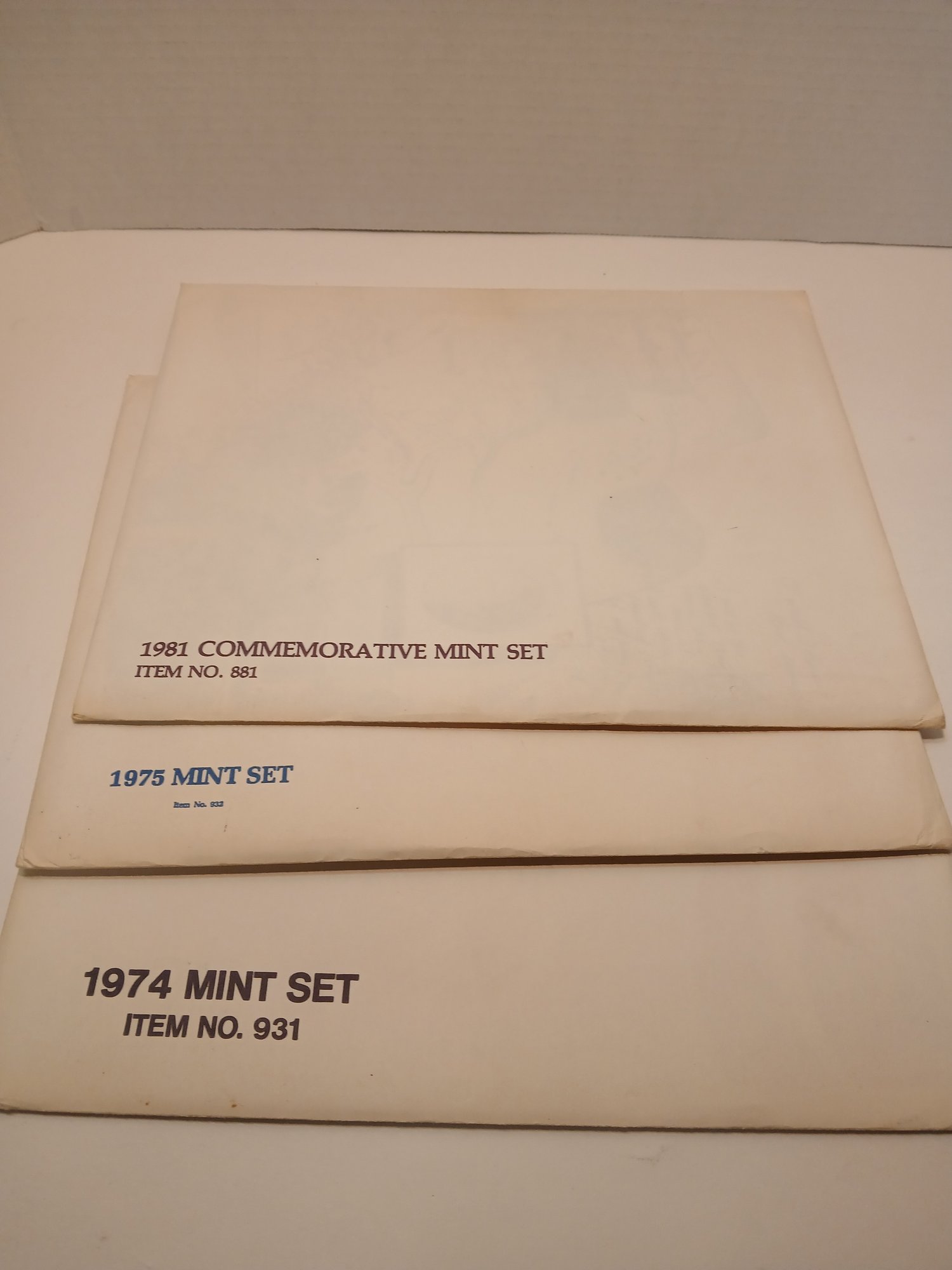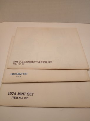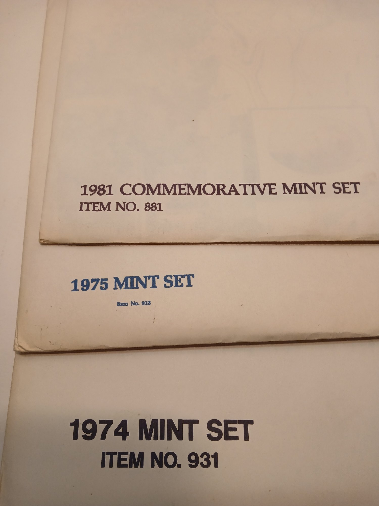 lot of 3 commemorative mint sets, 1974, 75 and 81
