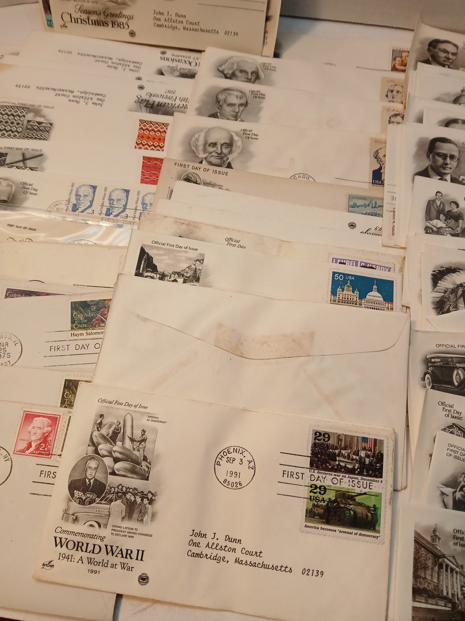 lot of first day issues, envelopes with canceled stamps, mid to late 20th century