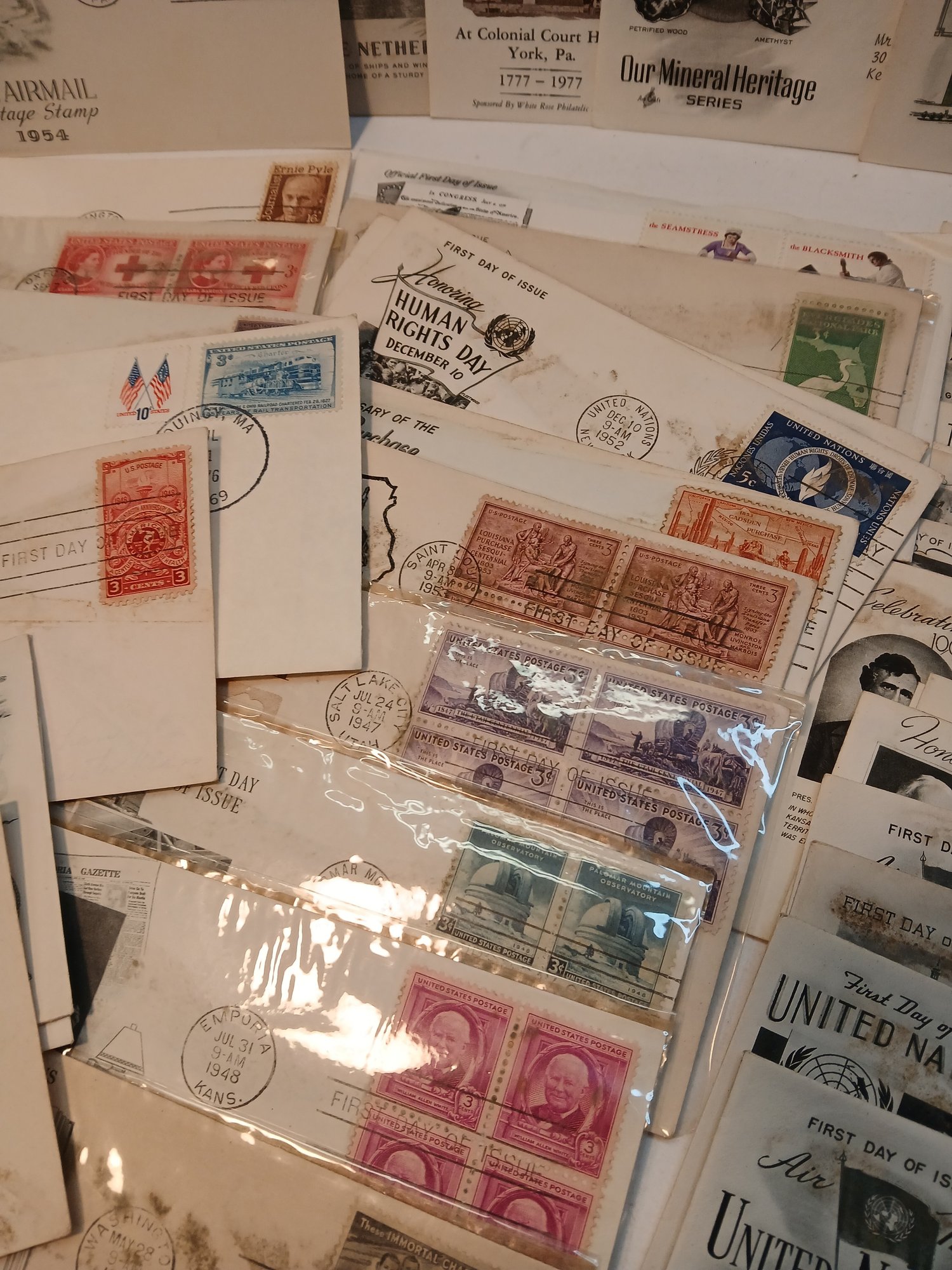 lot of first day issues, envelopes with canceled stamps, mostly 1950's
