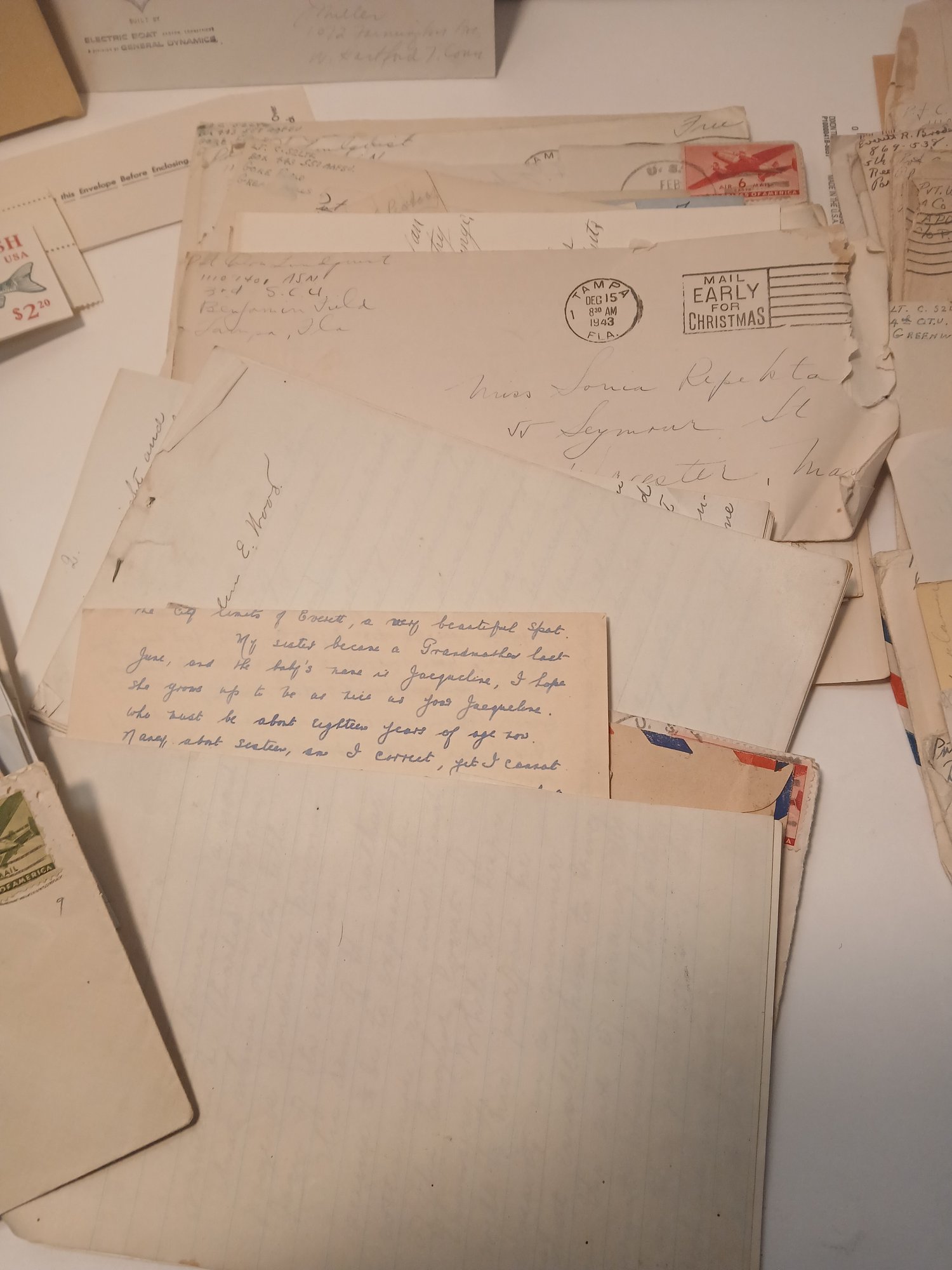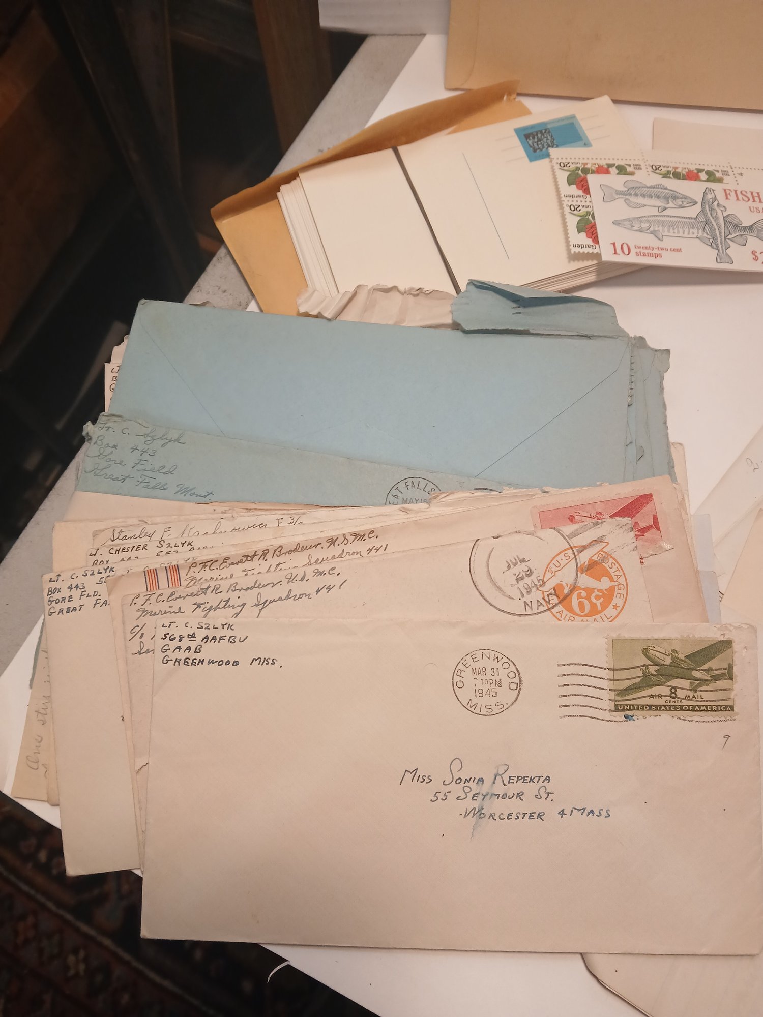 lot of first day issues, used and unused, post cards, block stamps, correspondence, mostly military