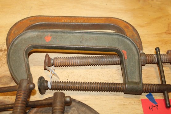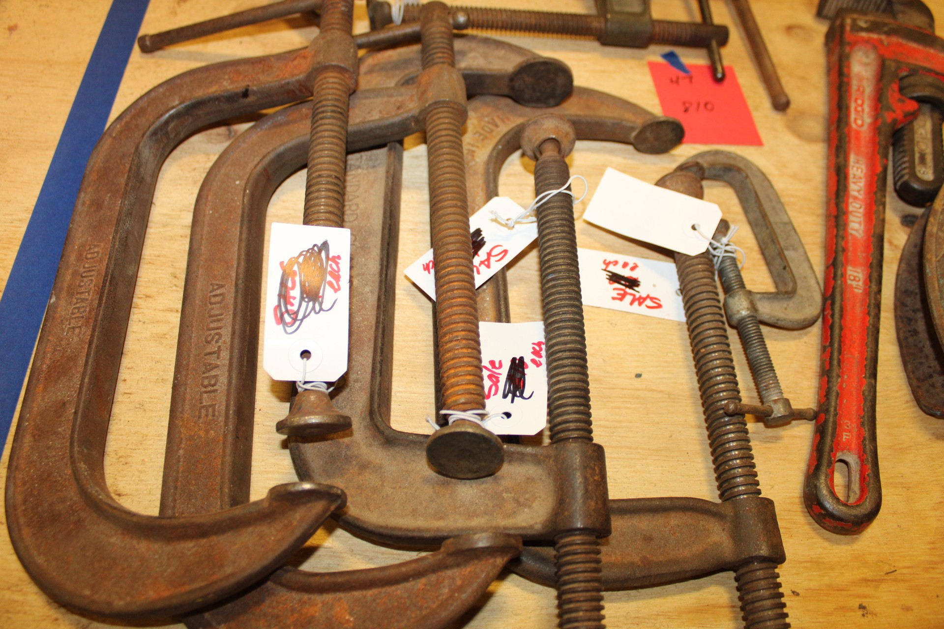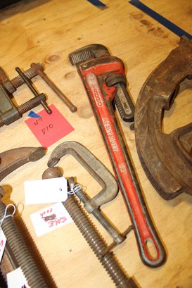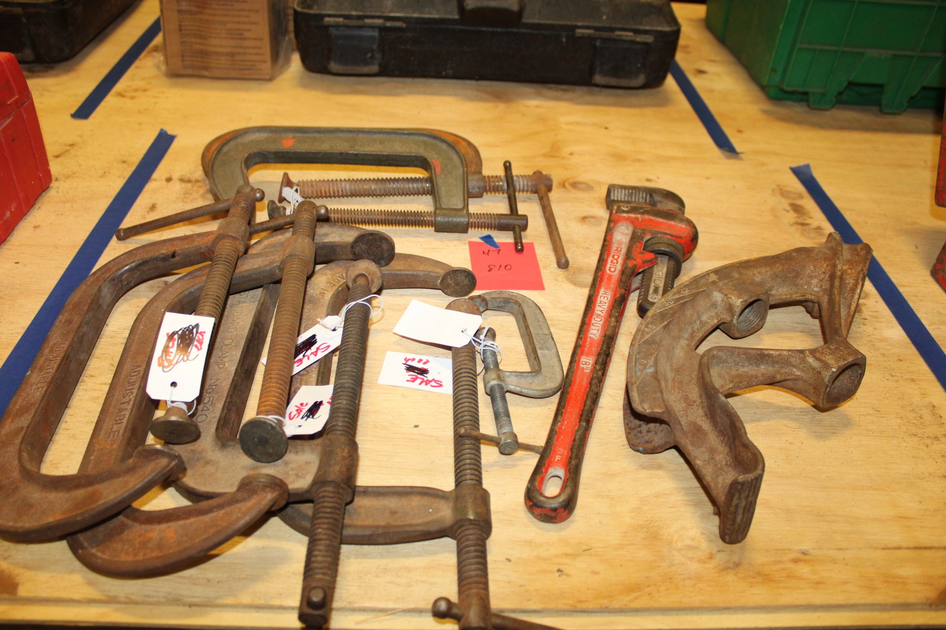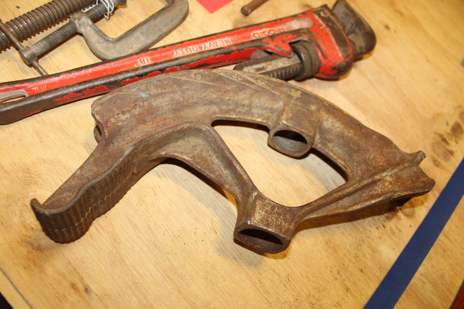 lot of large vices pipe wrench and pipe bender
