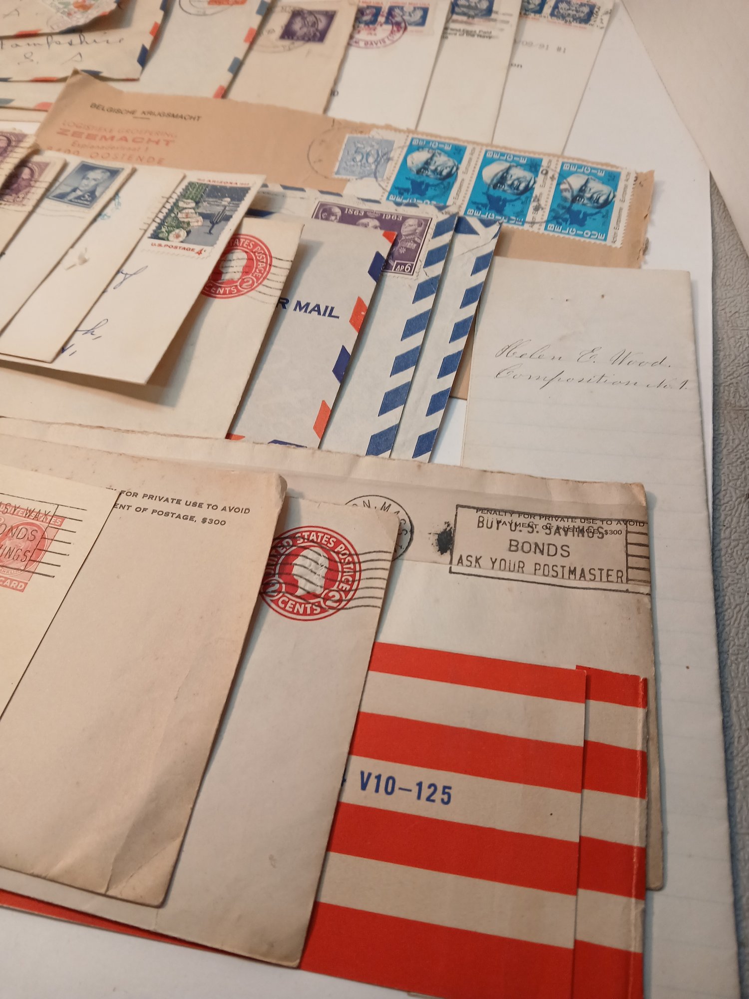 lot of used stamps, cards, airmail envelopes, various dates, etc....