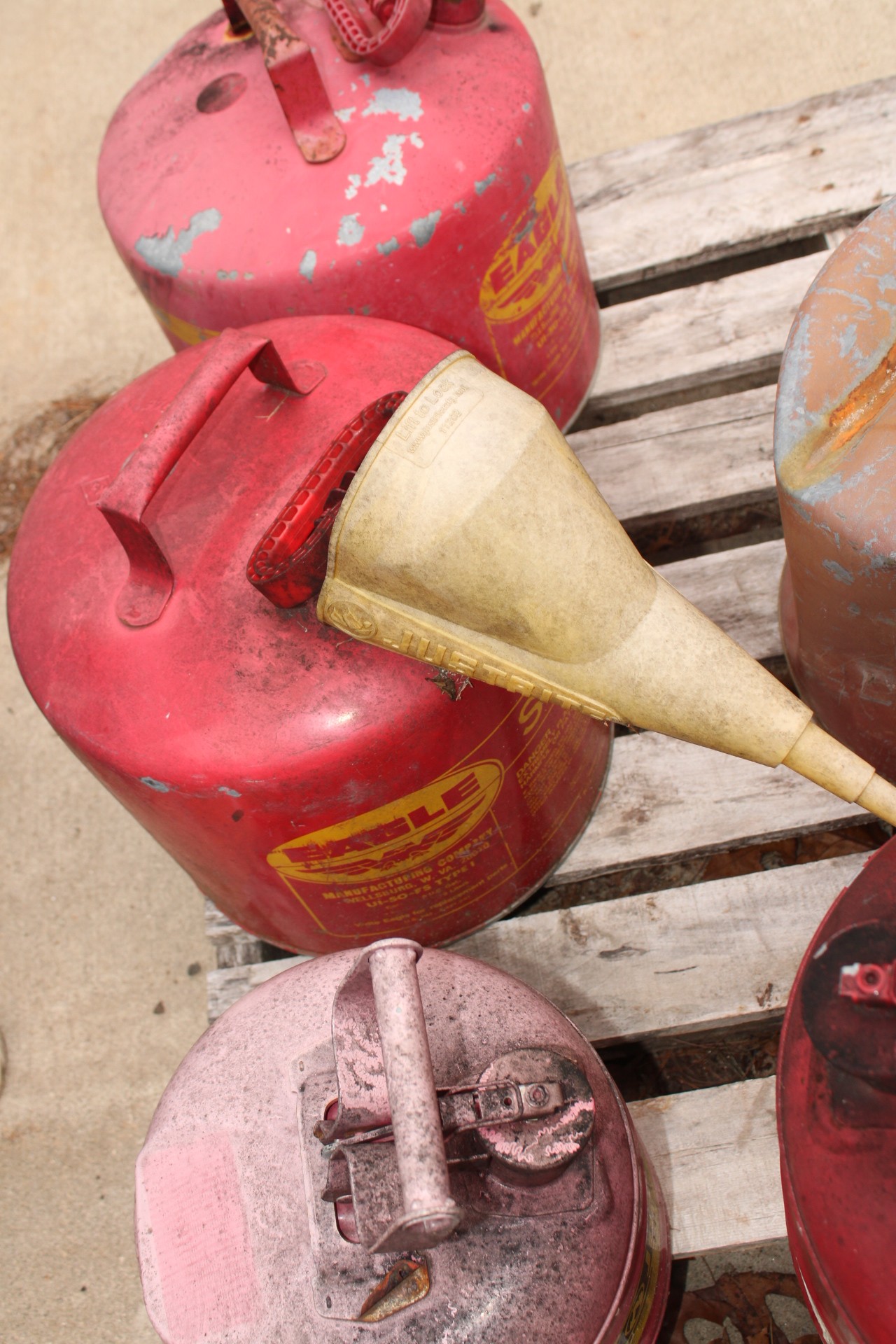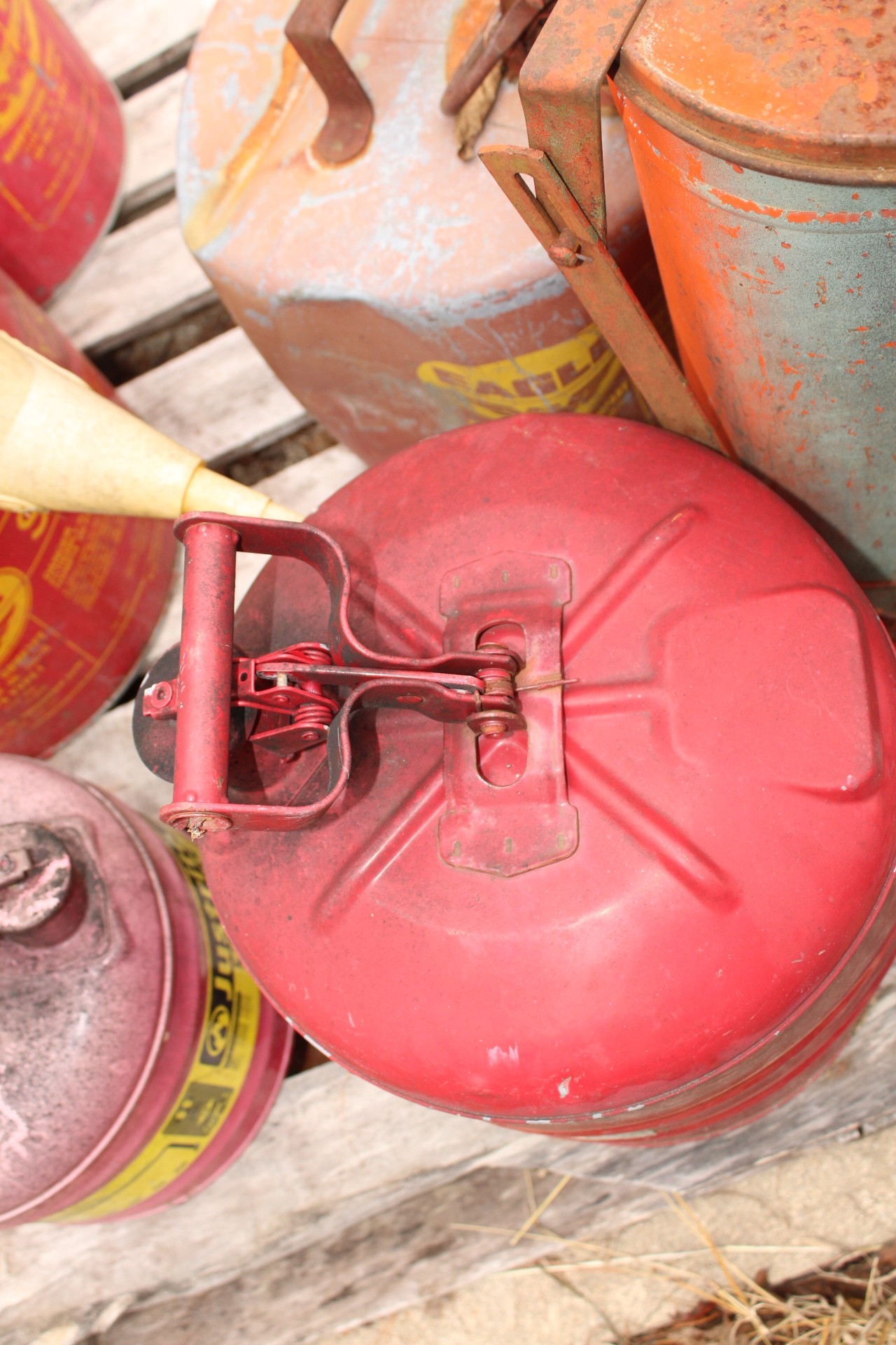 metal gas cans and rag burner