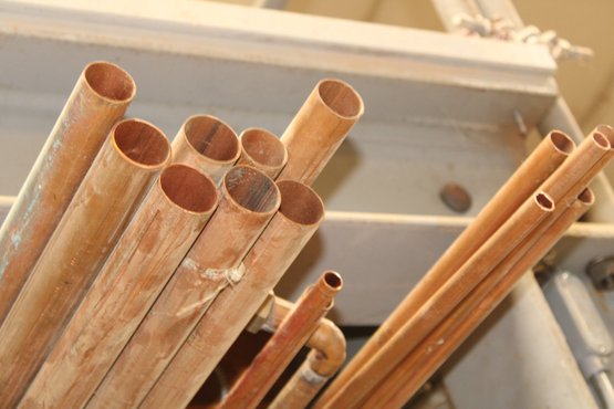 misc copper pipes, 2", 1.5", 1", .5" some 20 ft length, some less