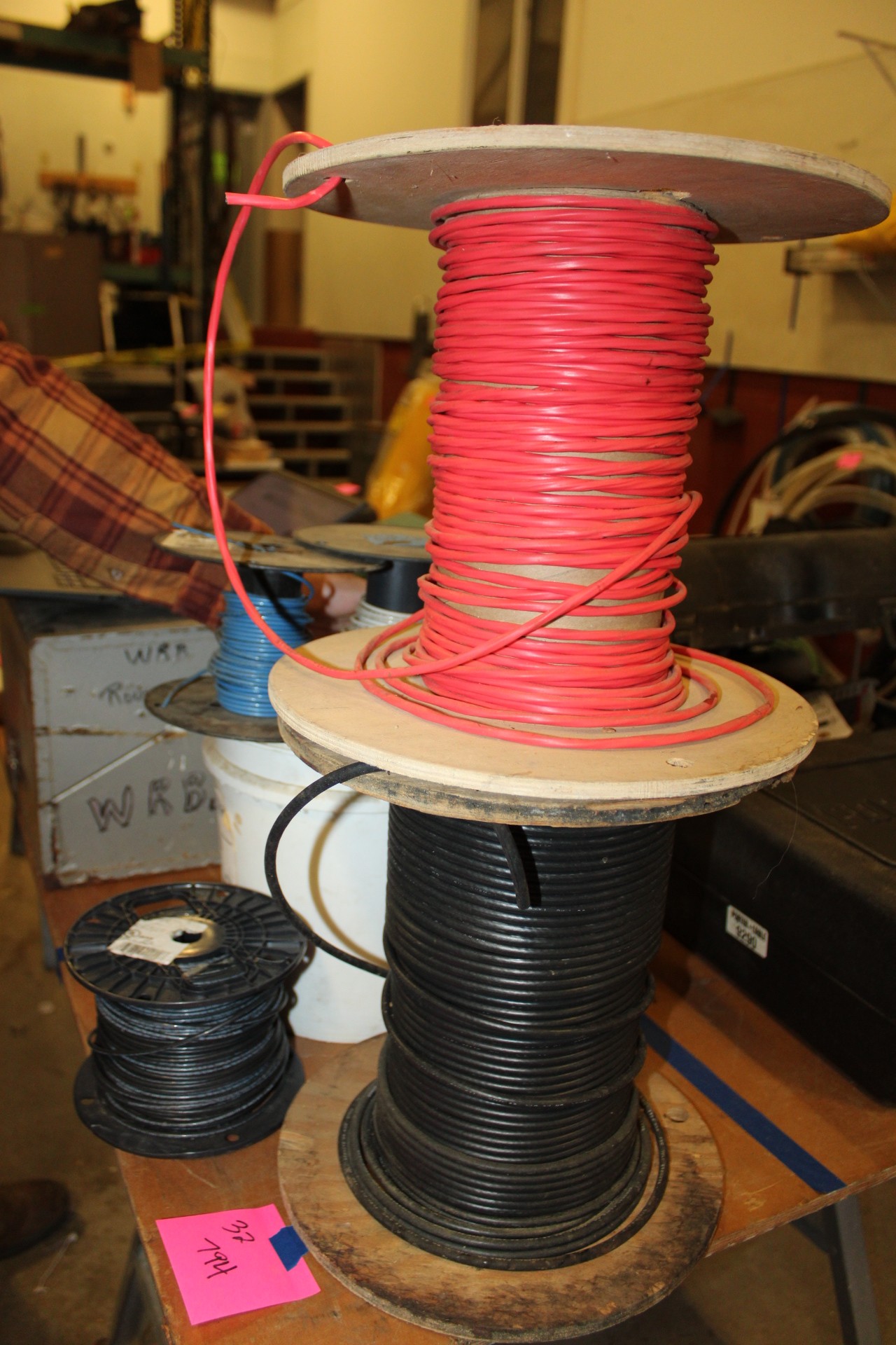 misc lot of spooled wire 16, 12 awg 4 color telephone wire