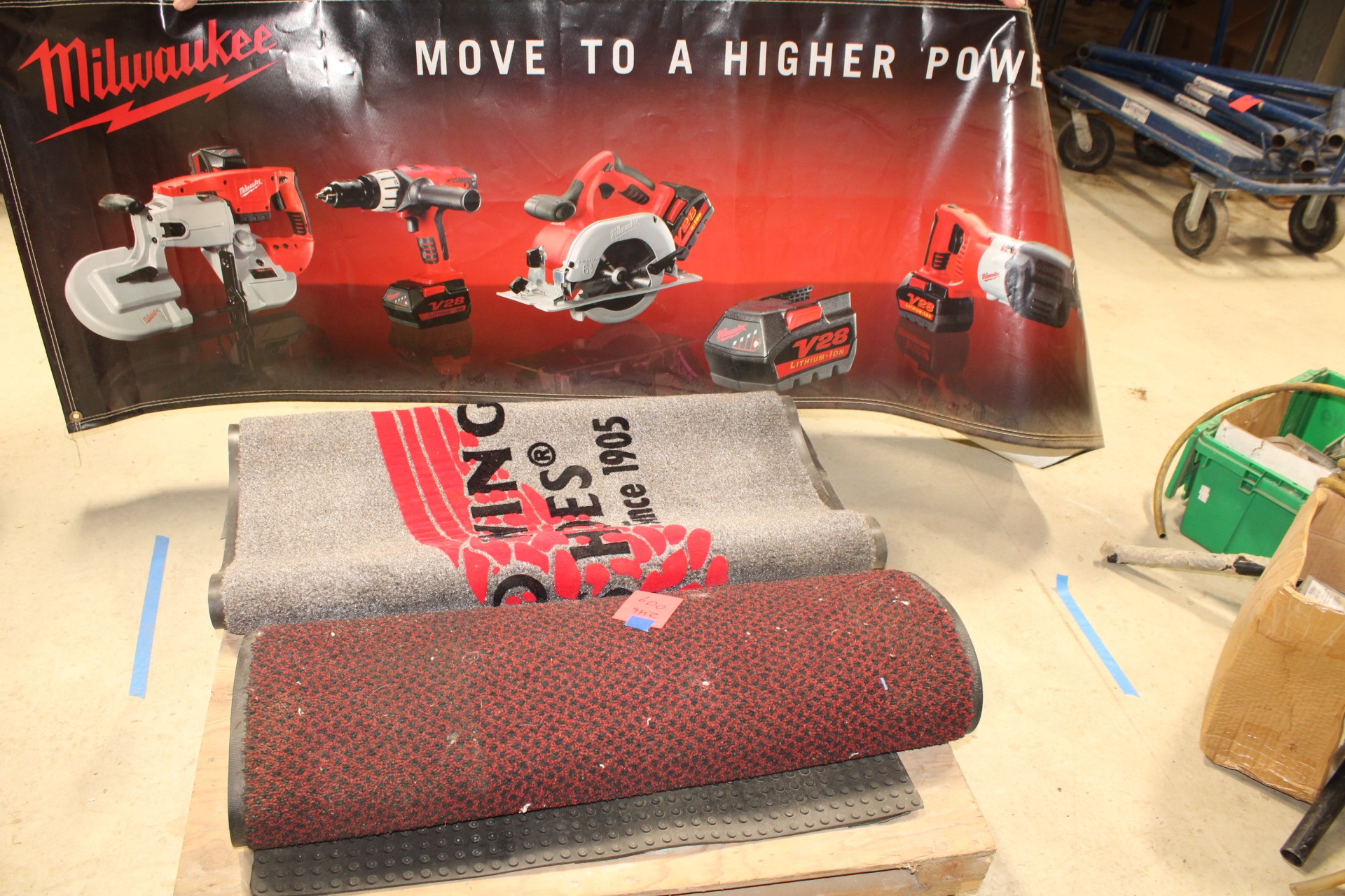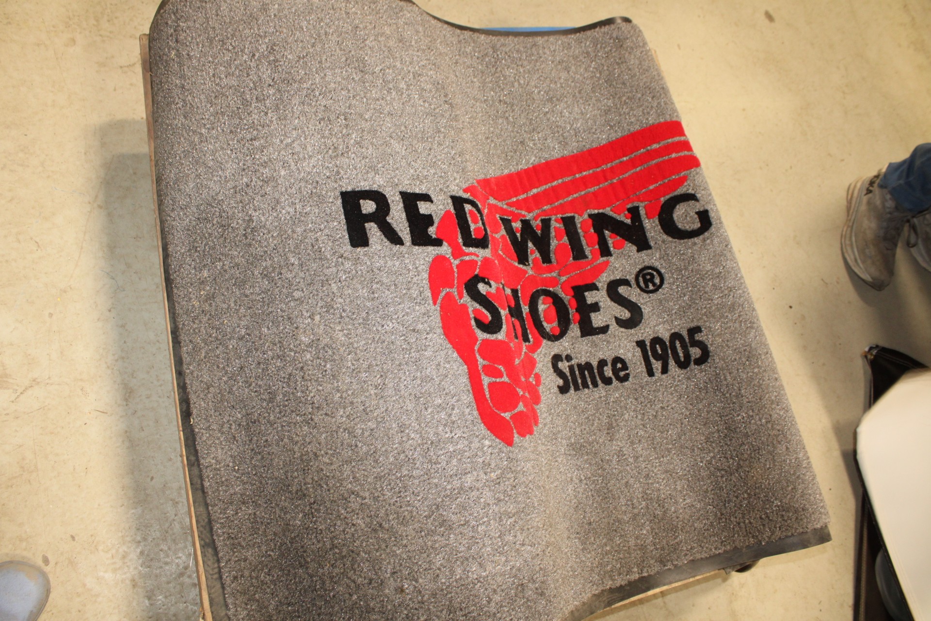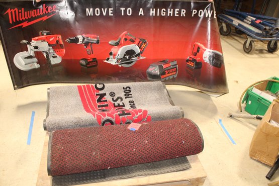 misc rugs and advertizing. red wing shoes rug, milwawkee poster
