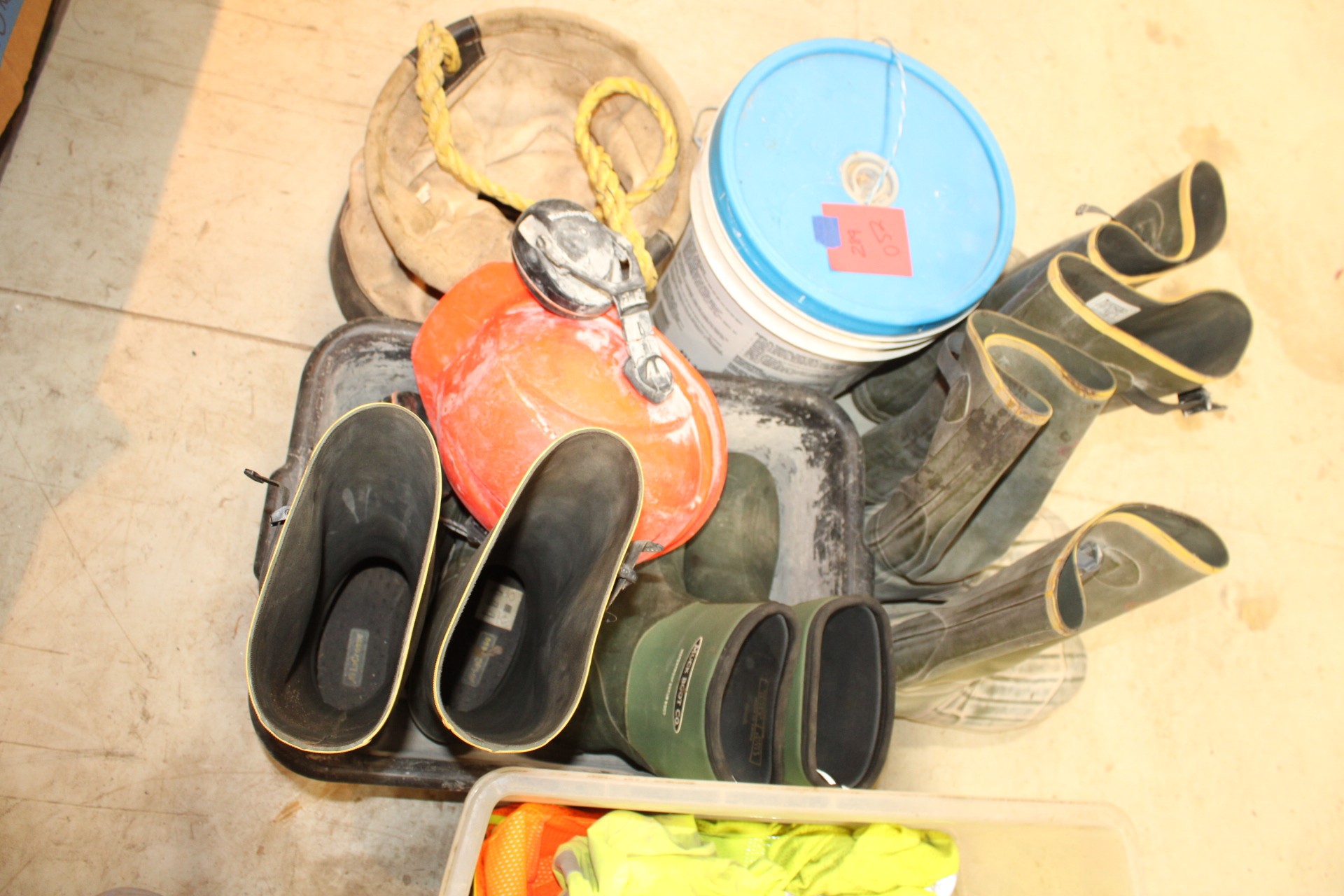 misc safety equip. muck boots size 12, 10, helmets rain gear sorrell