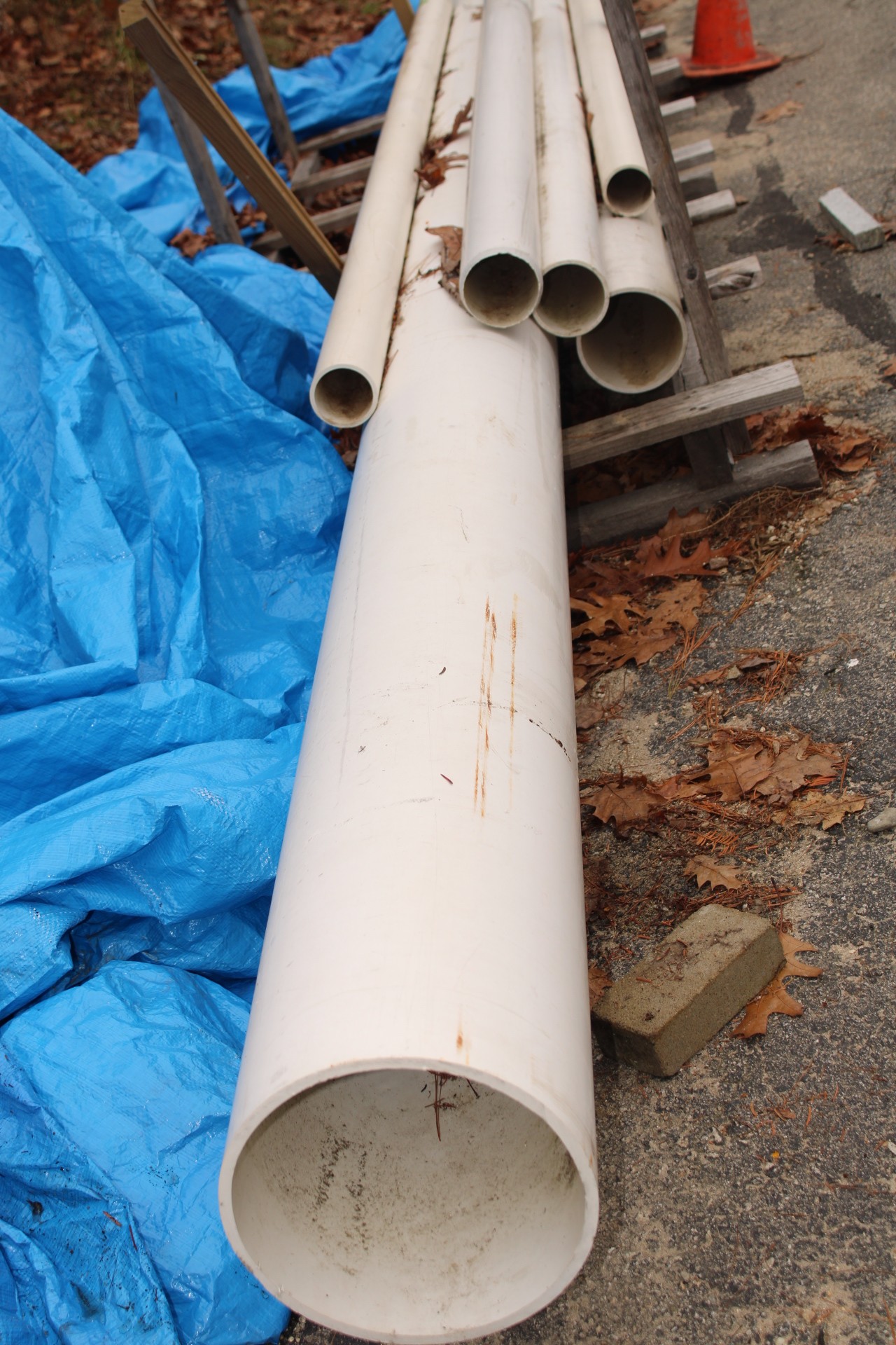 multiple size PVC pipes 3.5", 4" 6.5 dia - 8ft 20ft lengths big one 11"x20'