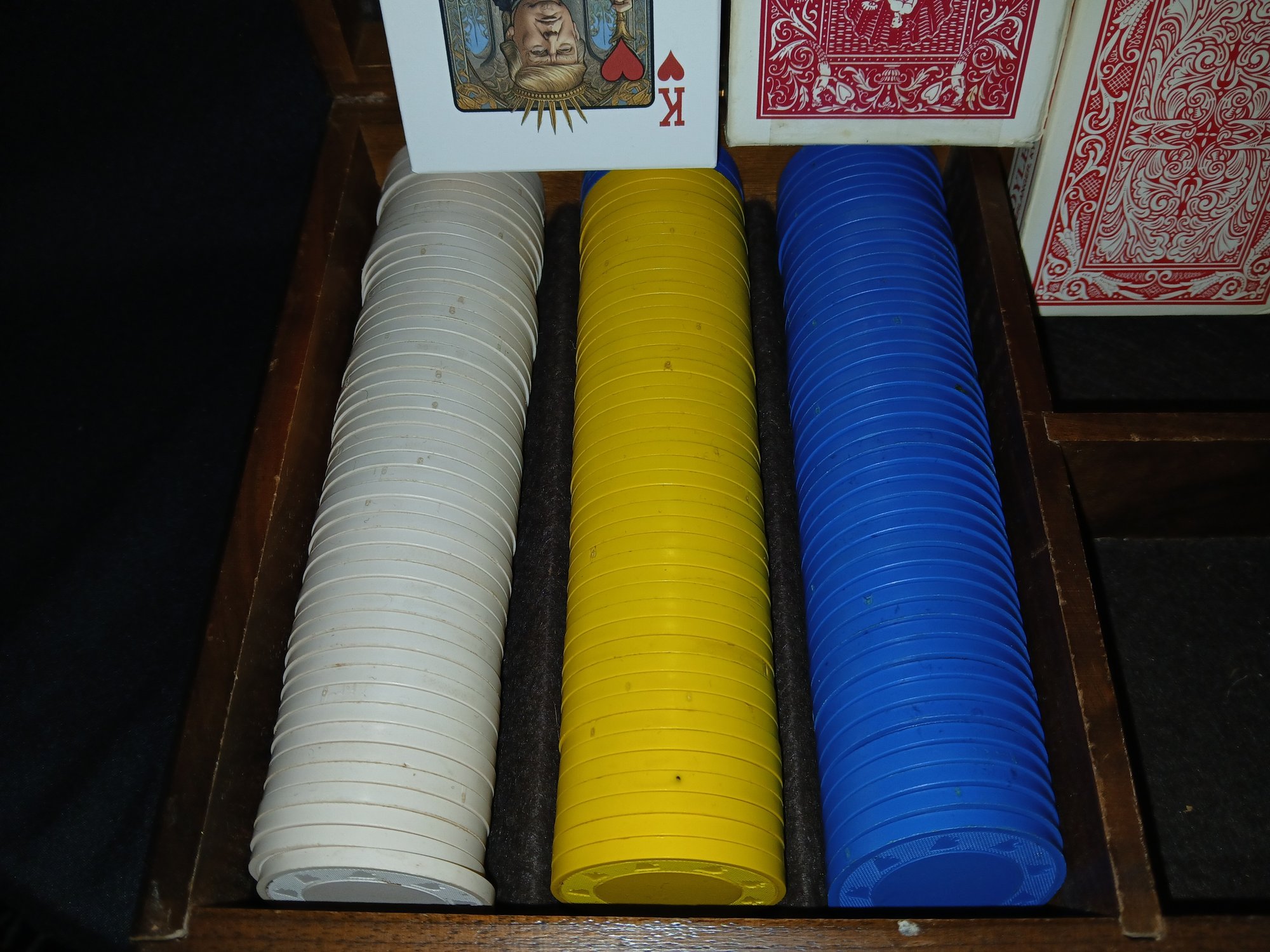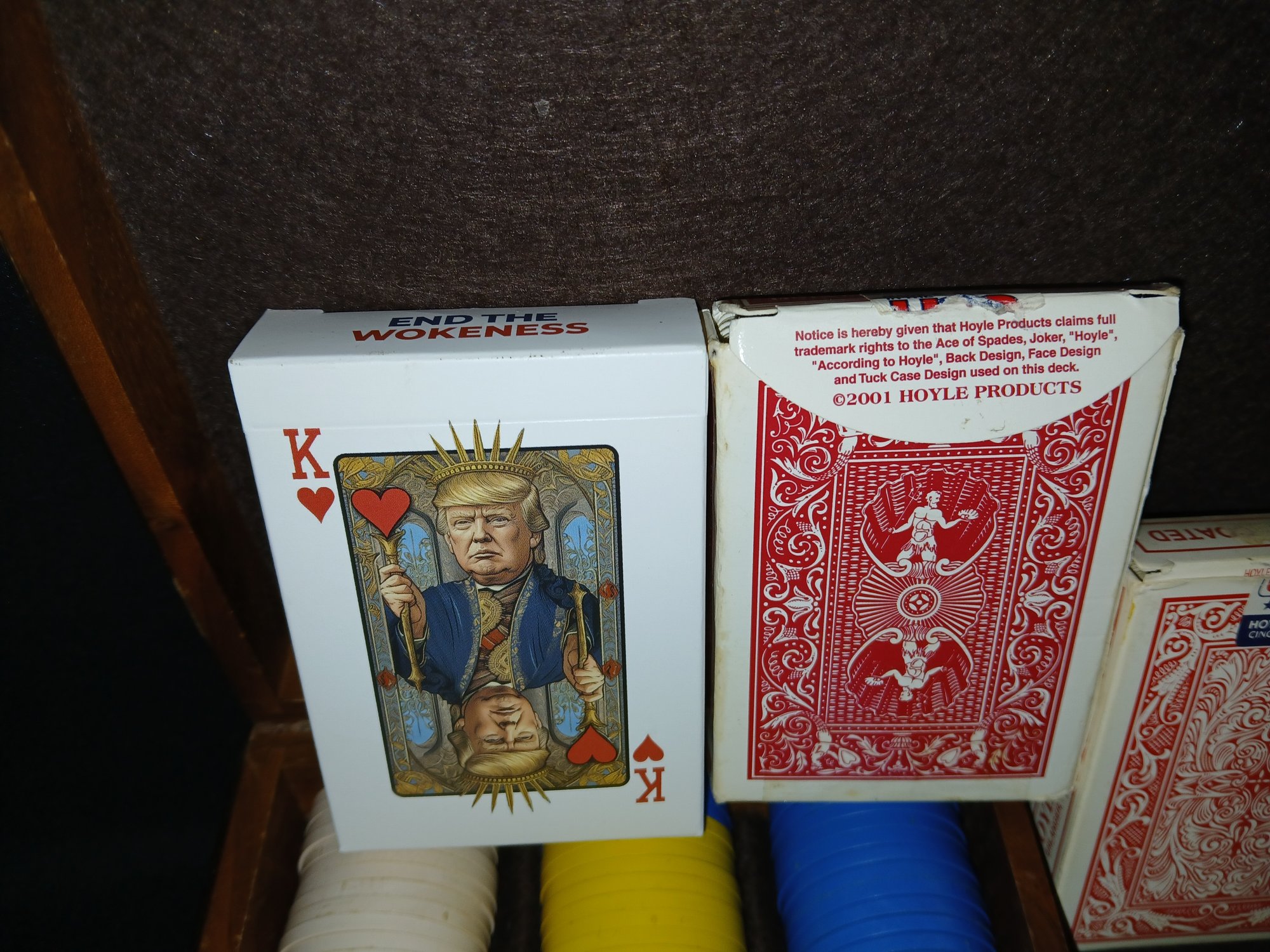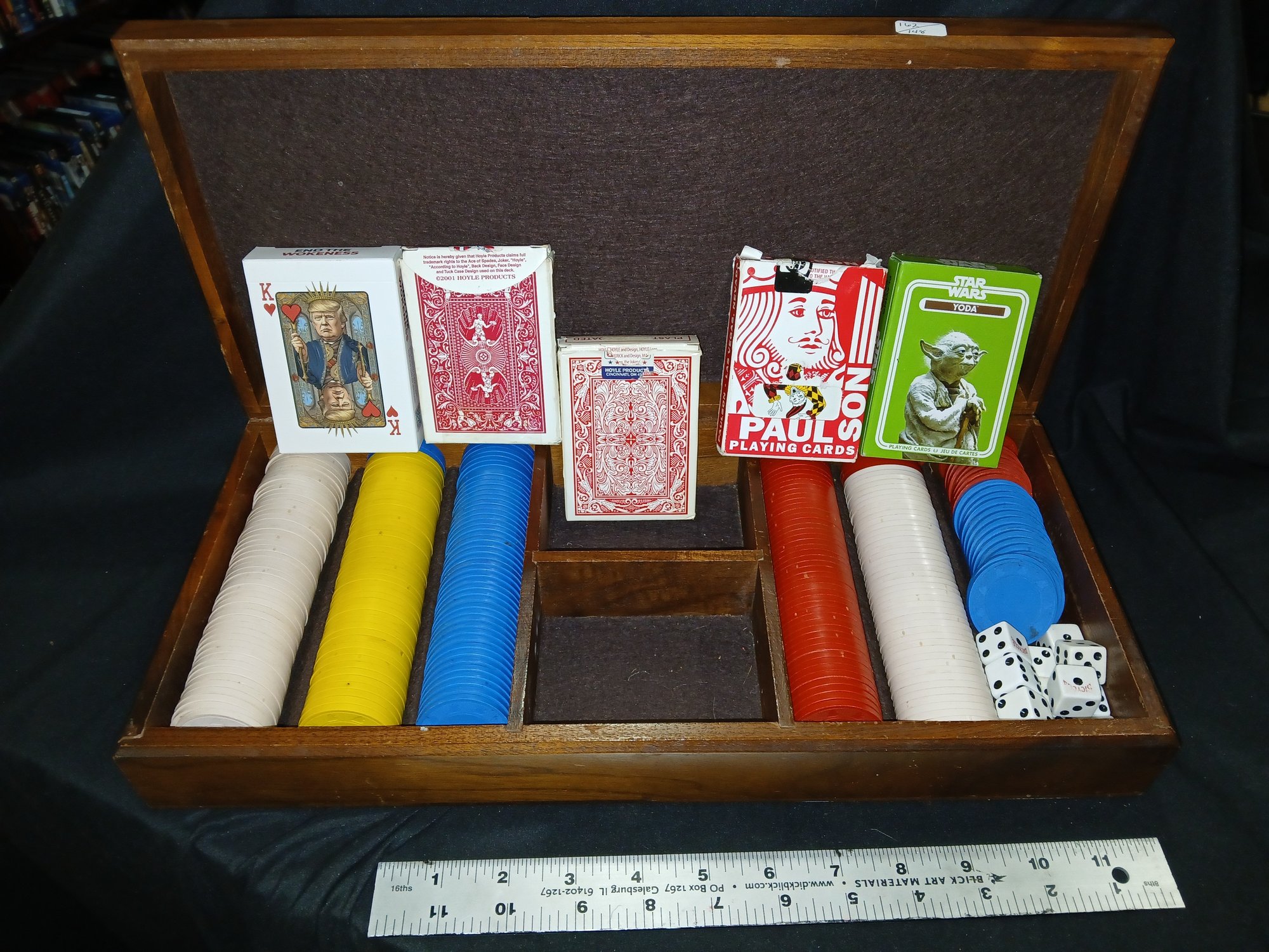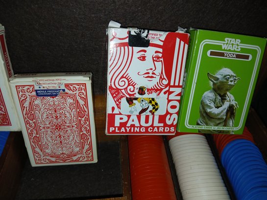 Poker ready Case ! Trump Deck Cards, Star Wars Deck, Chips & Dice set in lovely wooden case
