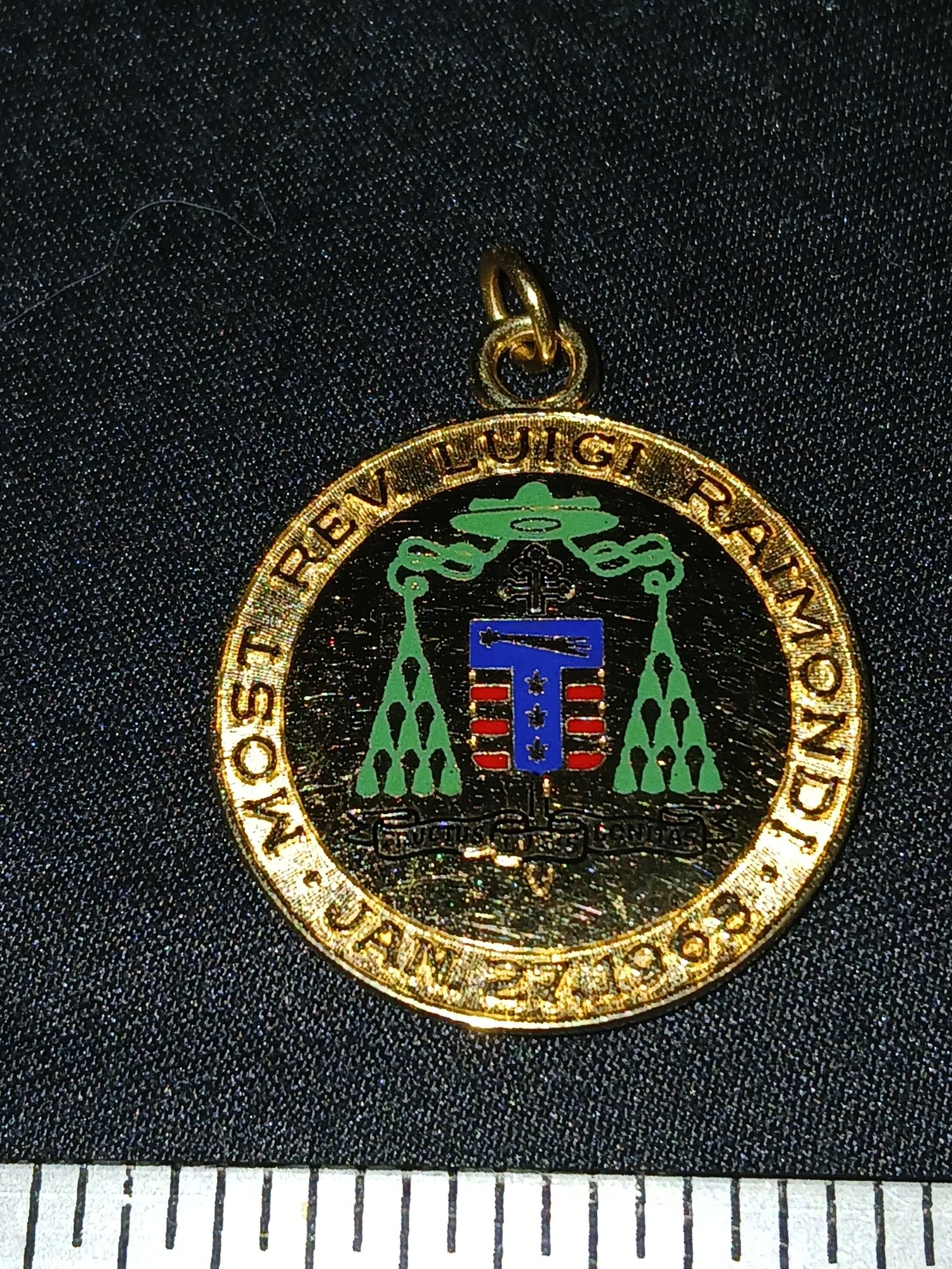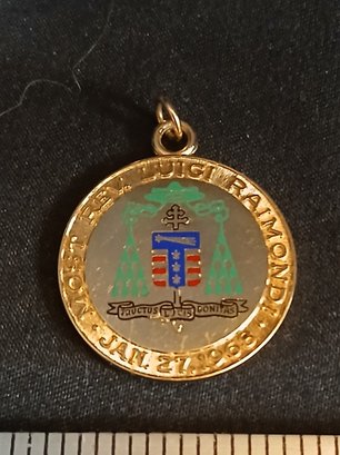 Gold: 18K Pendant - " Rev. Luigi Raimondi 01/27/1968 " 10g , 0.32 Ozt, 6.4 DWT a