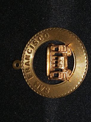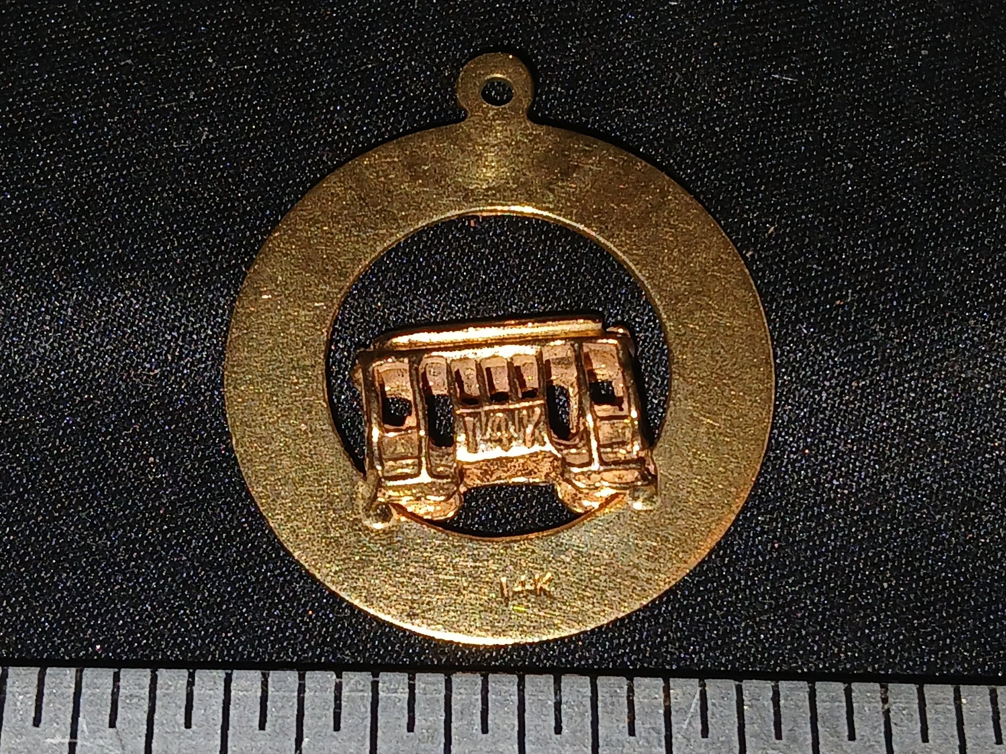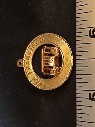 Gold: Marked 14K - Circle Pendant of Trolly car- San Francisco - 4.0g, 0.13ozt, 2.6DWT