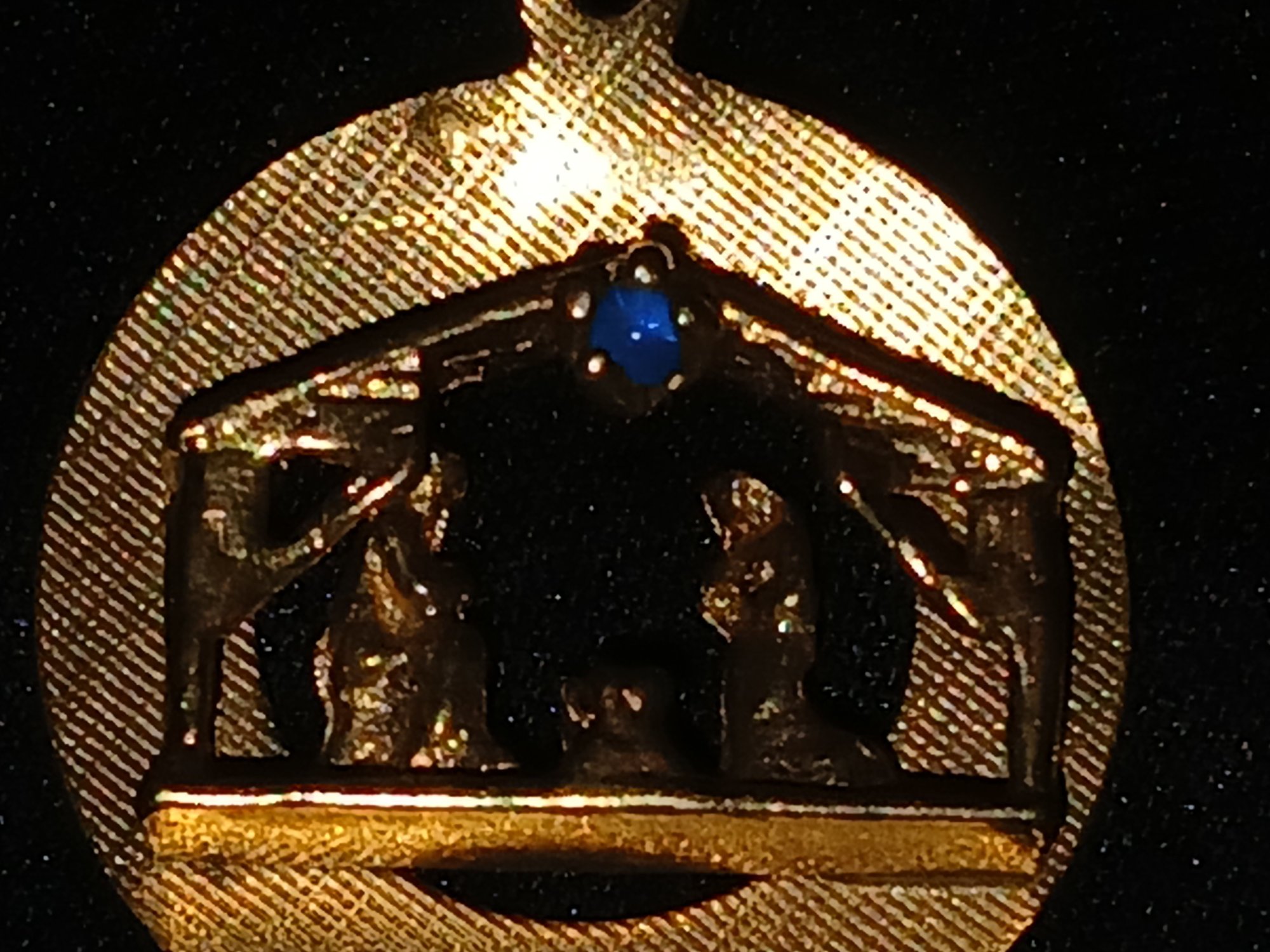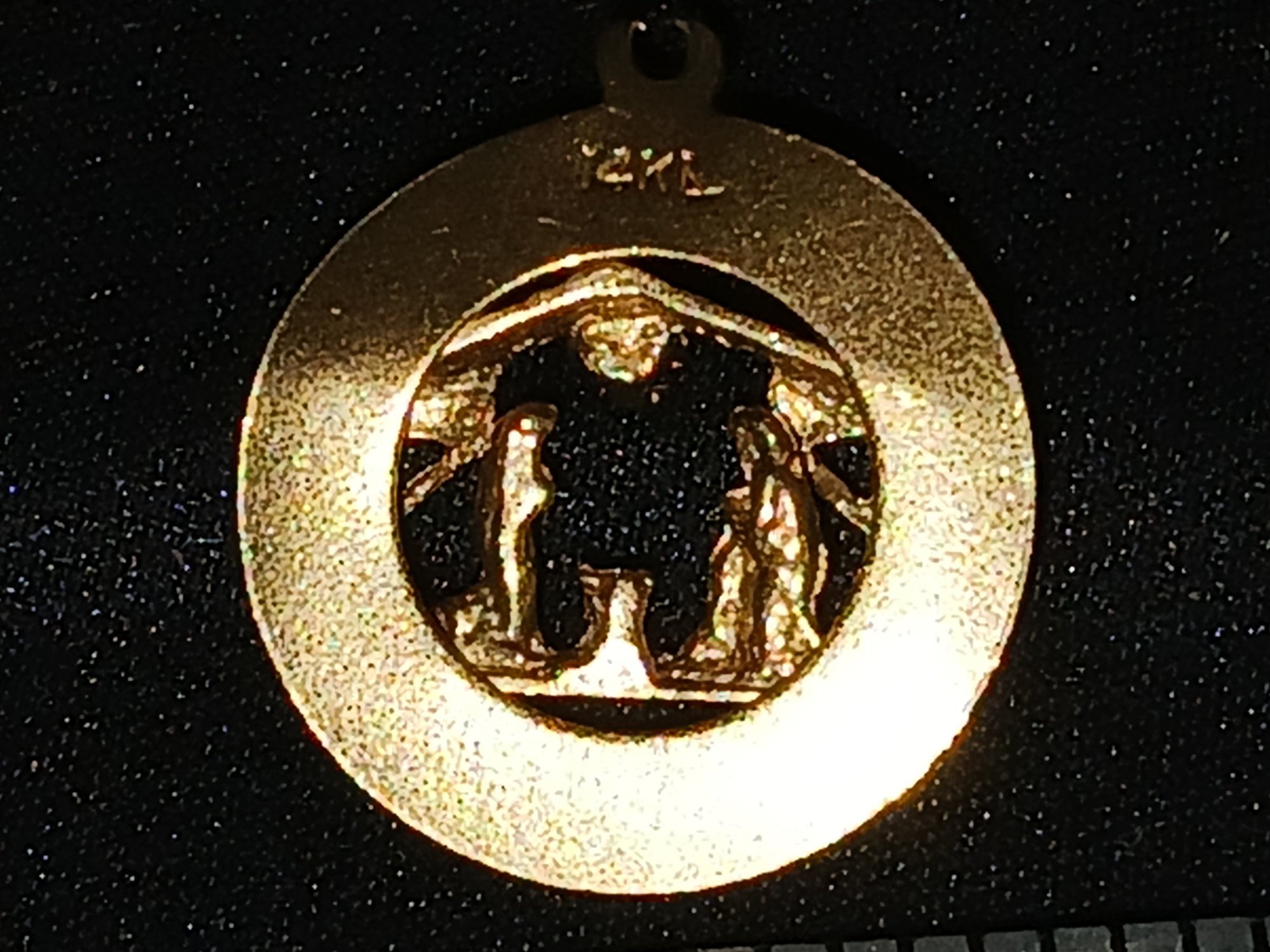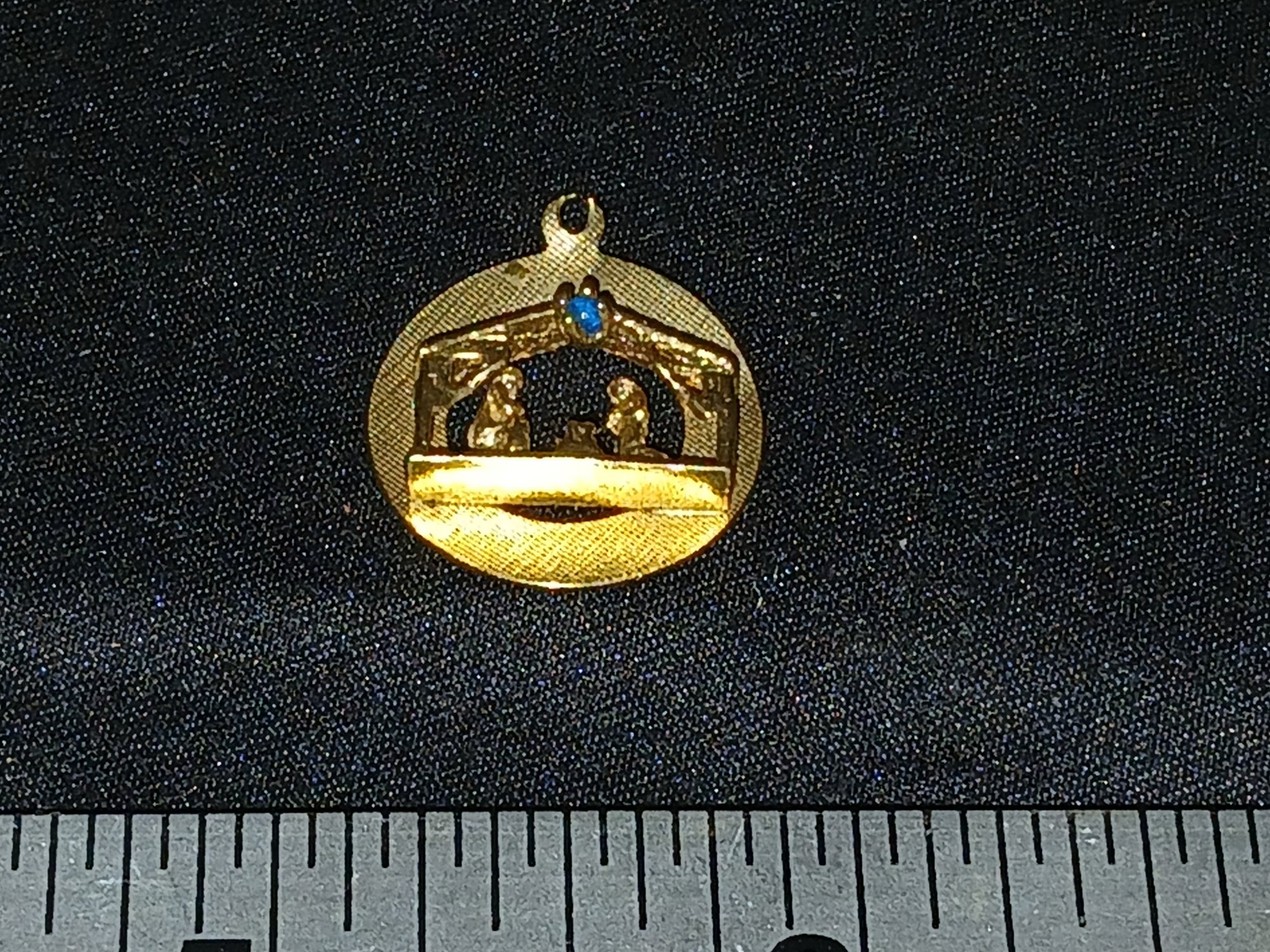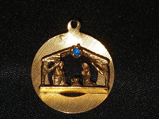 Gold: Marked 14k, circular pendant depicting Nativity Scene, Micro-Gem, - 2.4g, 0.08ozt, 1.6DWT
