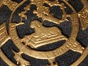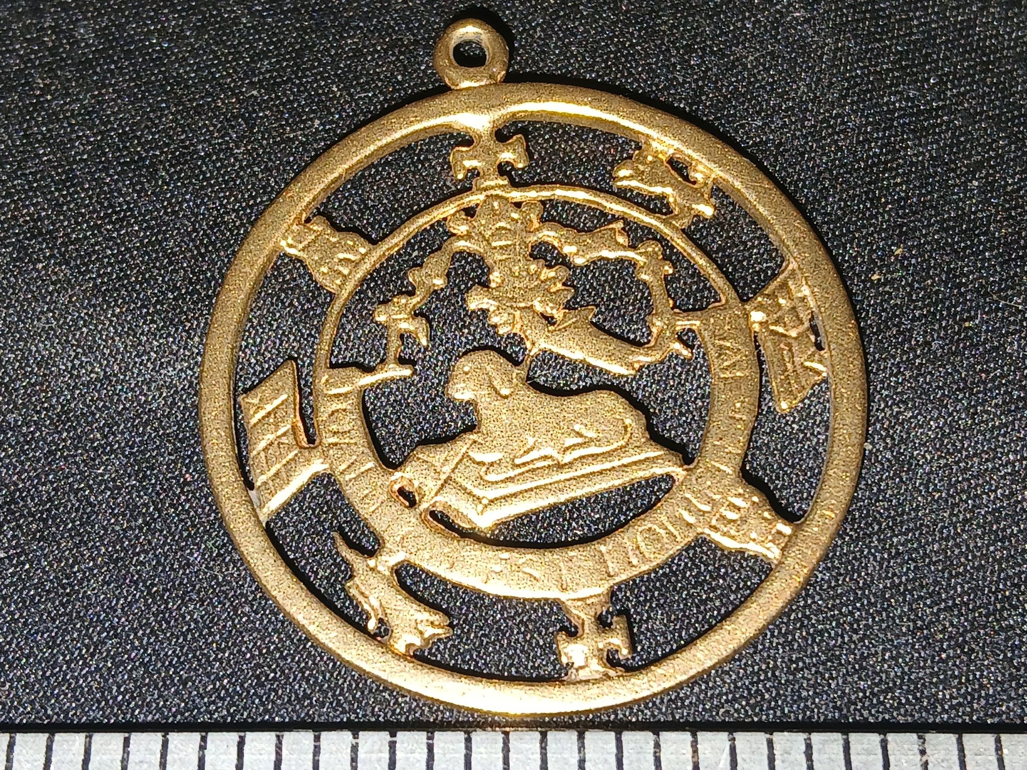 Gold: marked 14K - Religious Pendant - has a lamb- Can't Make out rest - 5.2g, 0.165ozt, 3.3DWT