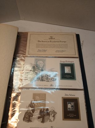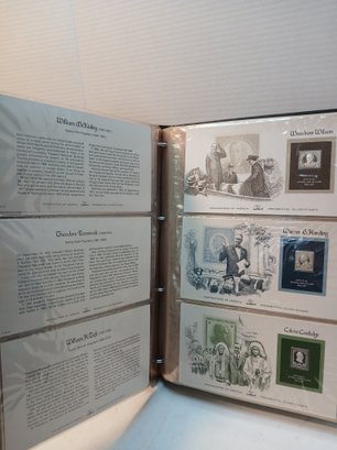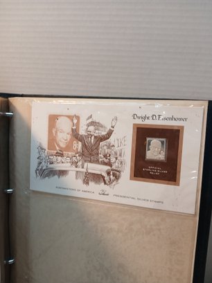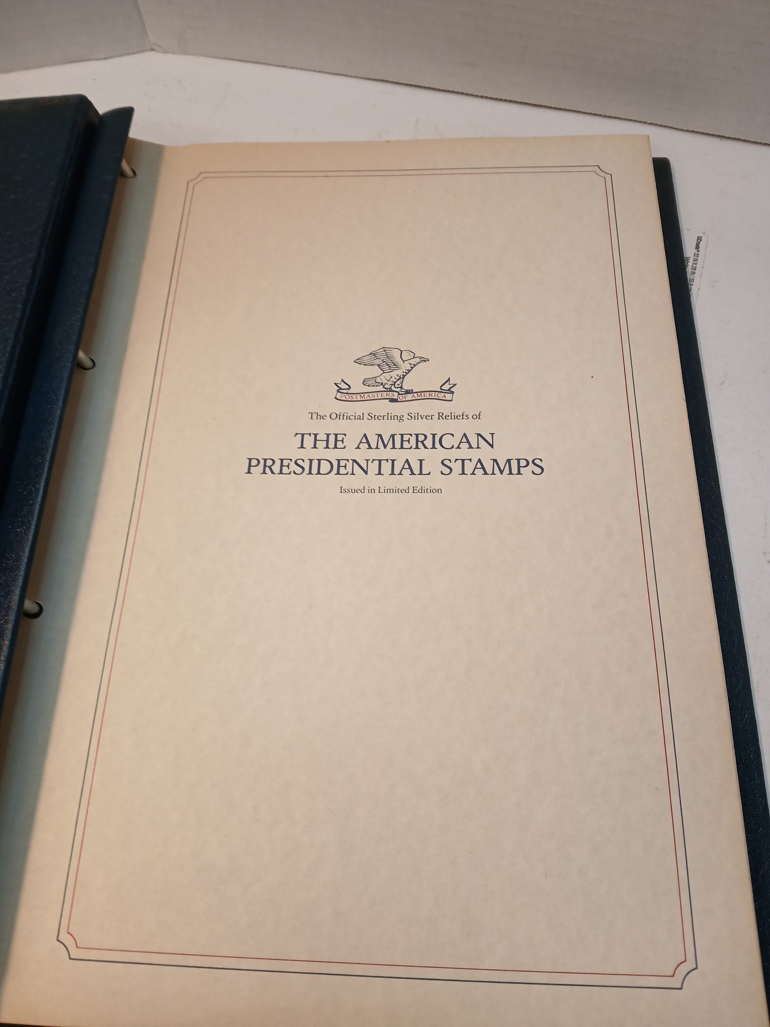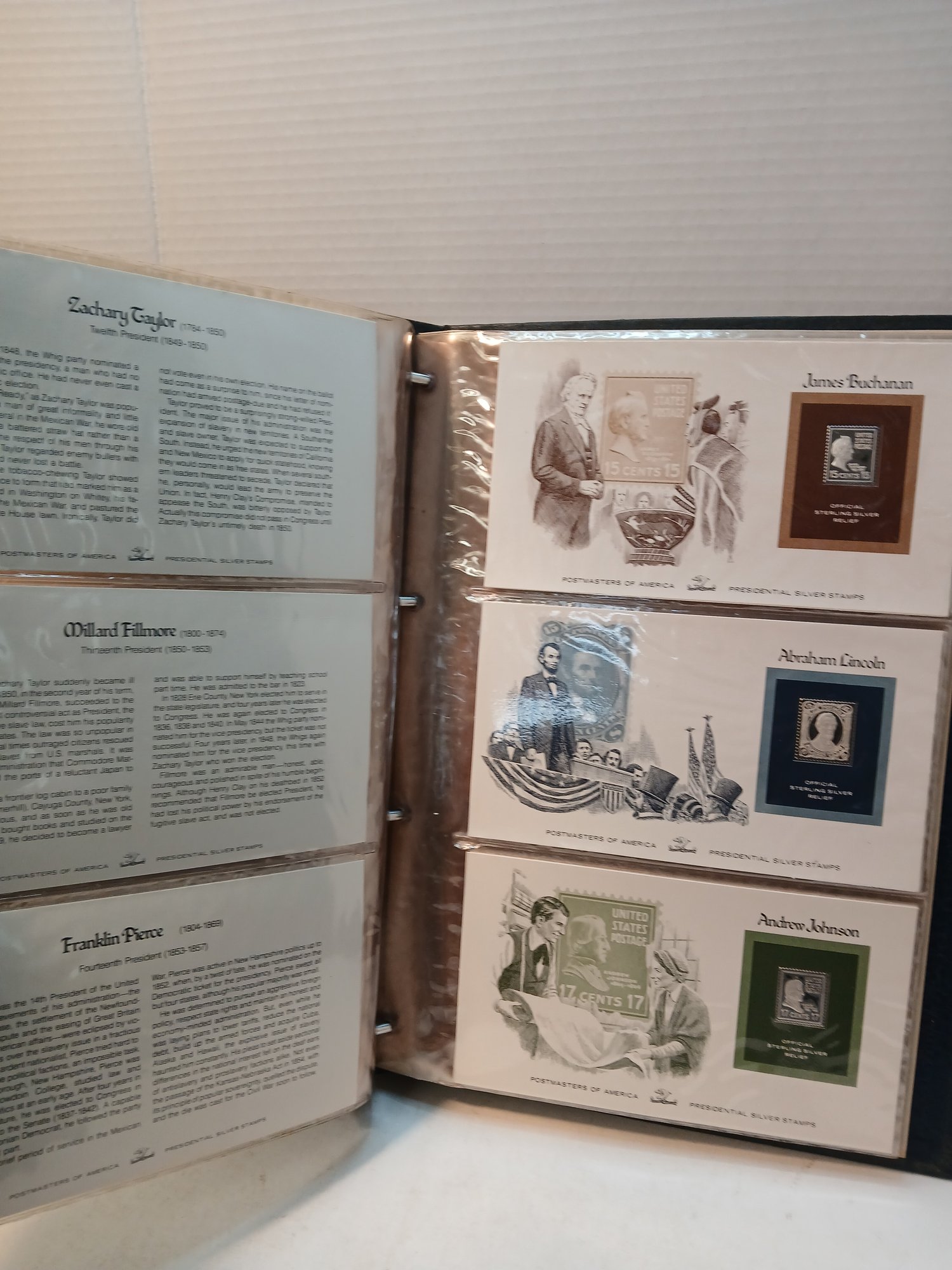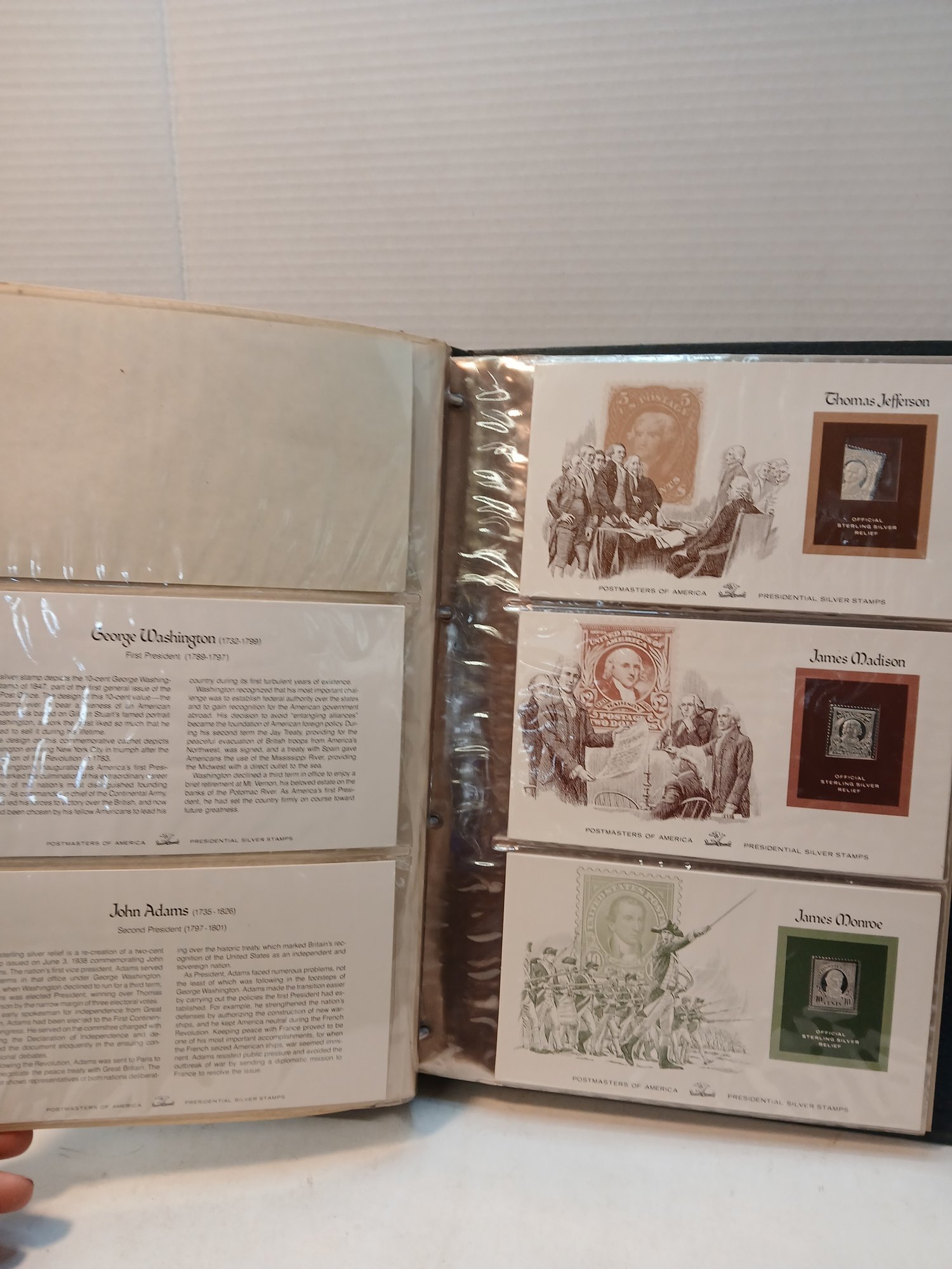 postmasters of america binder, sterling silver relief presidential stamps, washington to eisenhower
