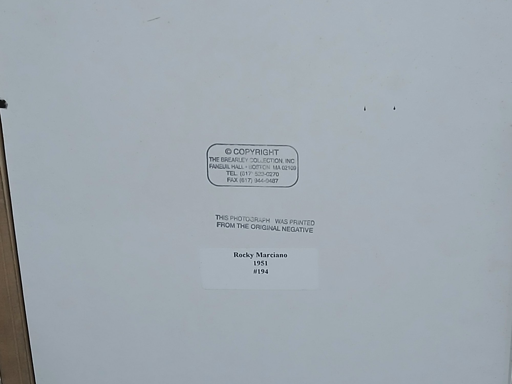 Rocky Marciano - Framed photo -- Brealey Collection printed from original negative 1951 Numbered # 194