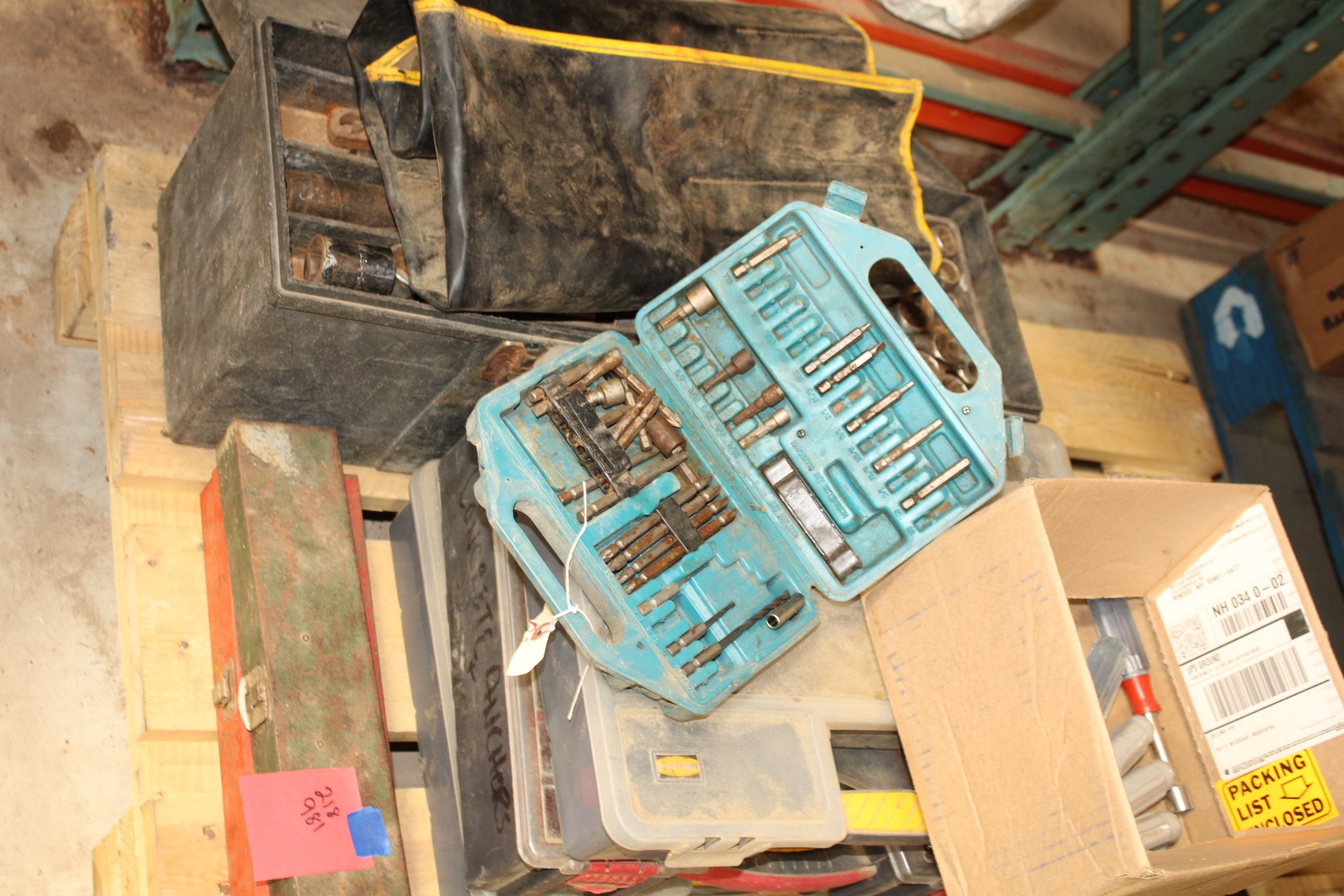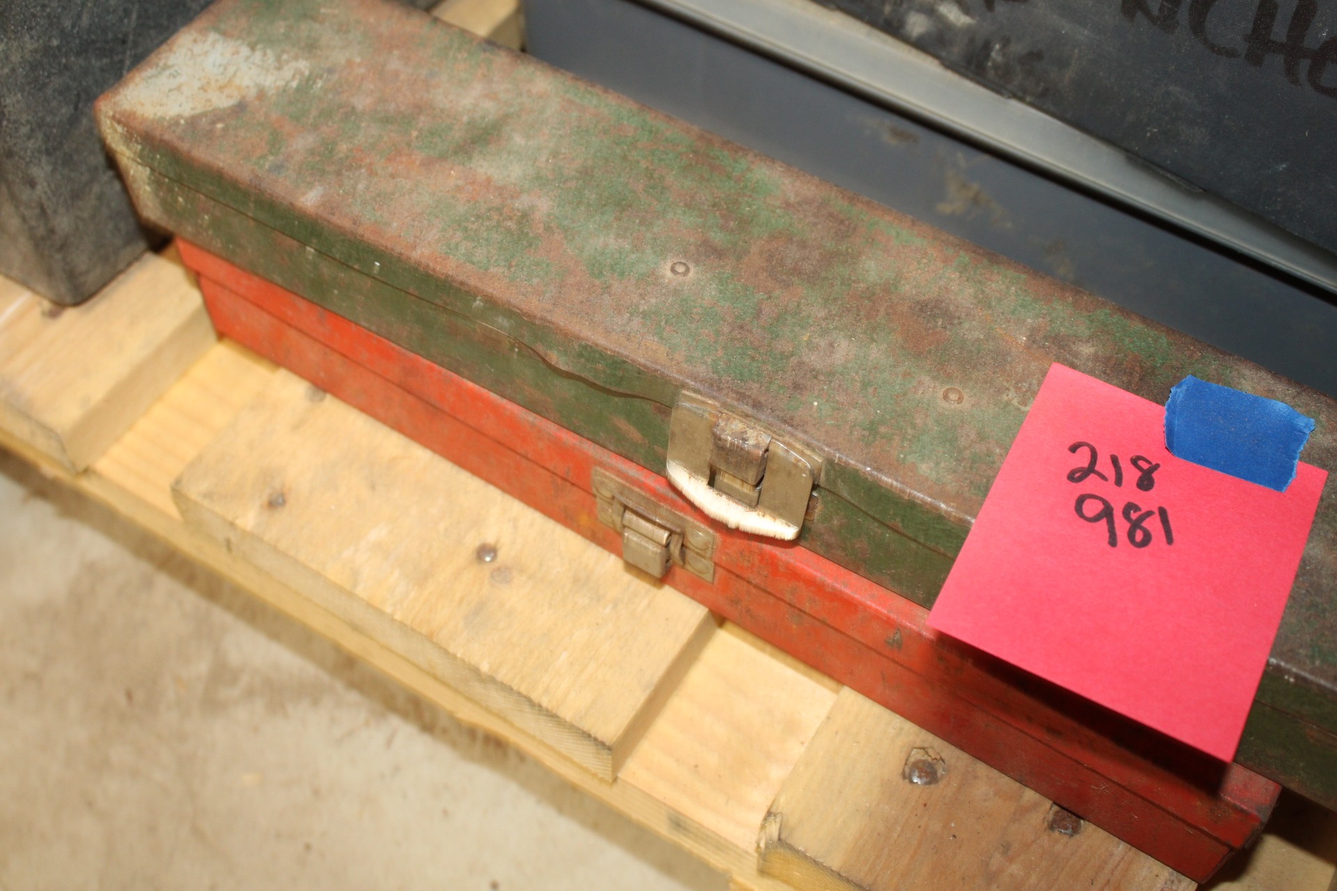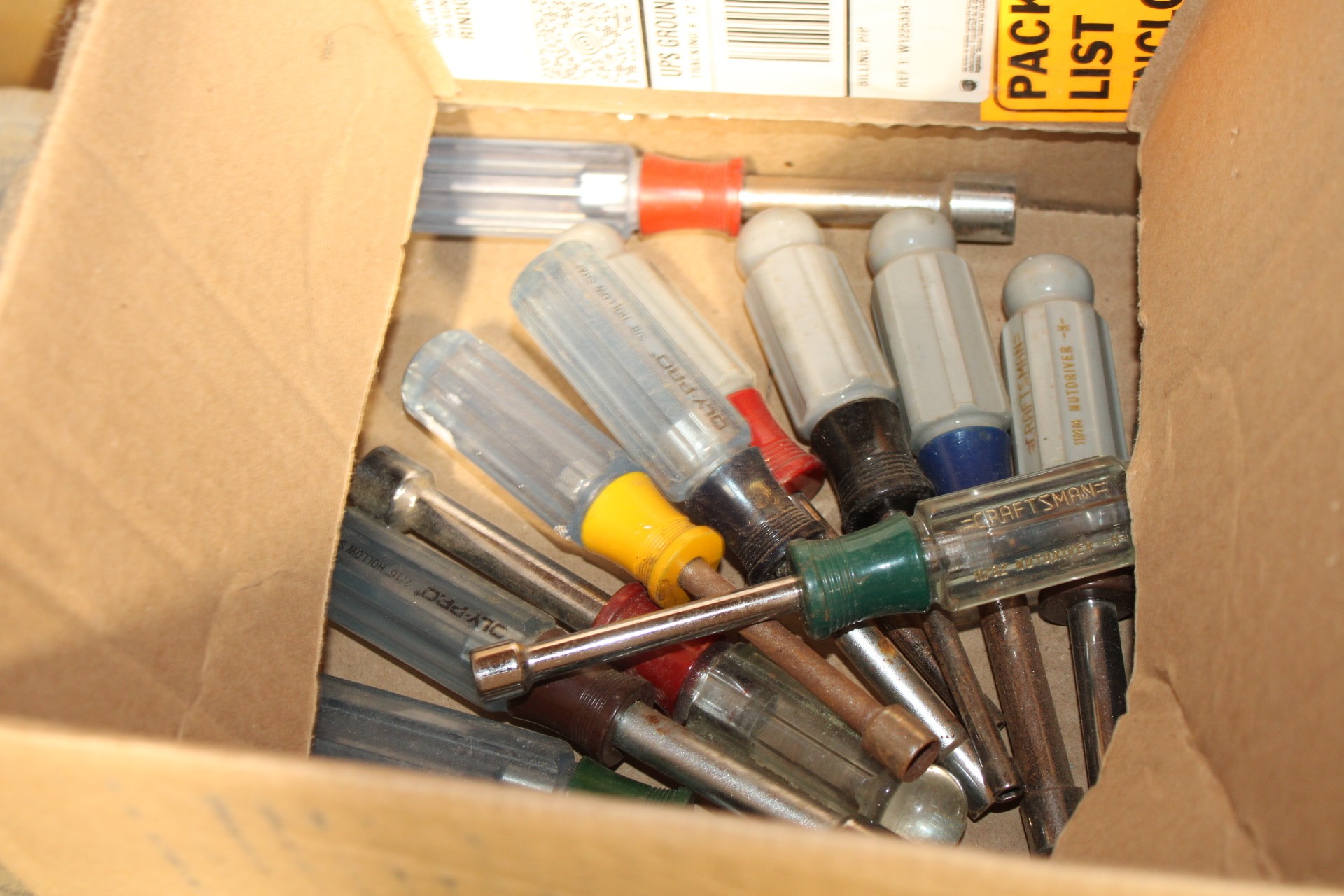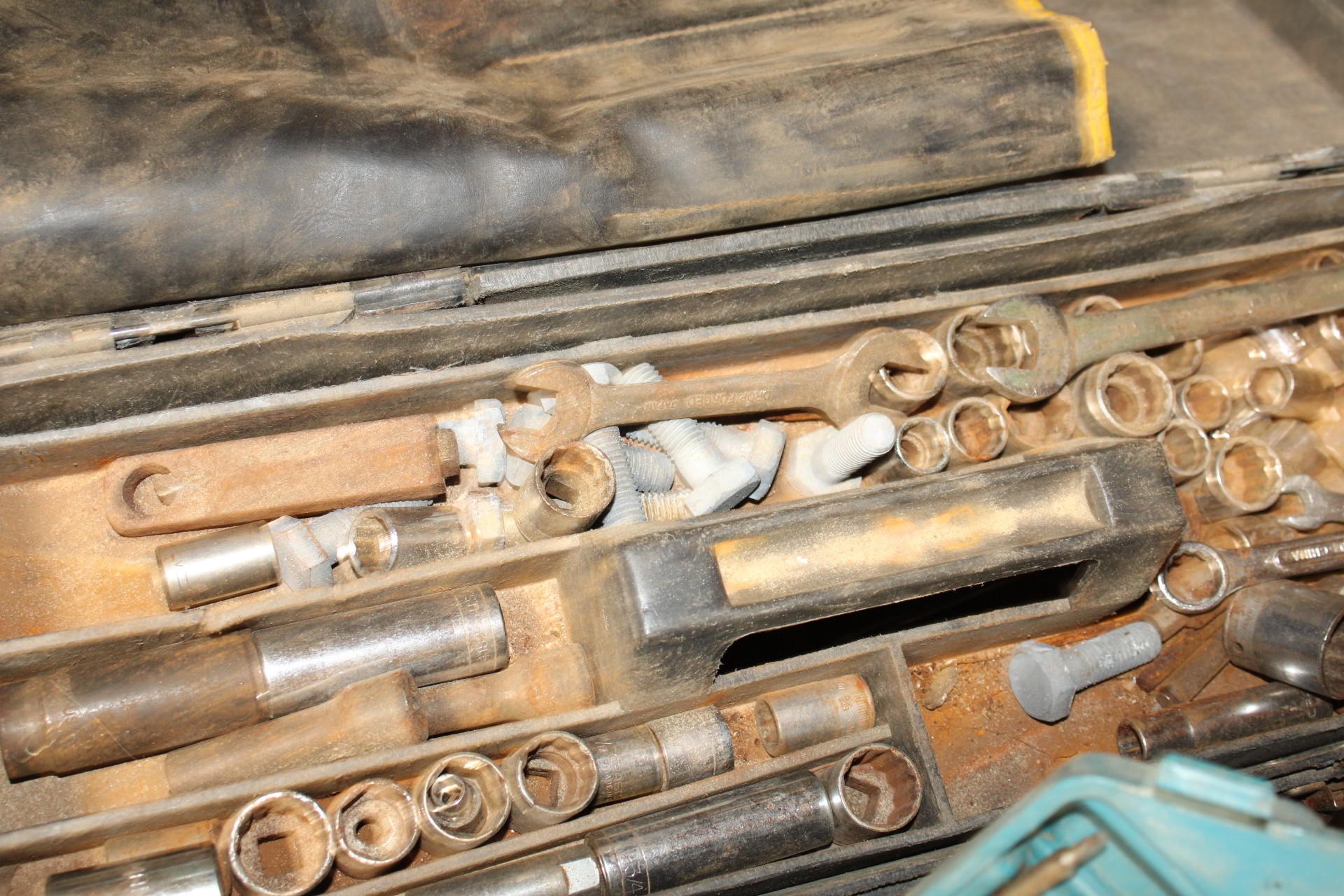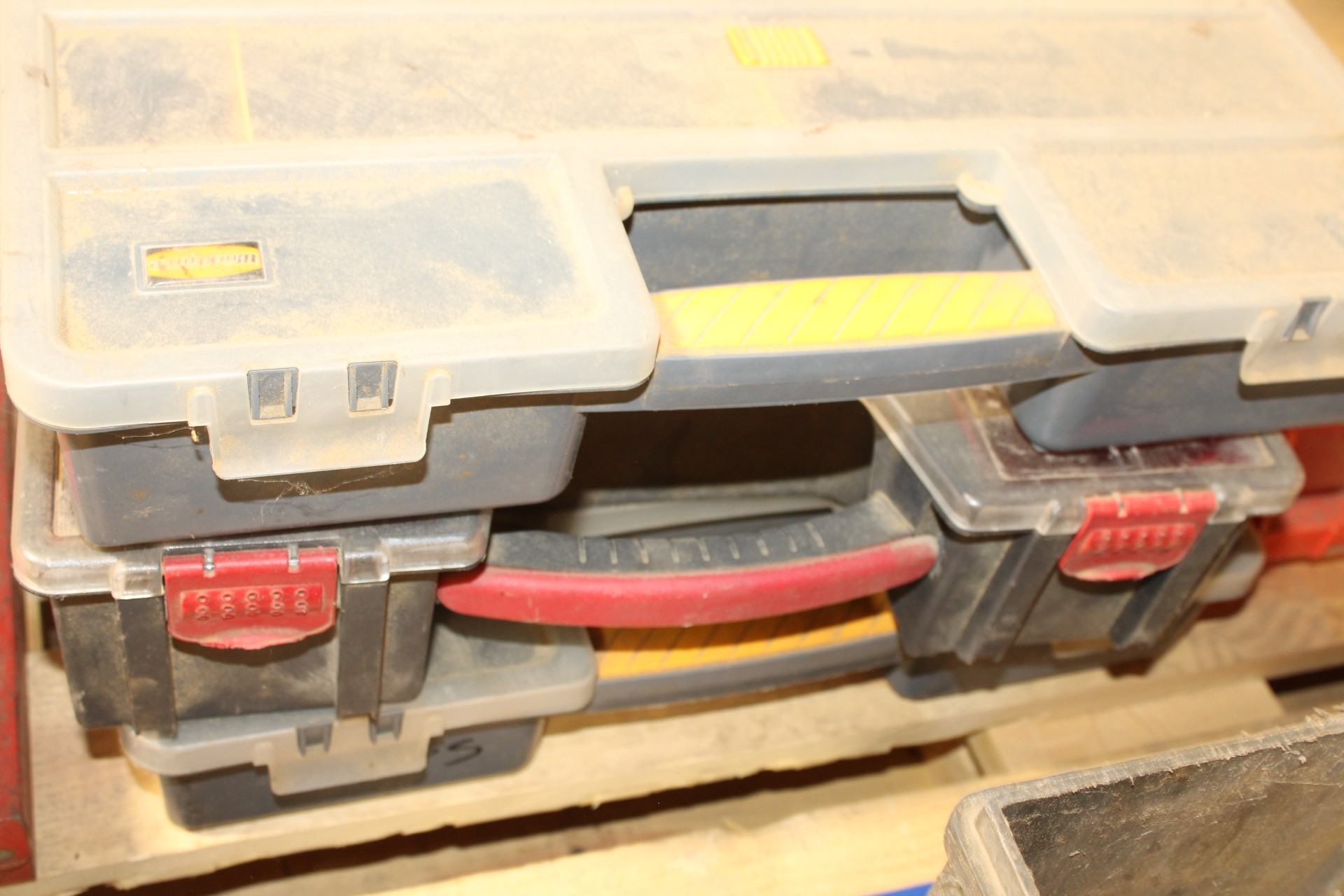 tool box of sockets wrenches craftsman, and 3 empty sorting storage boxes