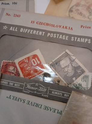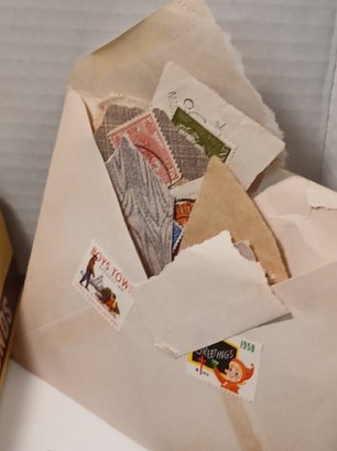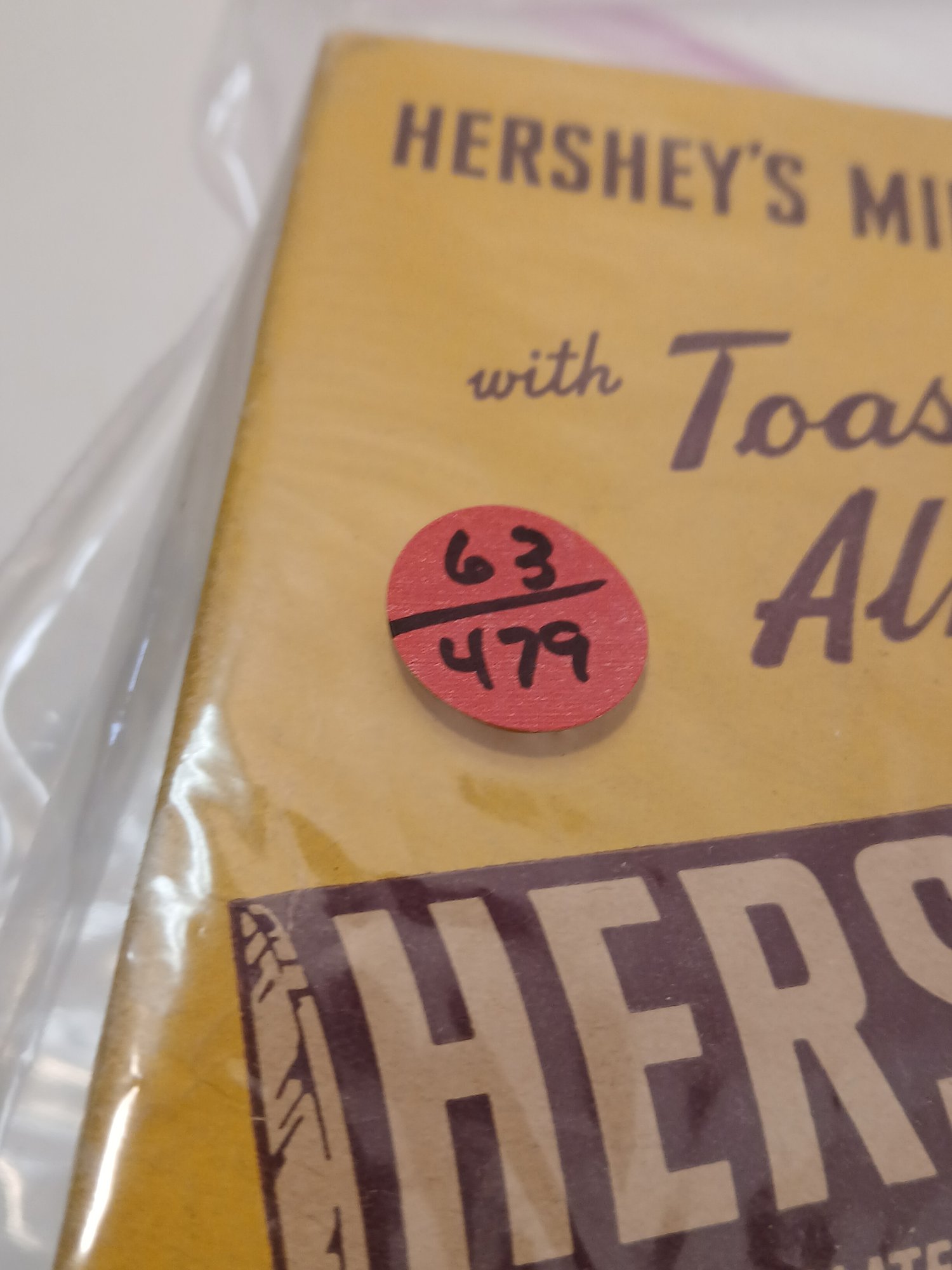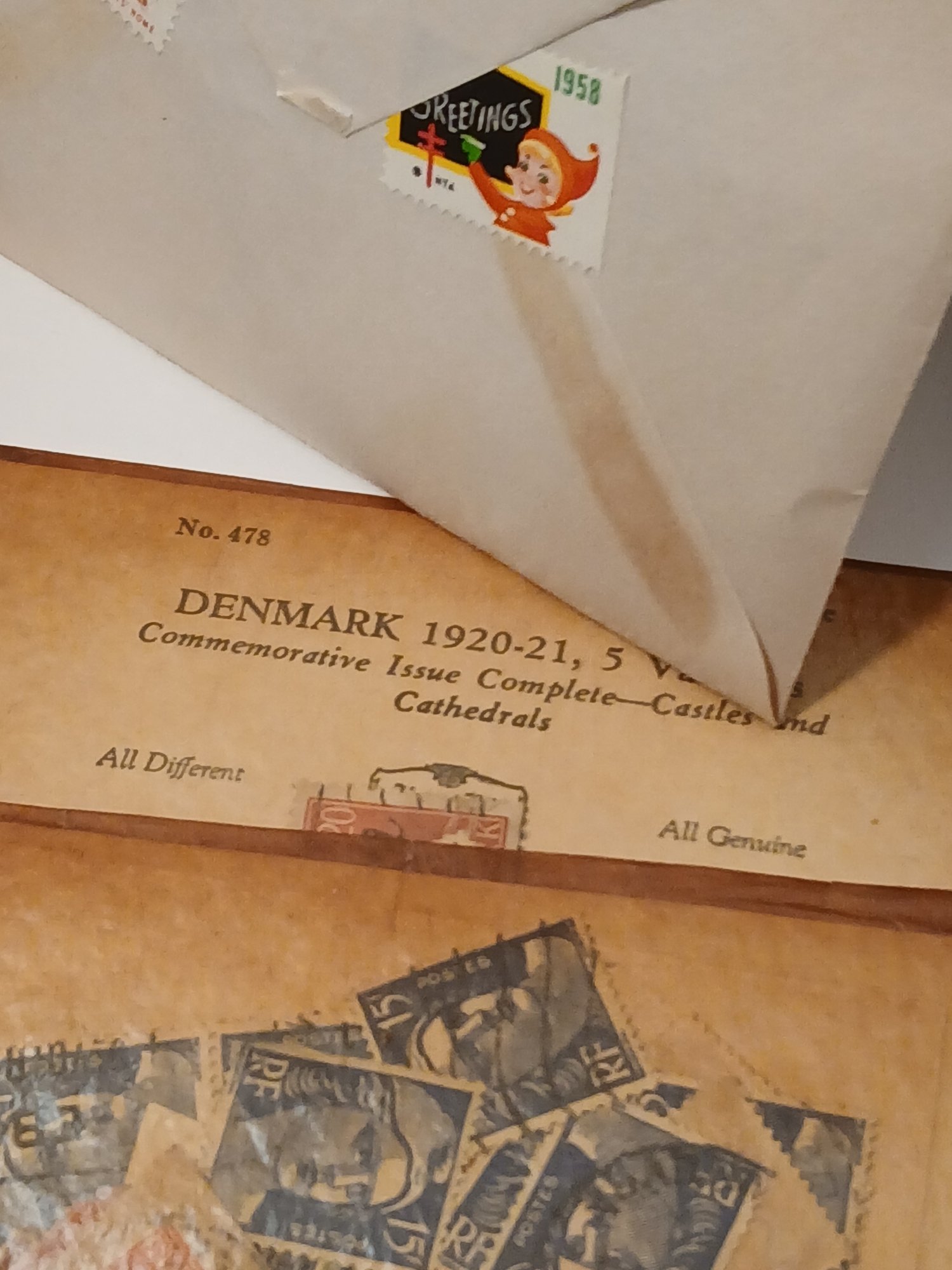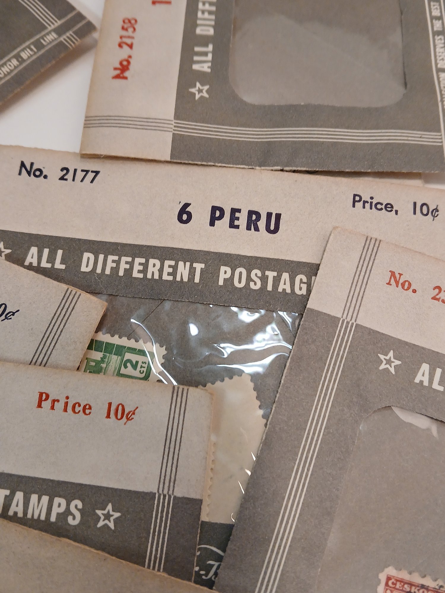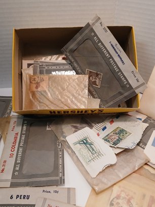 vintage hershey's milk chocolate with almonds box, filled with stamps, cute bit of ephemera