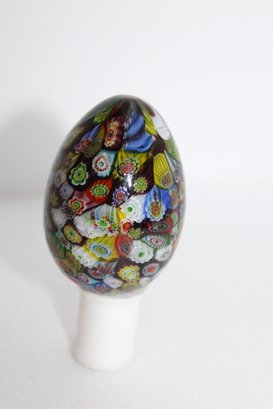 Vintage Paperweight MURANO Glass Millefiore Egg Italian Glass, 1970 Measures 2.5 inches tall & 1.75 wide with flat bottom