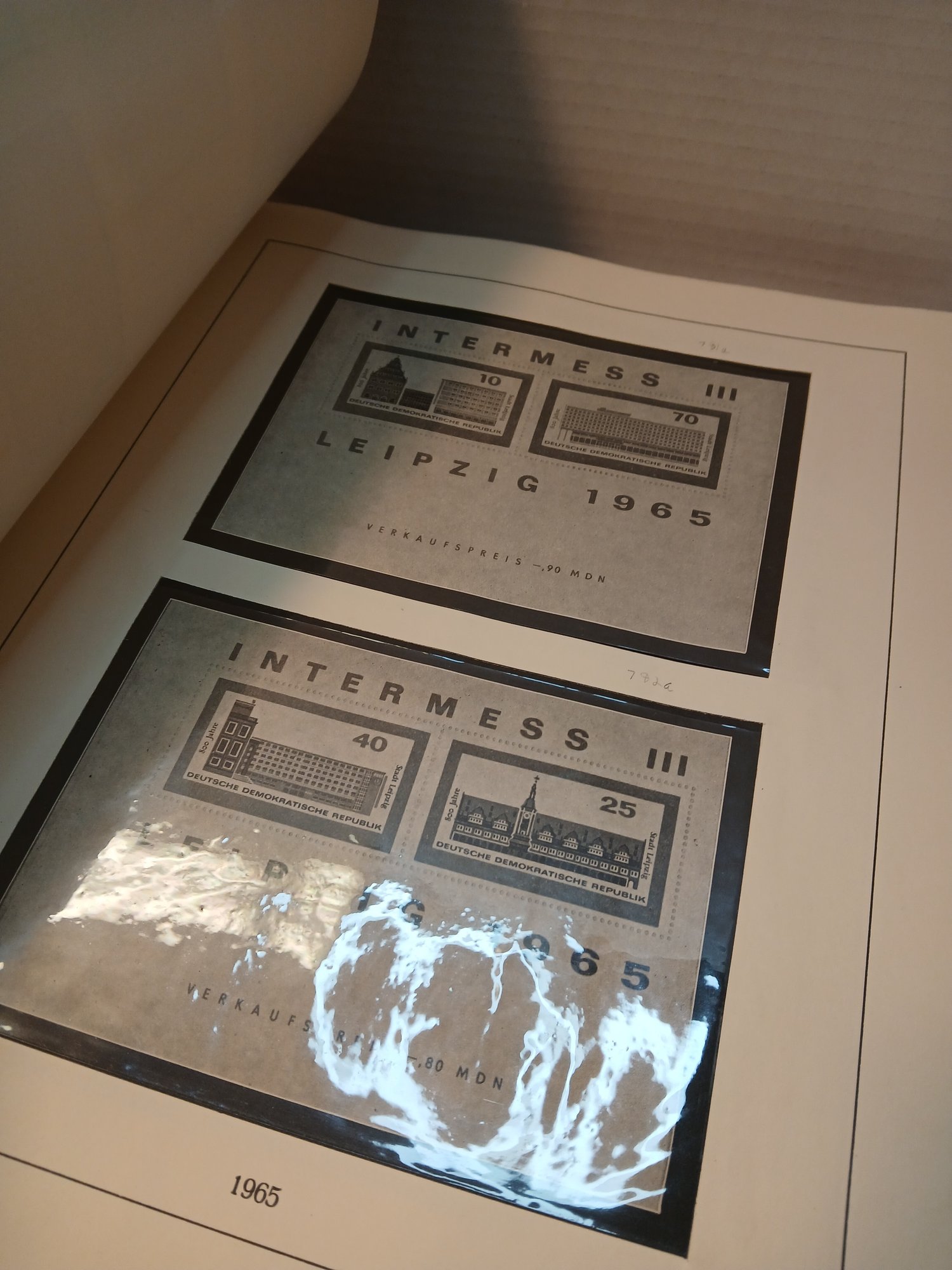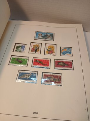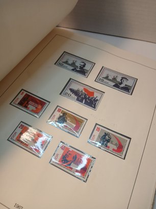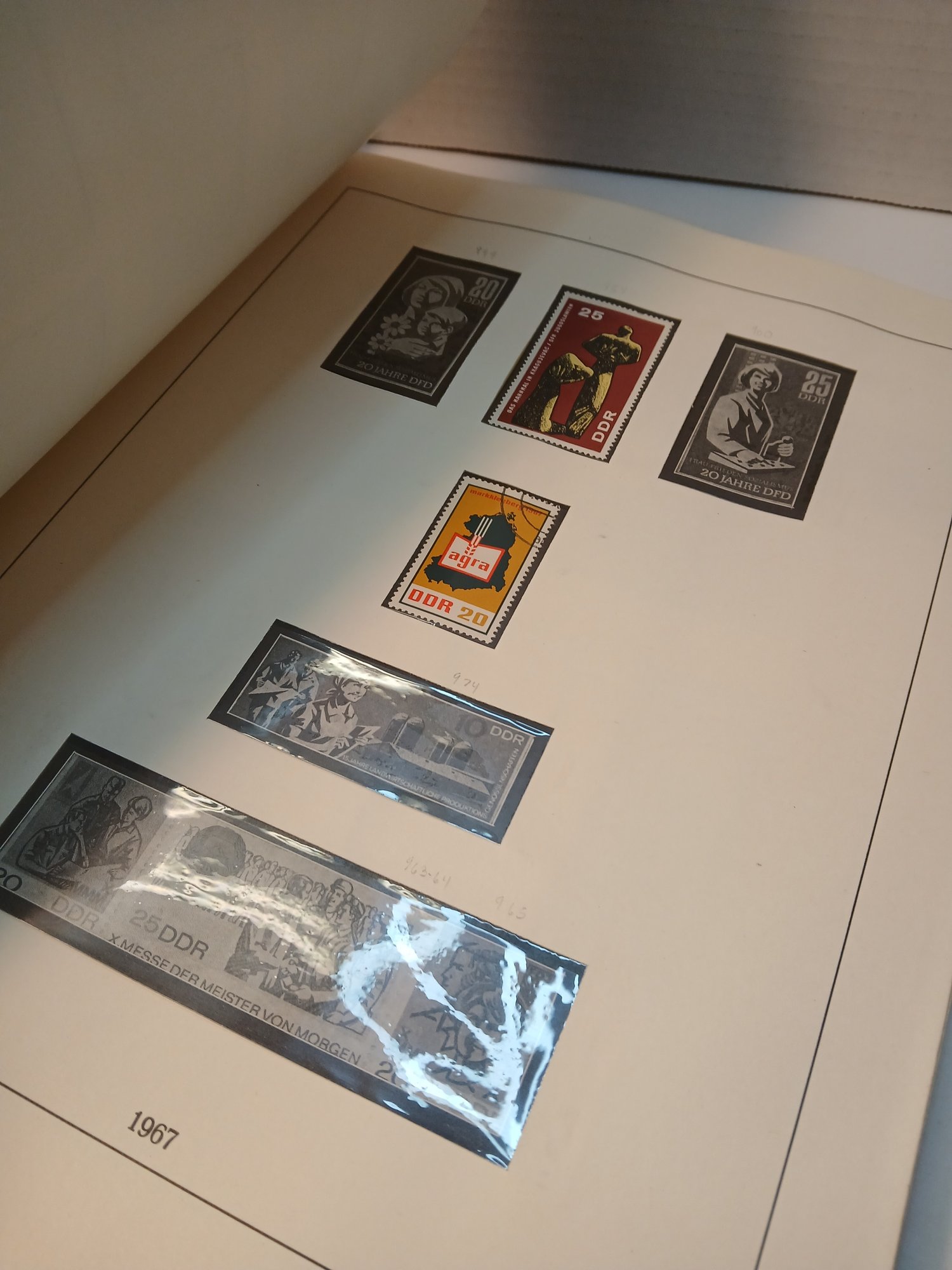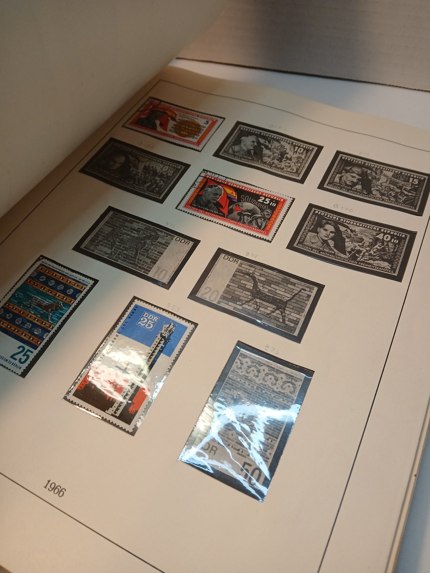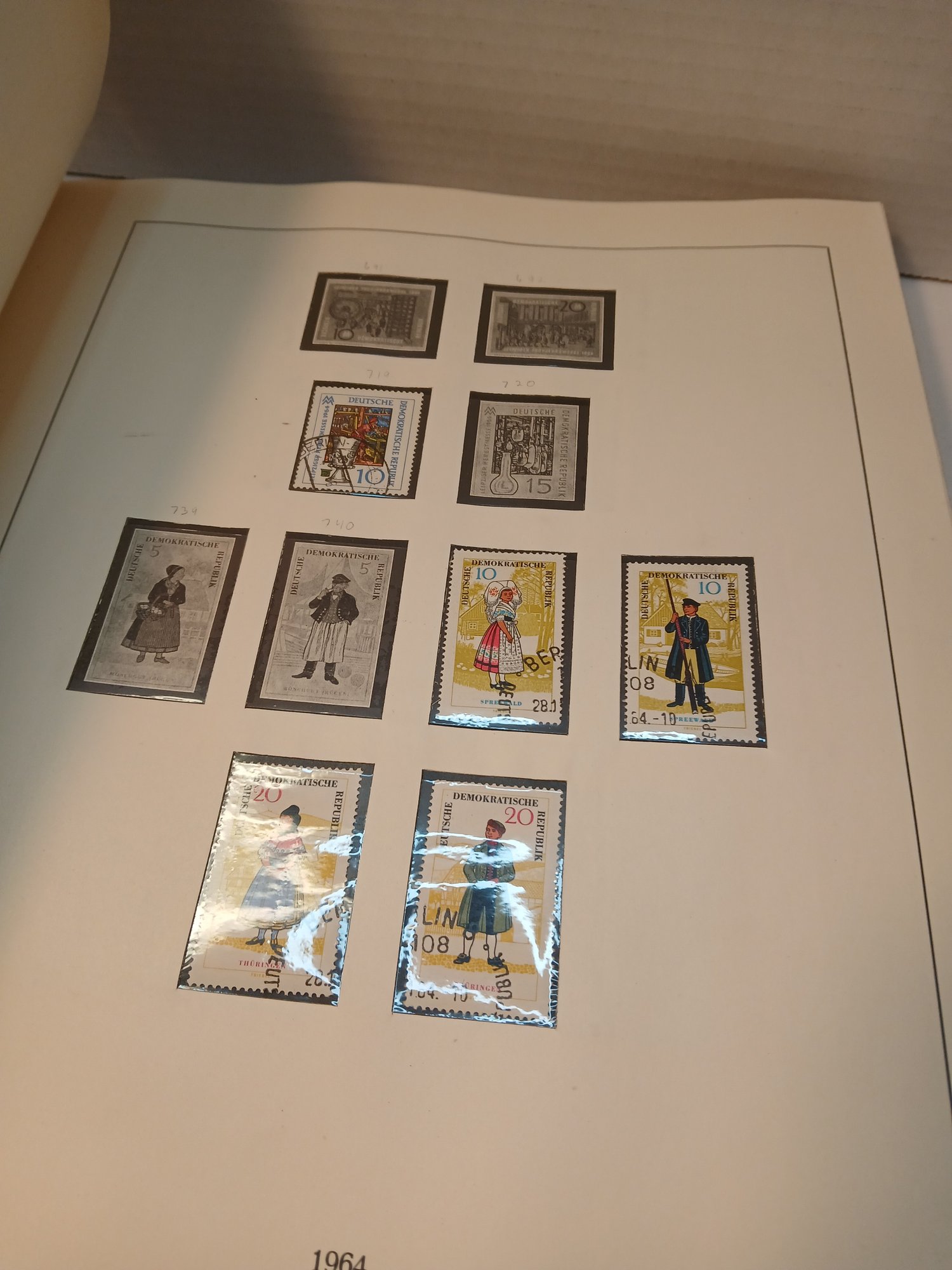 vintage red binder, 1960's german stamps, 60% full, approximately