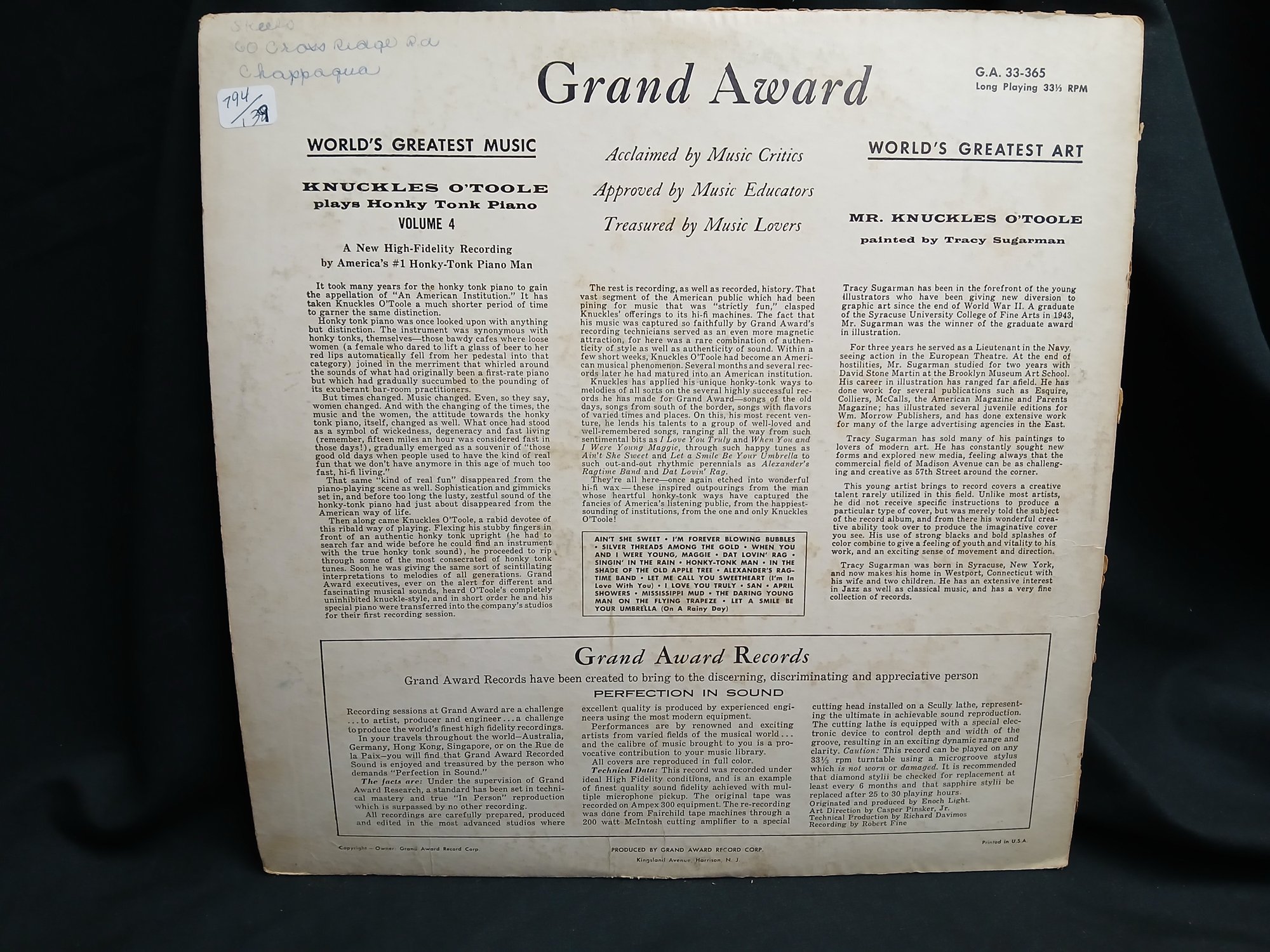 Vinyl - Knuckles O'Toole - Plays Honkie Tonk piano Vol. 4 - jacket good, record great