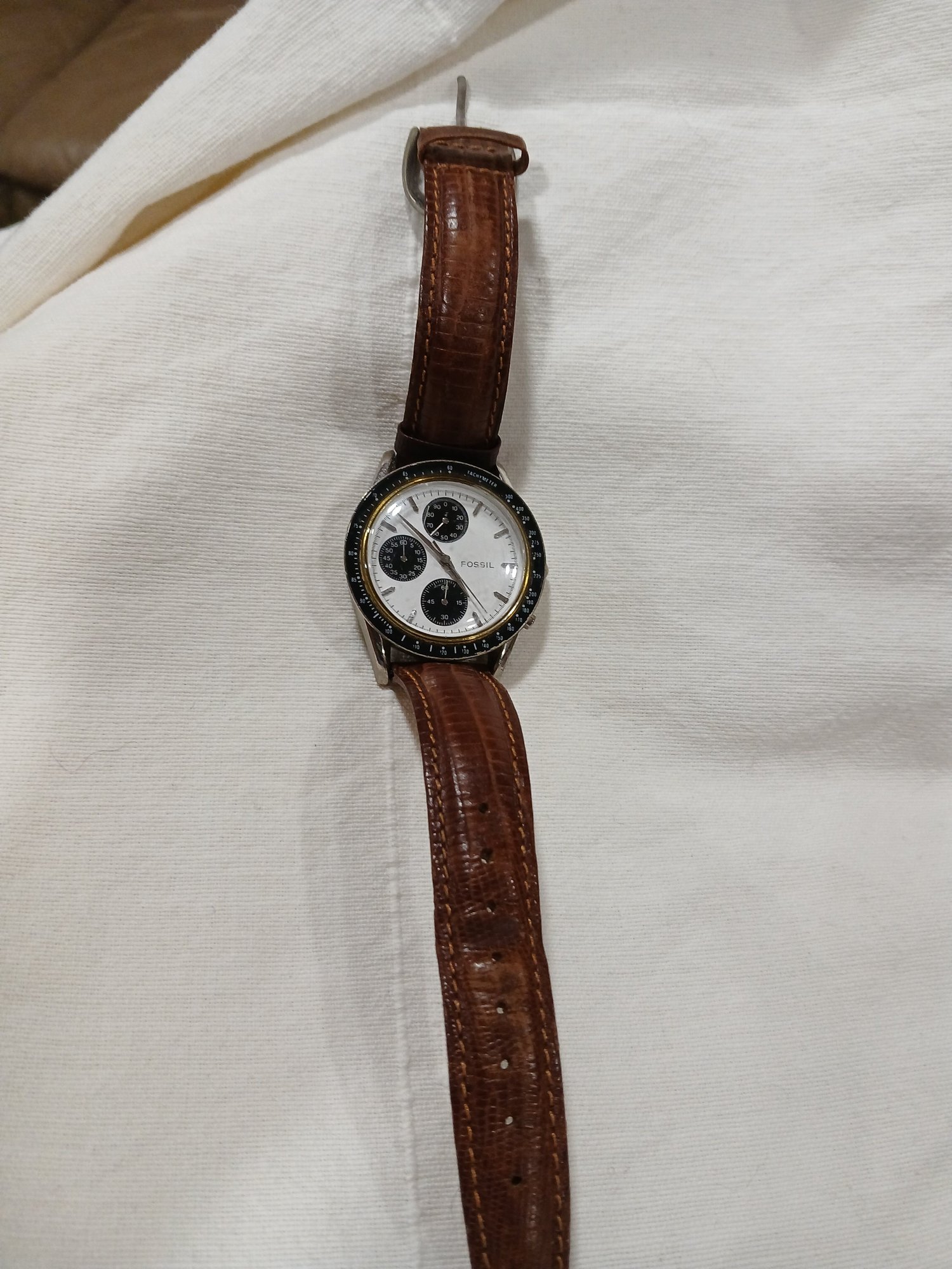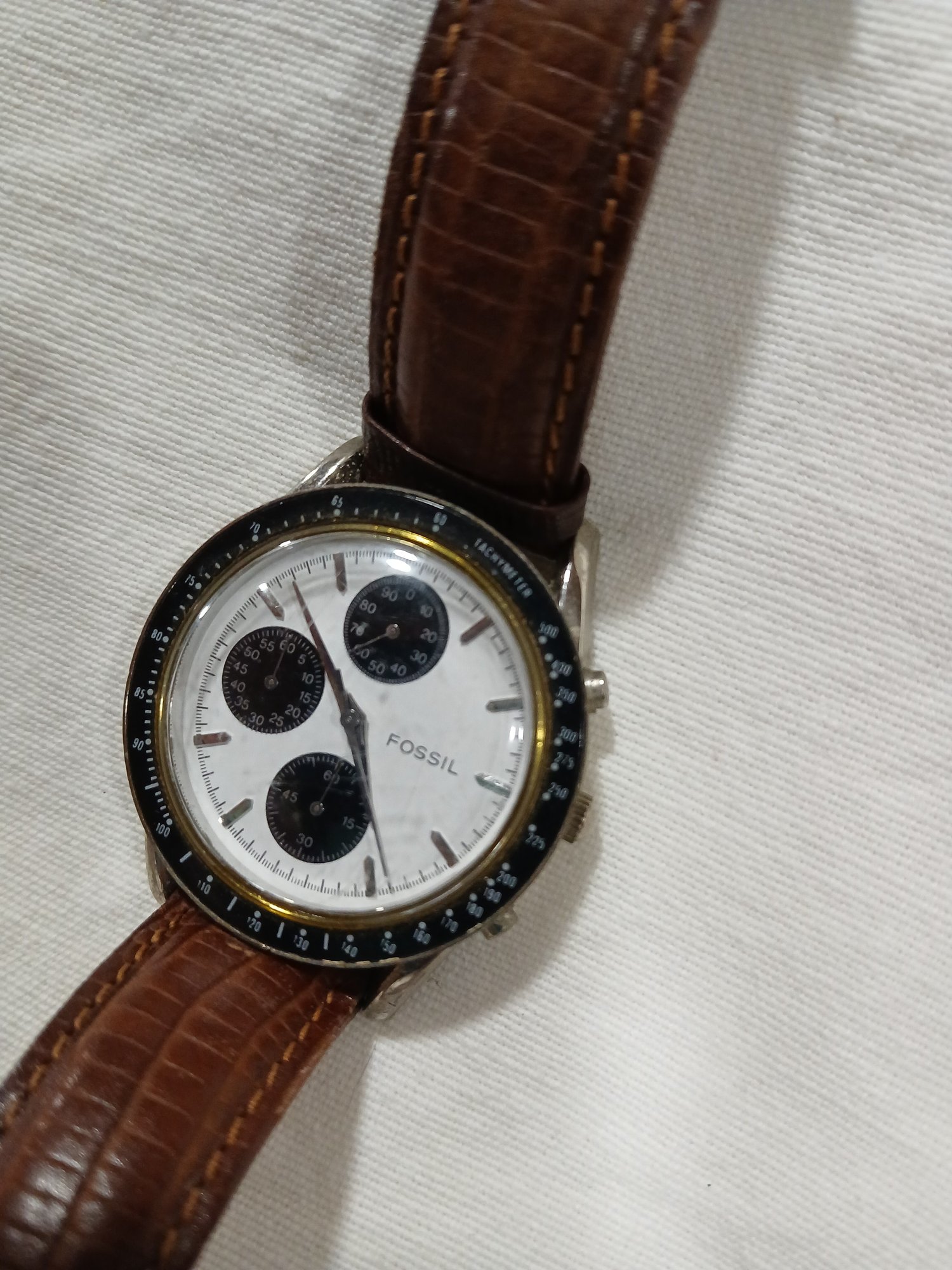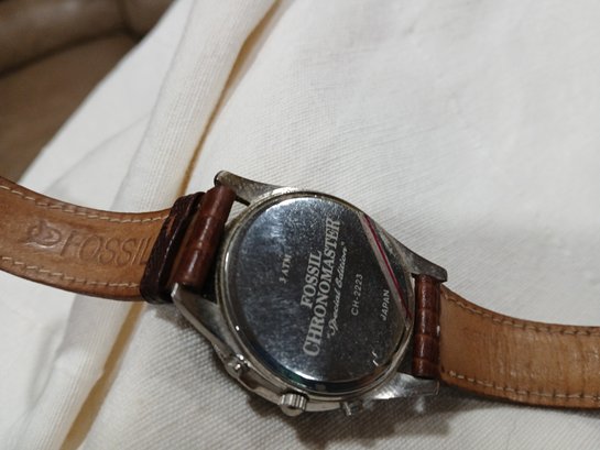 Vtg Fossil Chronomaster "PANDA" Special Edition CH-2223 Leather strap, shows wear