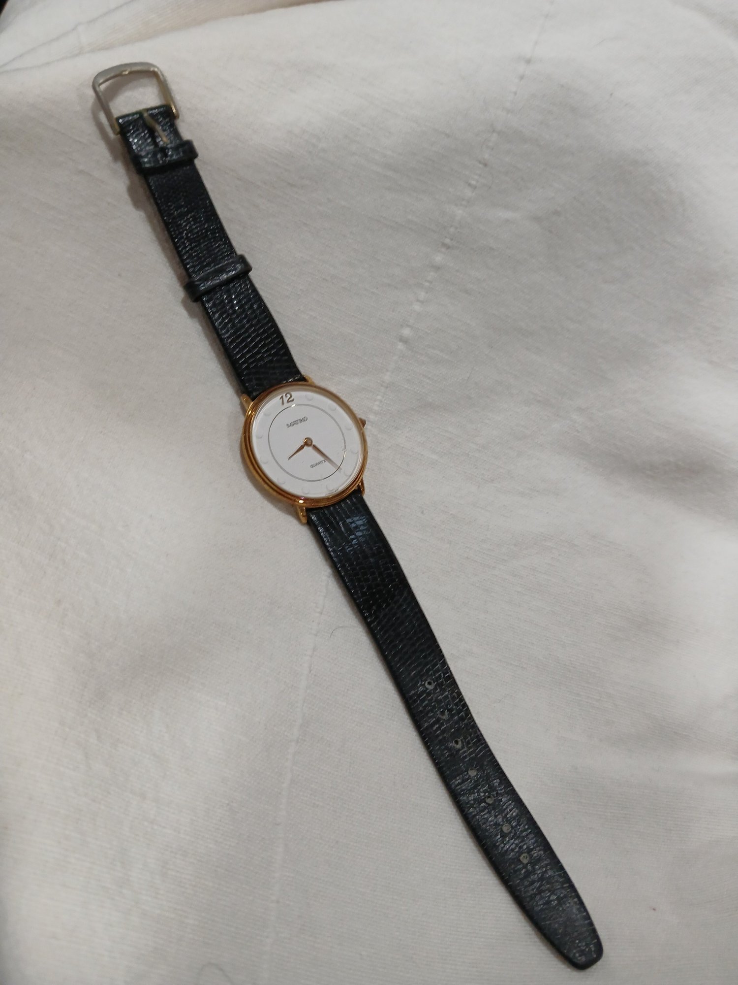 Vtg Style Makita Wristwatch w/ goldtone case, black textured strap