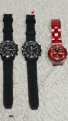 Watches: 1 red Swatch Chronograph used, & 2 Unbranded Chronographs