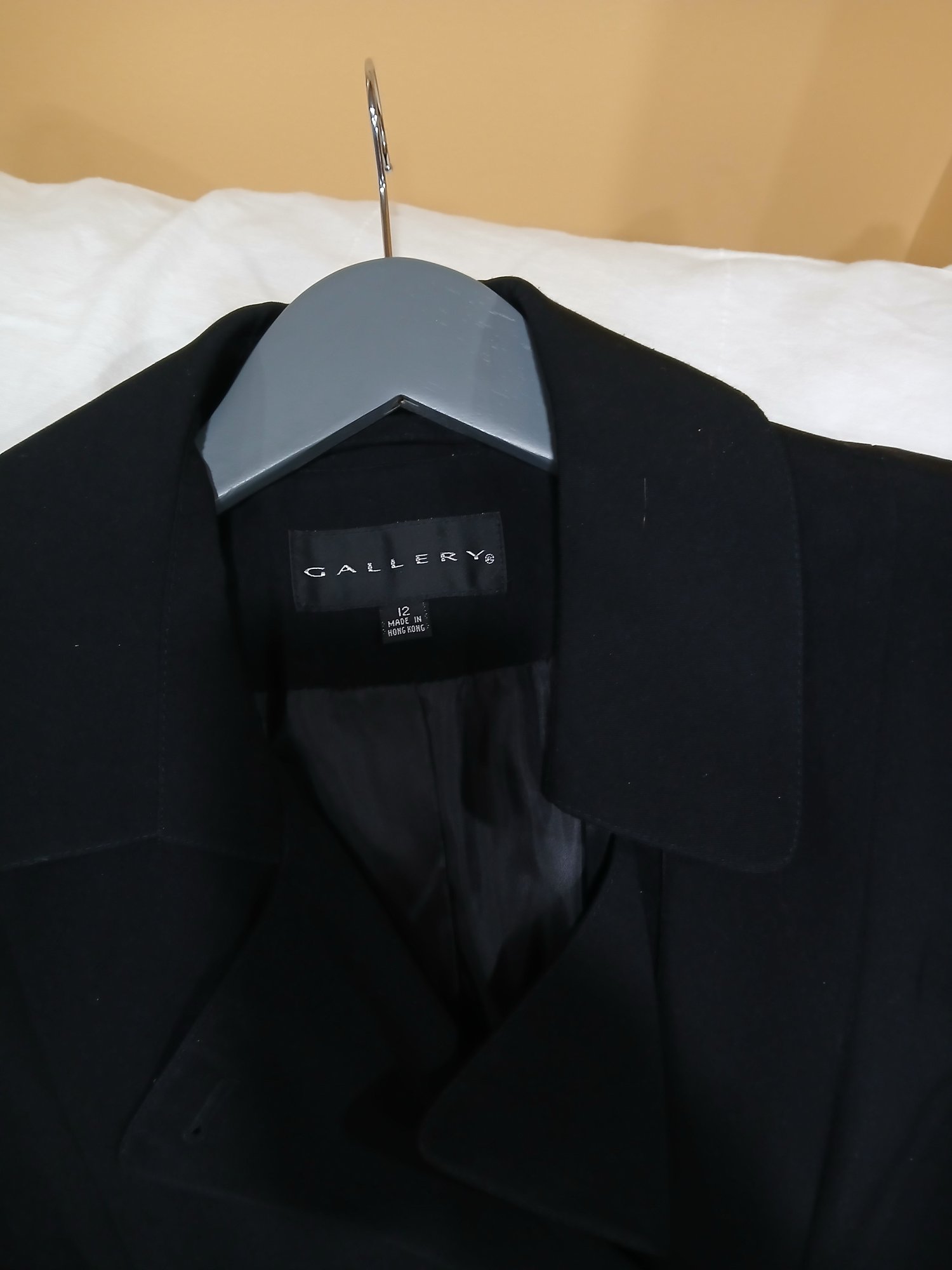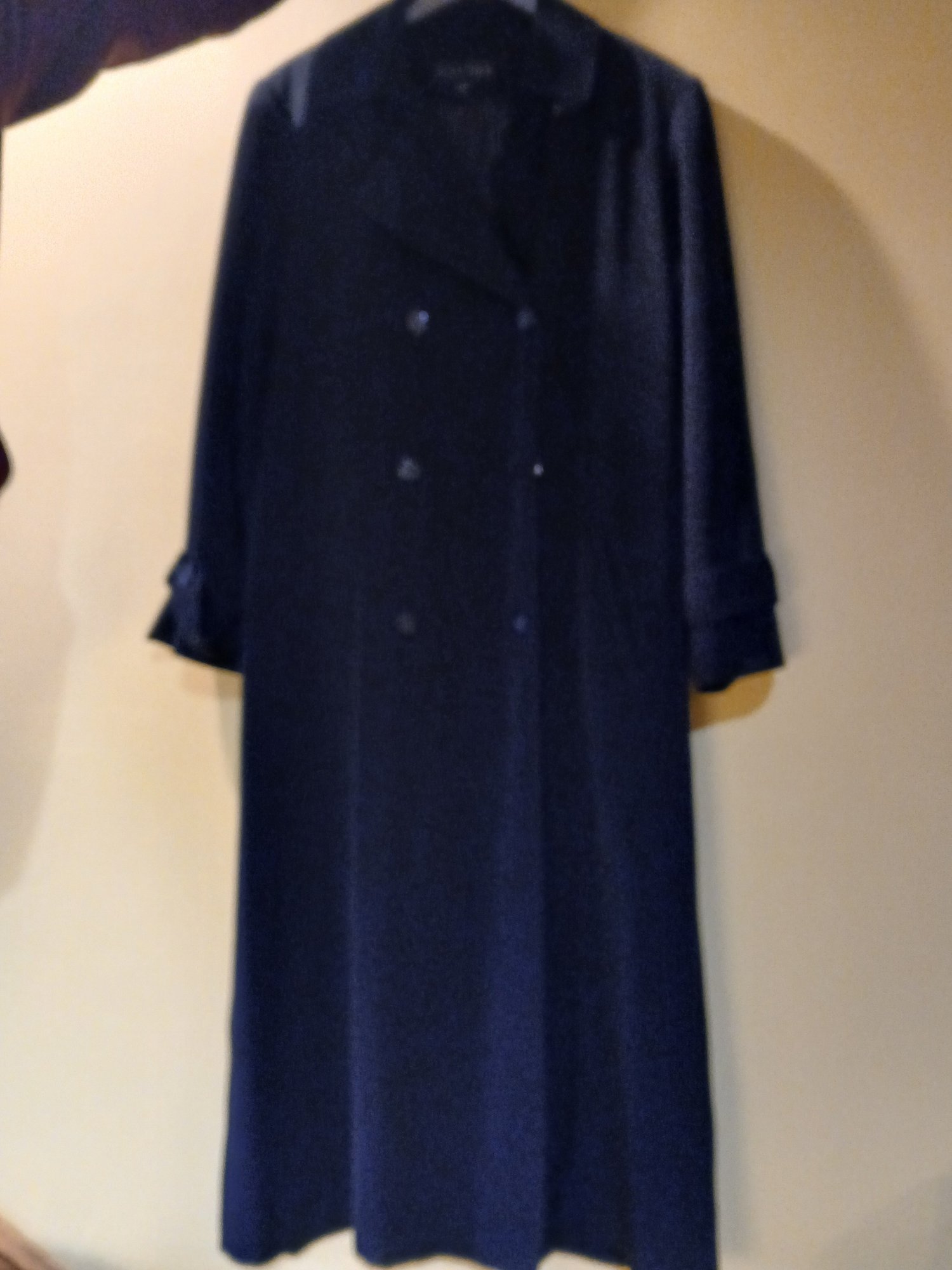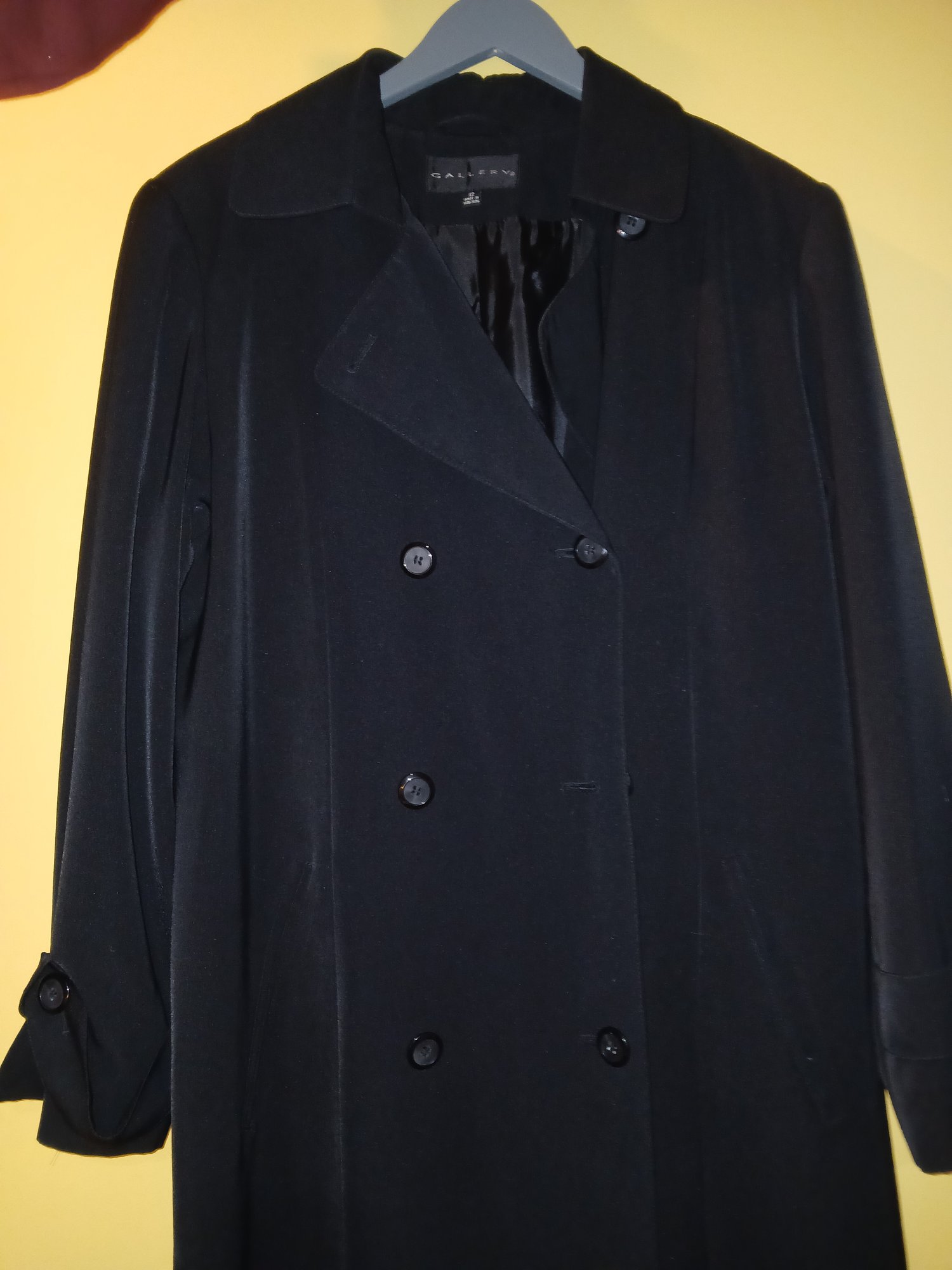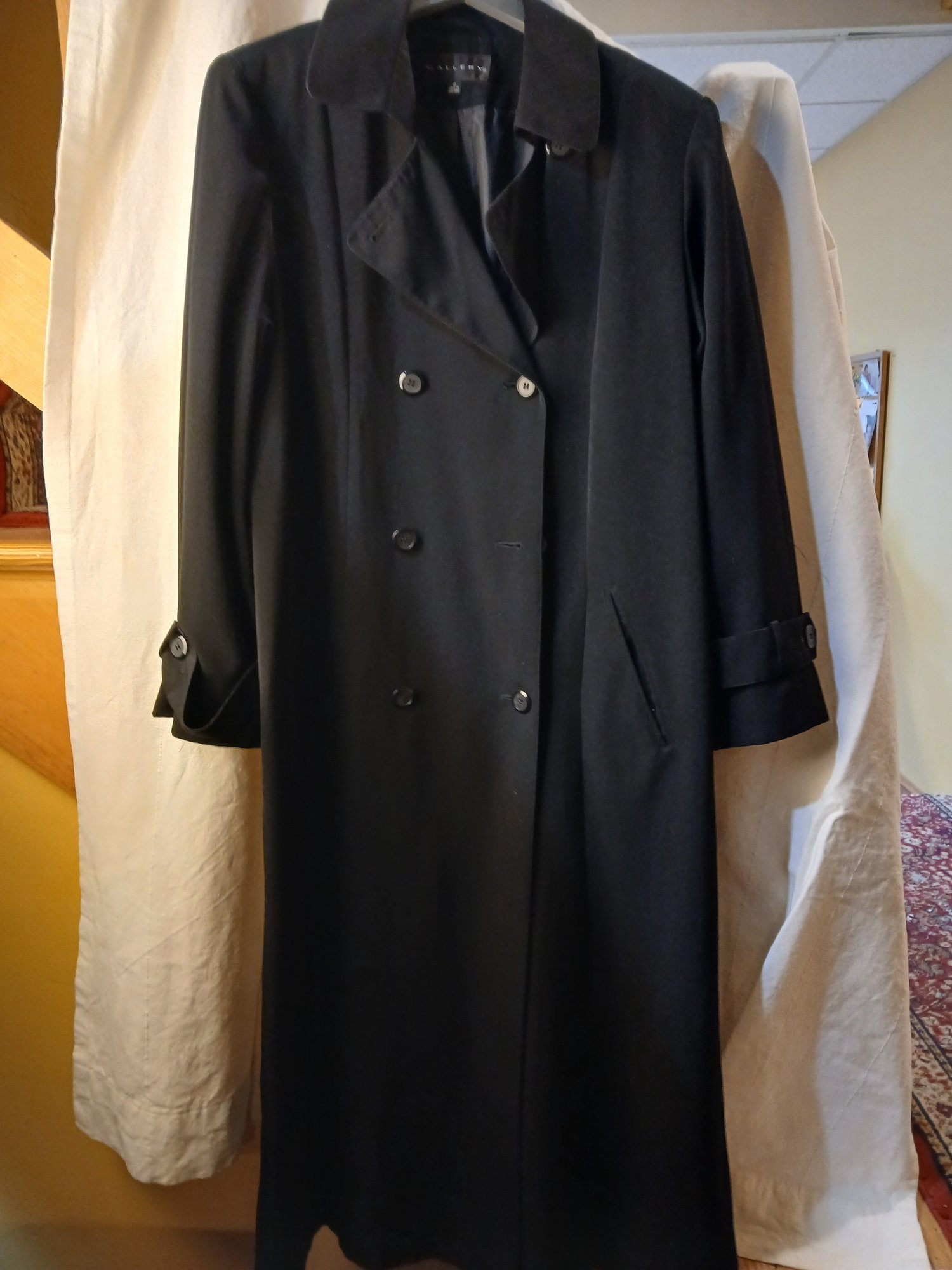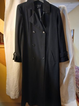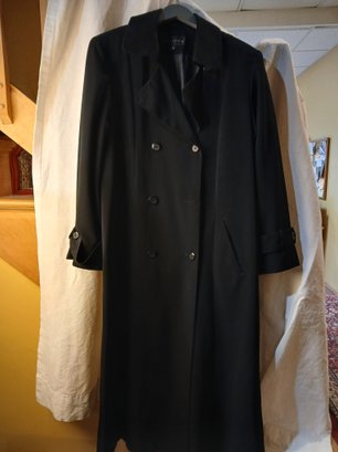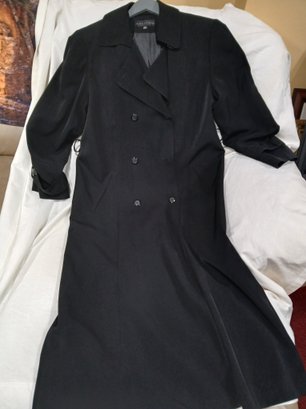 Women's Long Black Trench Coat, "Gallery" Sz 12 , Double breasted