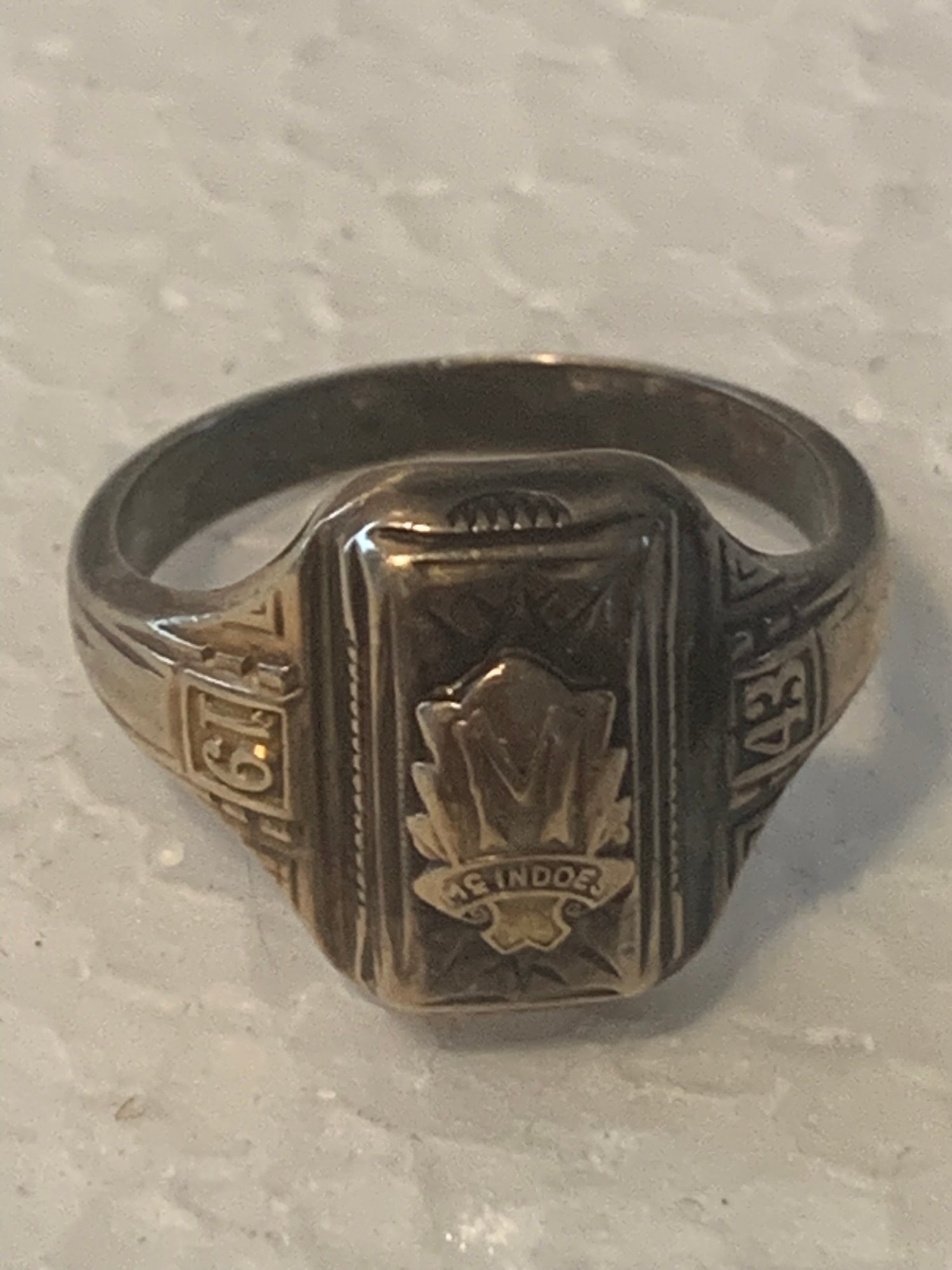 1943 GOLD PLATED CLASS RING 7 GRAMS, MARKED