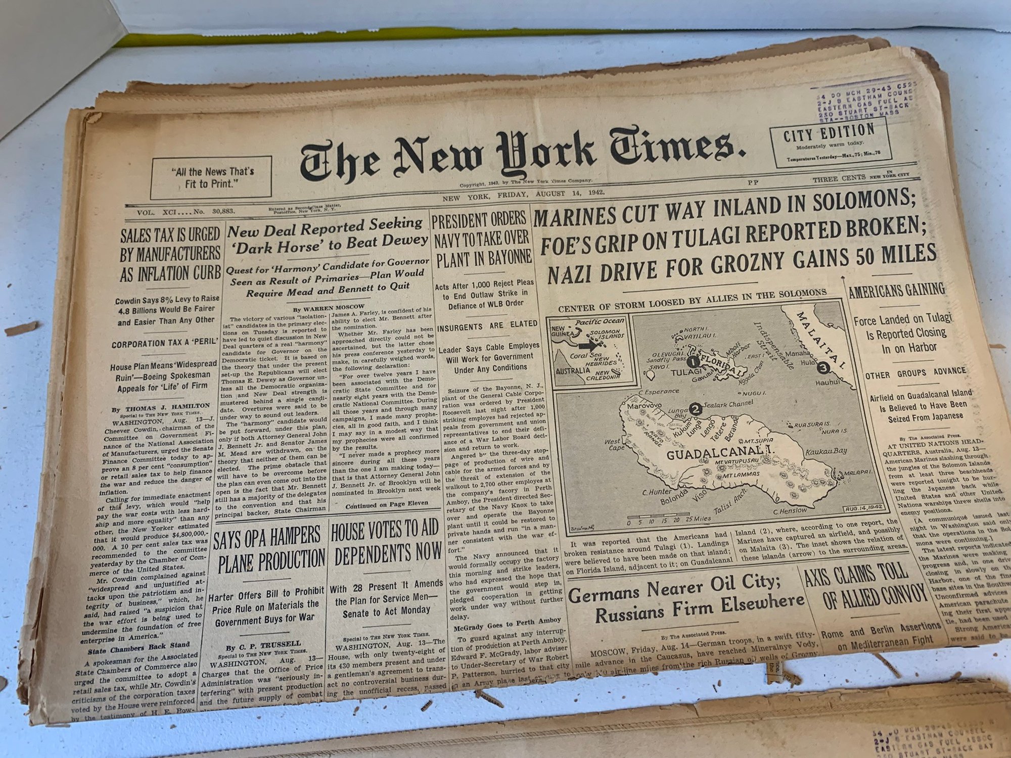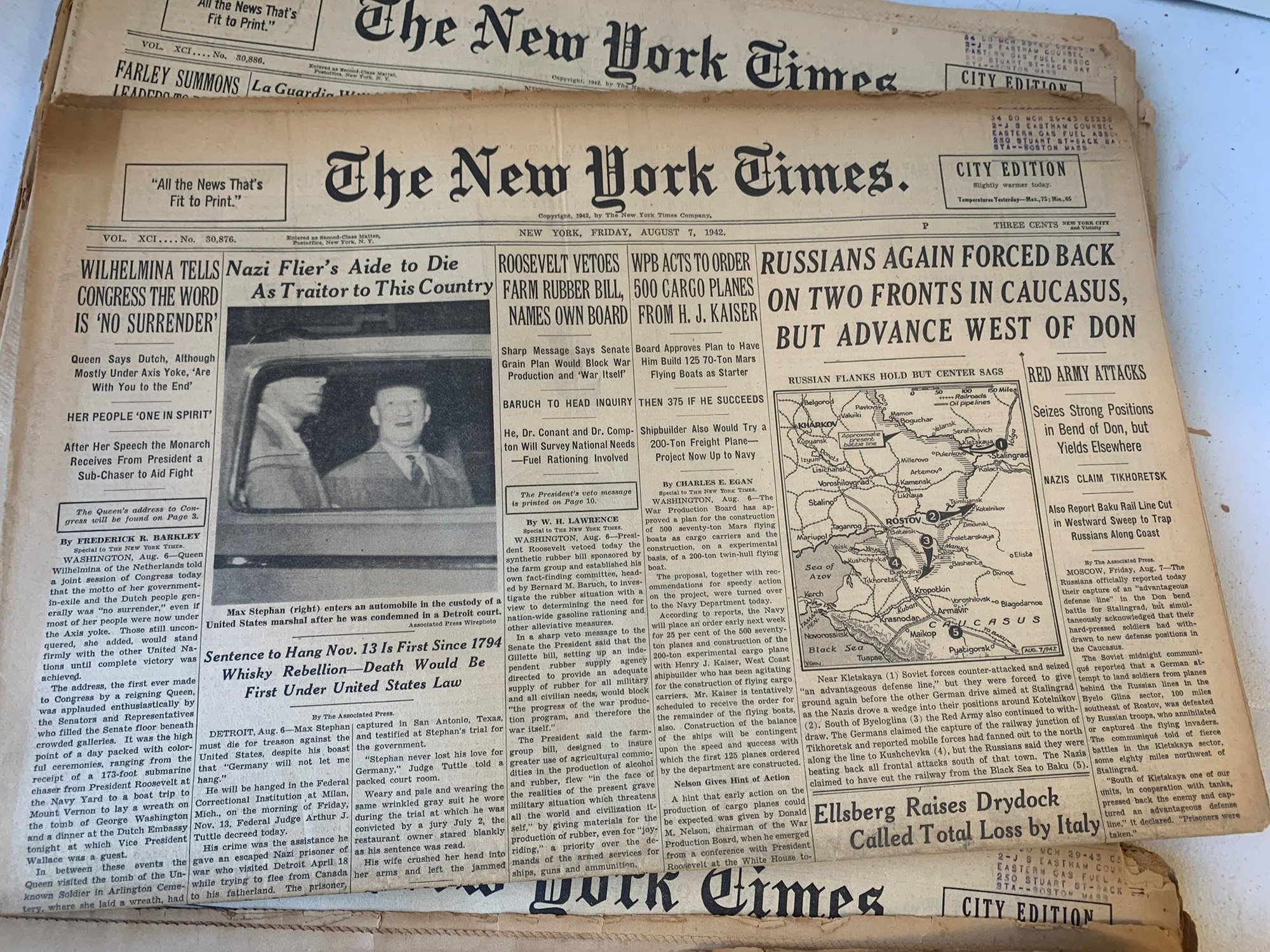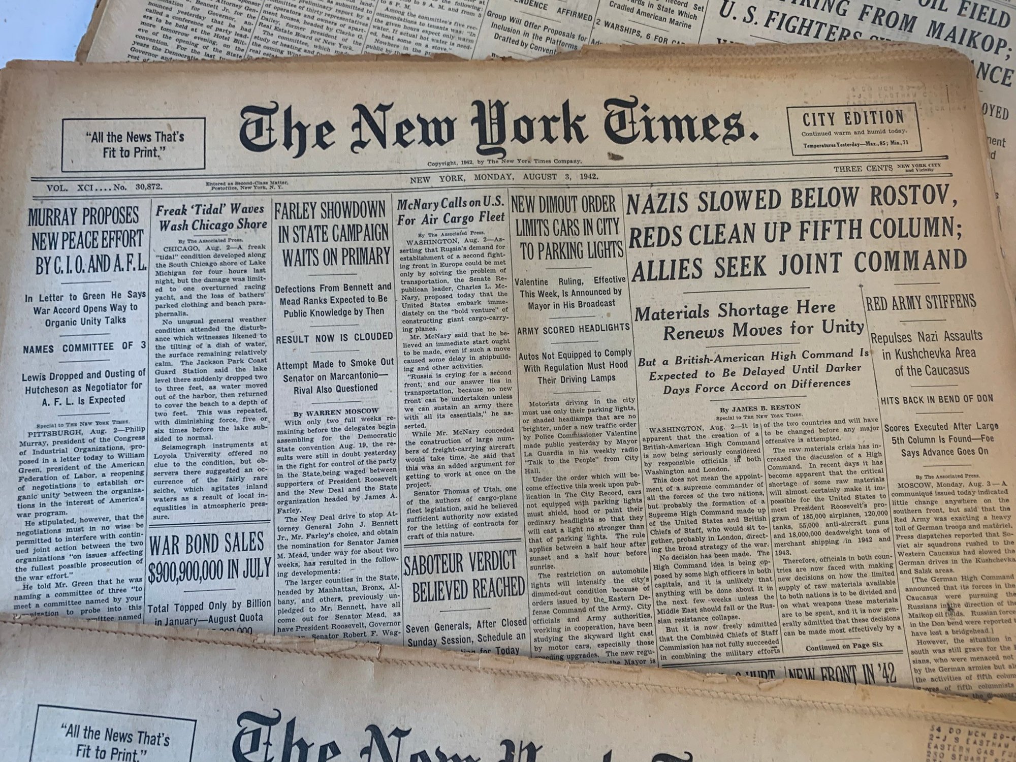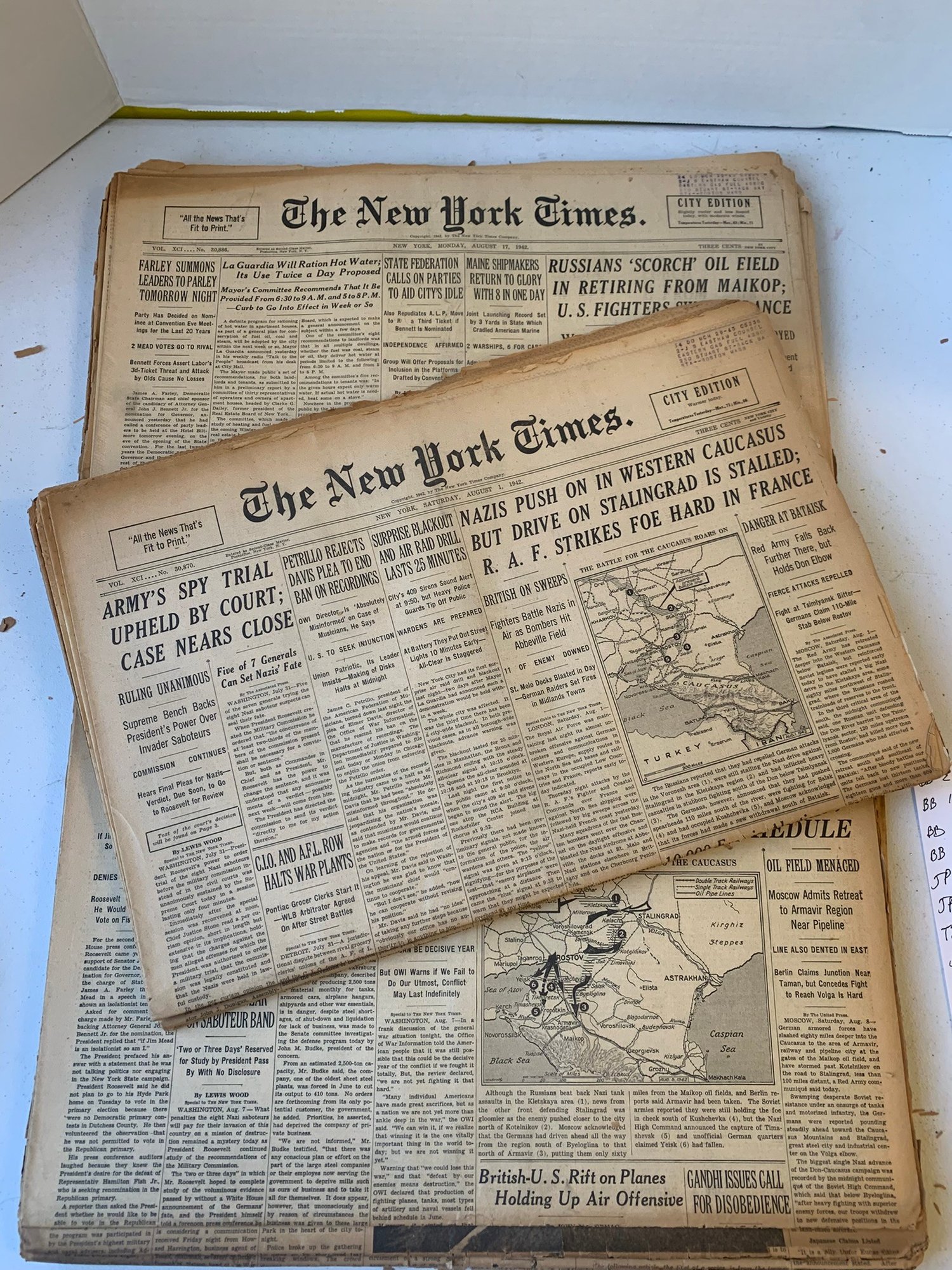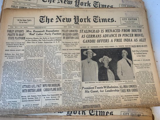 20 EDITIONS OF THE NEW YORK TIMES FROM AUGUST 1942, WW2