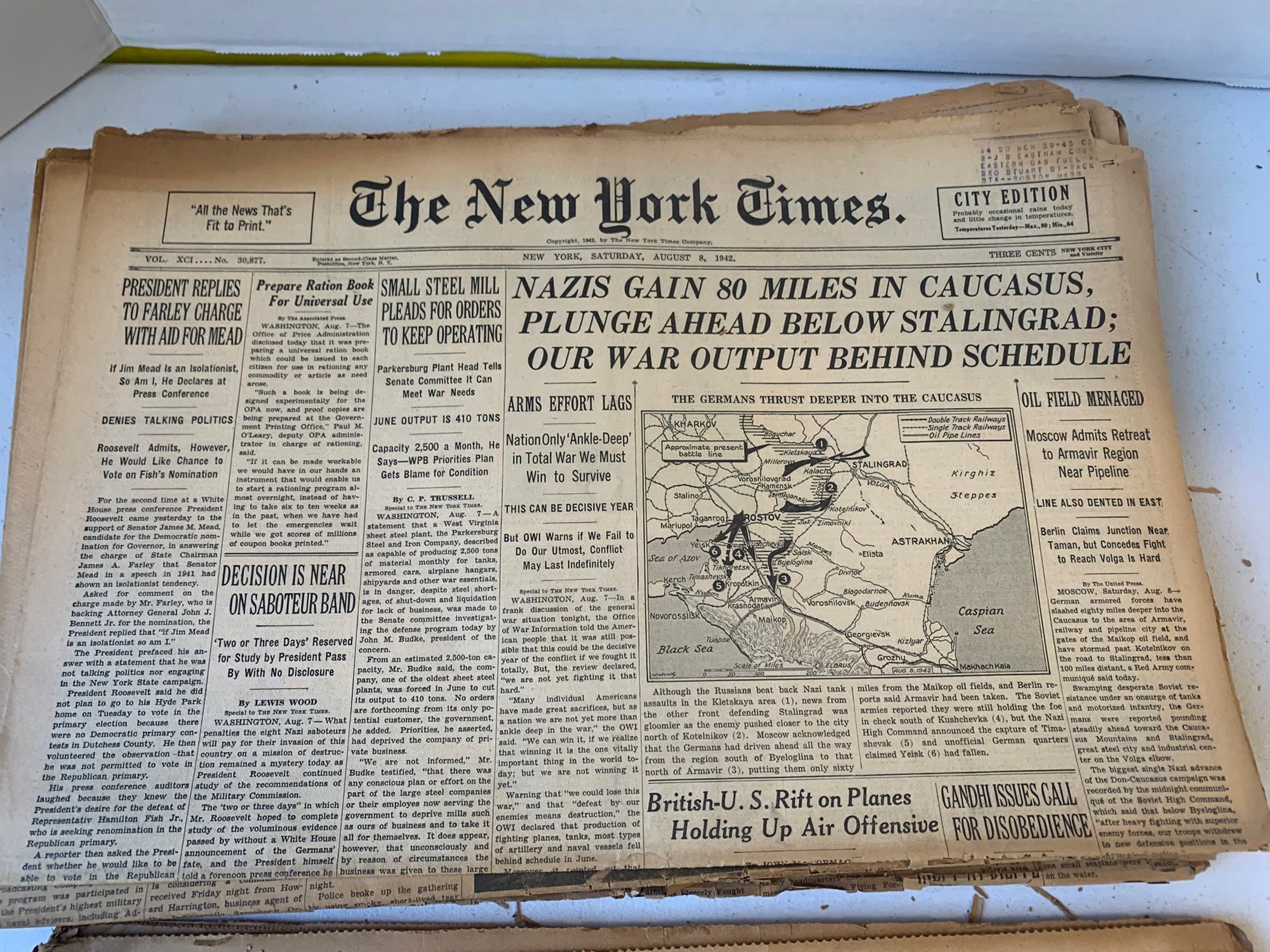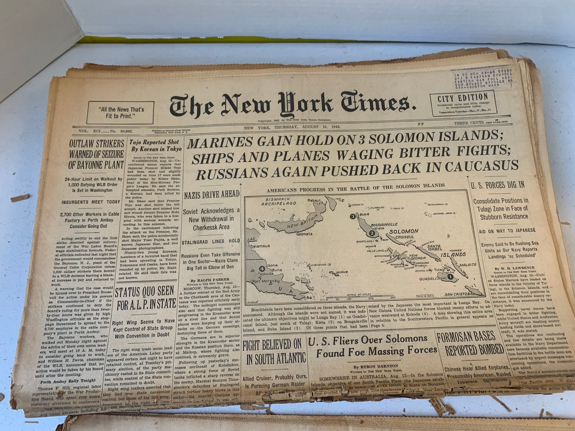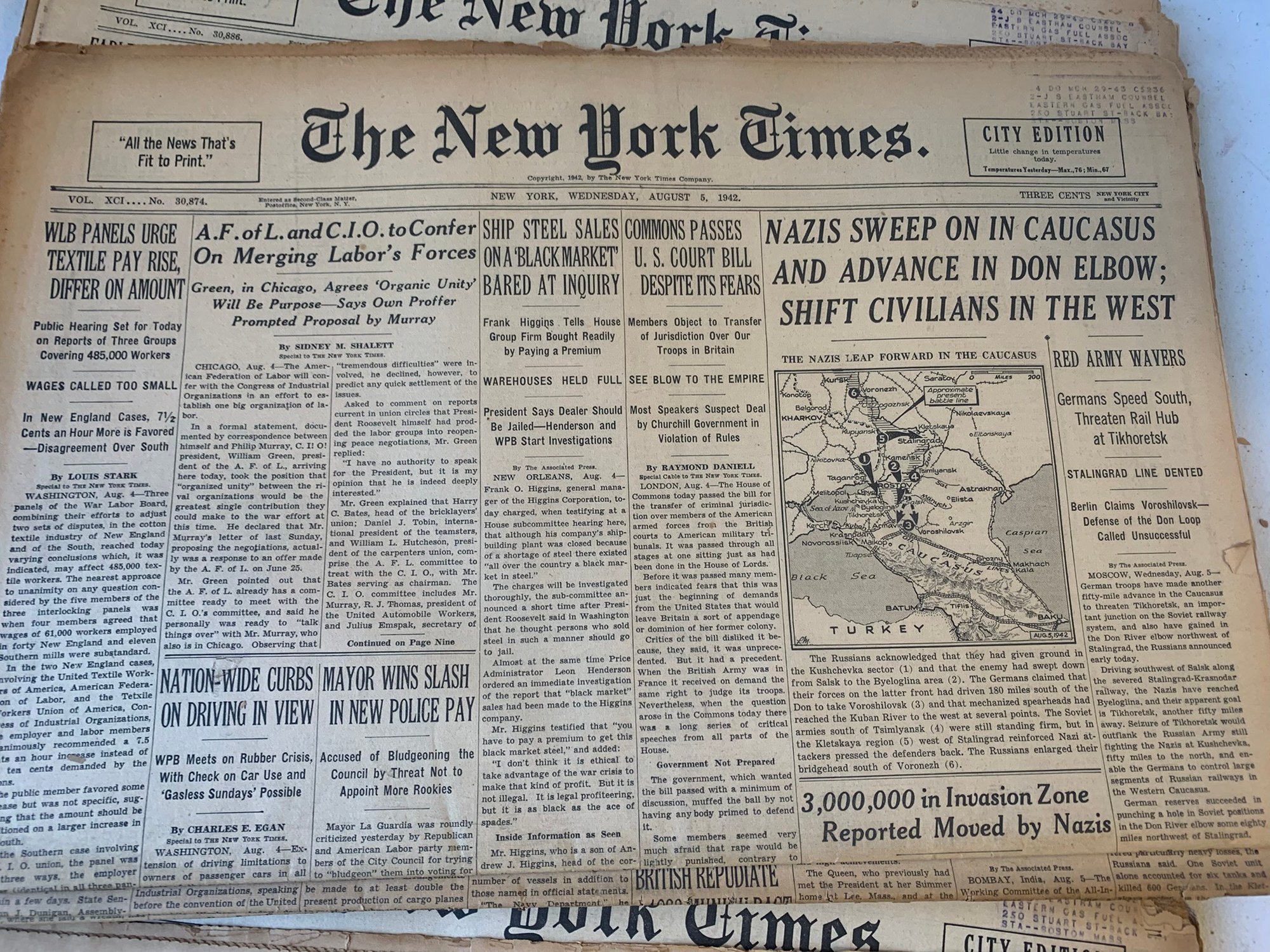 20 EDITIONS OF THE NEW YORK TIMES FROM AUGUST 1942, WW2