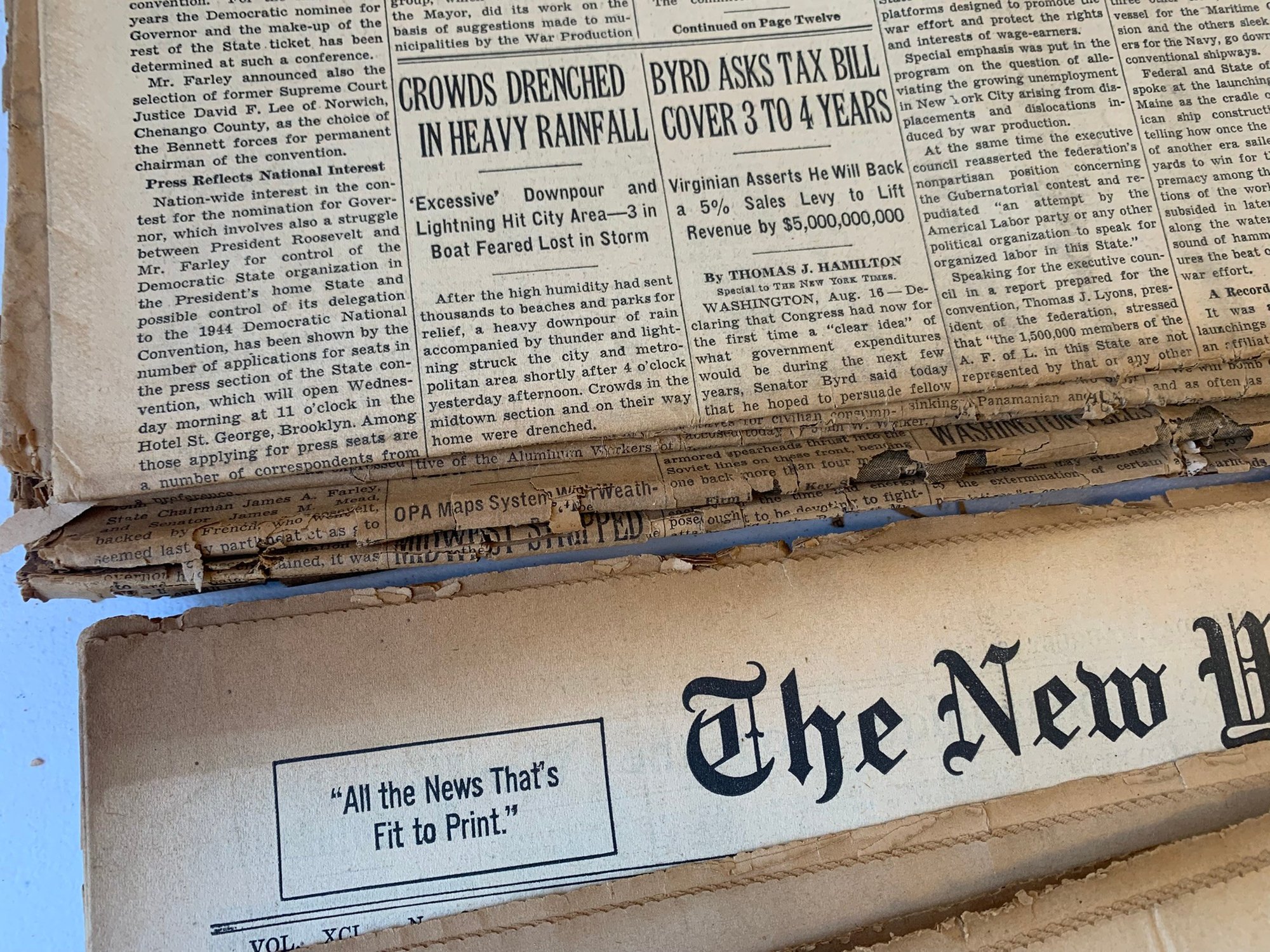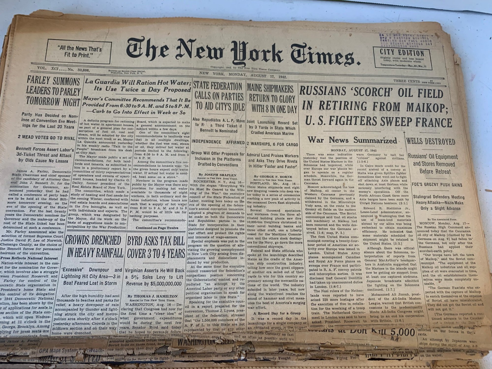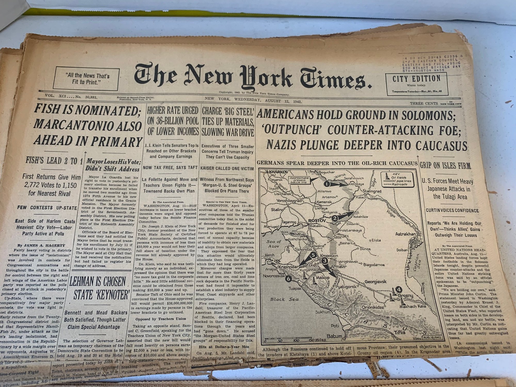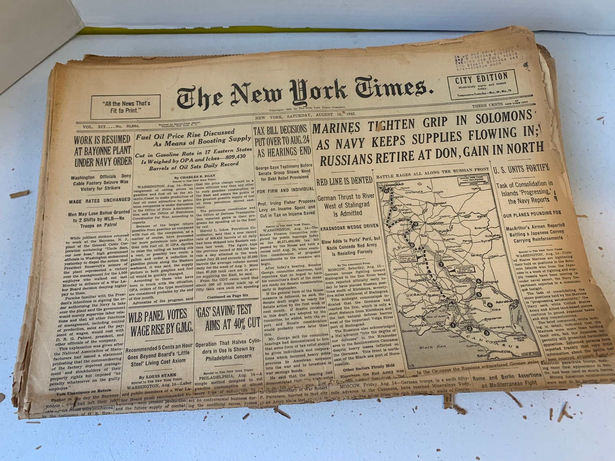 20 EDITIONS OF THE NEW YORK TIMES FROM AUGUST 1942, WW2