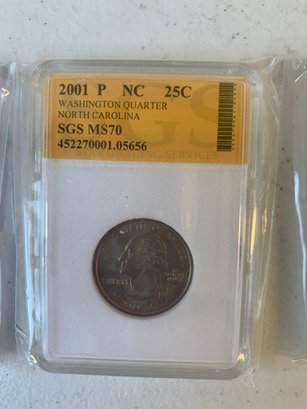 2001 P-D-S NORTH AND SOUTH CAROLINA QUARTERS, MS 70, ( S IS SILVER)