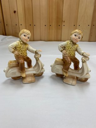 BOYS ON SCOOTERS. NO CHIPS OR CRACKS. 5"W X 6"H
