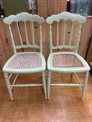 PAIR OF PAINTED GREEN CHAIRS STURDY