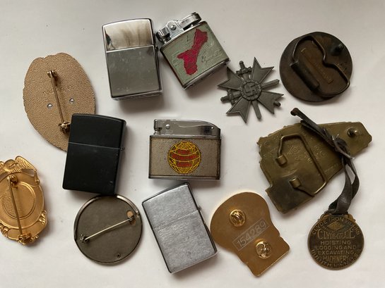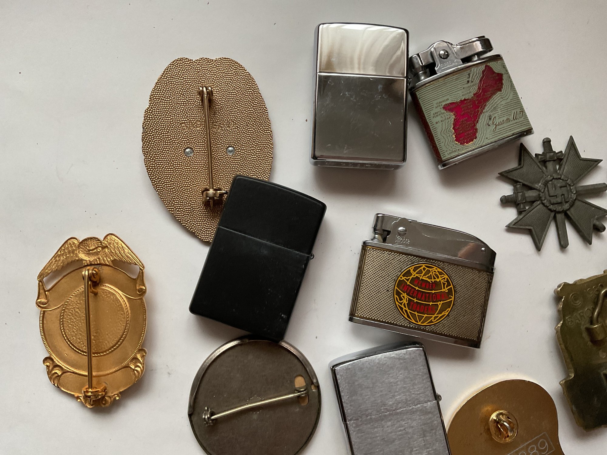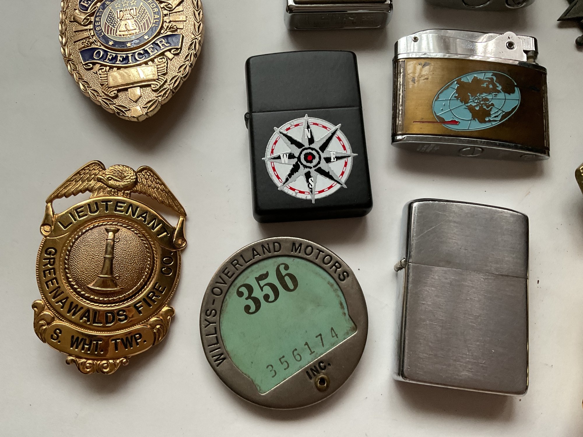 Collectible lighters, badges, belt buckles etc. please view the photos for details.