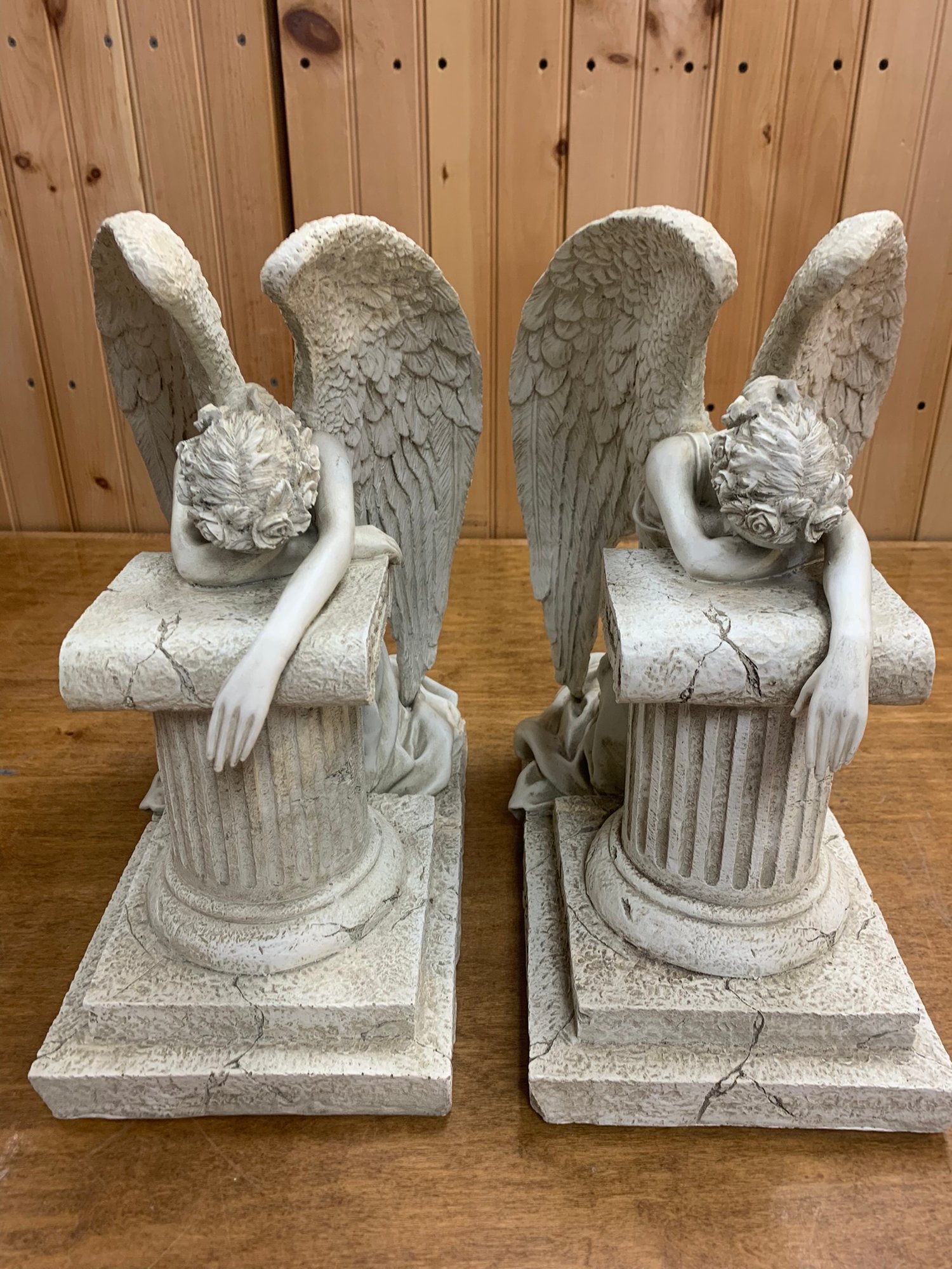 PAIR OF HARD RESIN LAWN DECOR ANGELS