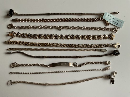 This lot of sterling bracelets includes 2 authentic Pandora charm bracelets. There is a similar one but I don’t recognize the maker.