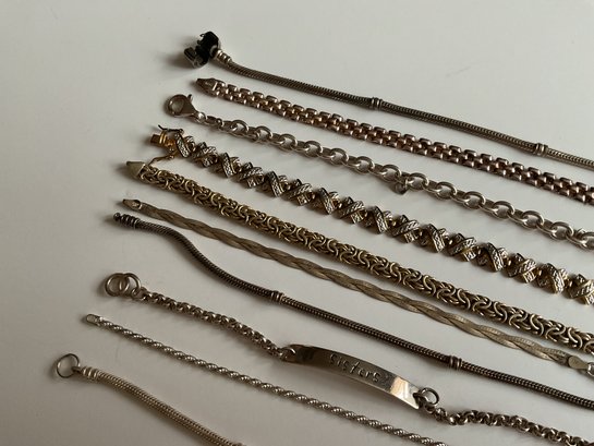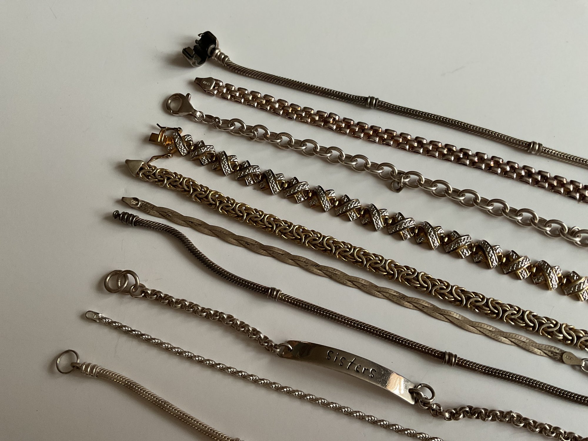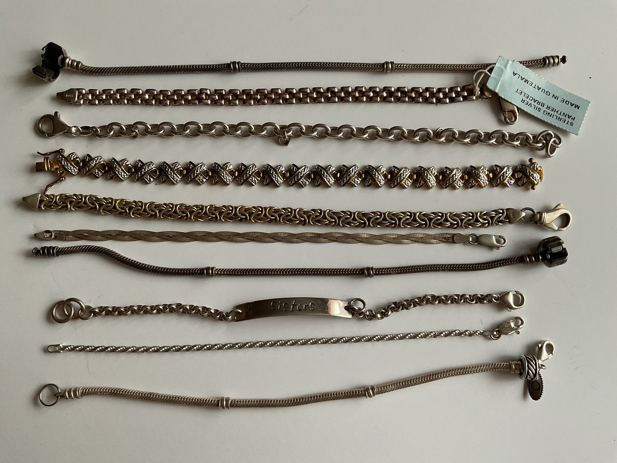 All of these bracelets are ready to wear but most have a good amount of cleaning necessary. Ten bracelets total. 7”-8” in length. 109.9 grams