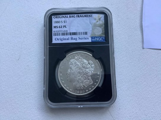 ORIGINAL BAG FRAGMENT 1880-S MORGAN MS 62 PL