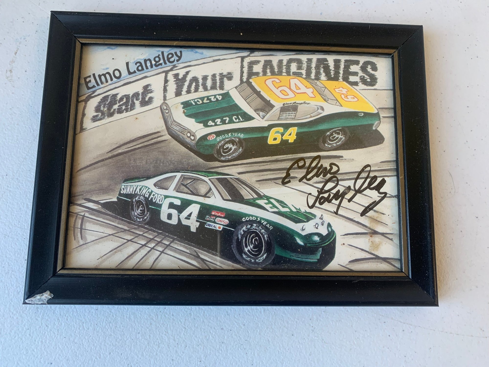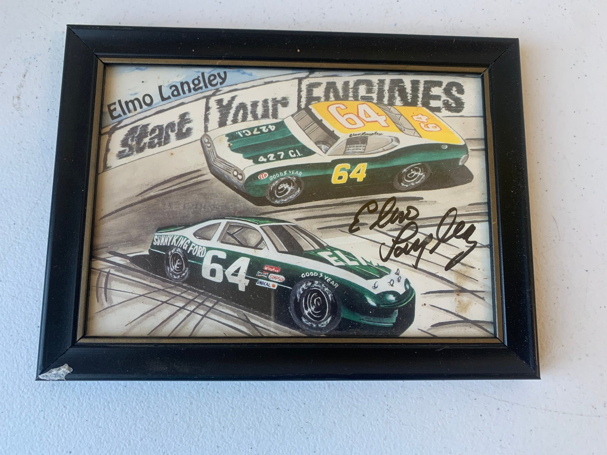 SIGNED ELMO LANGLEY FRAMED PICTURE, 7.5" X 5.5"