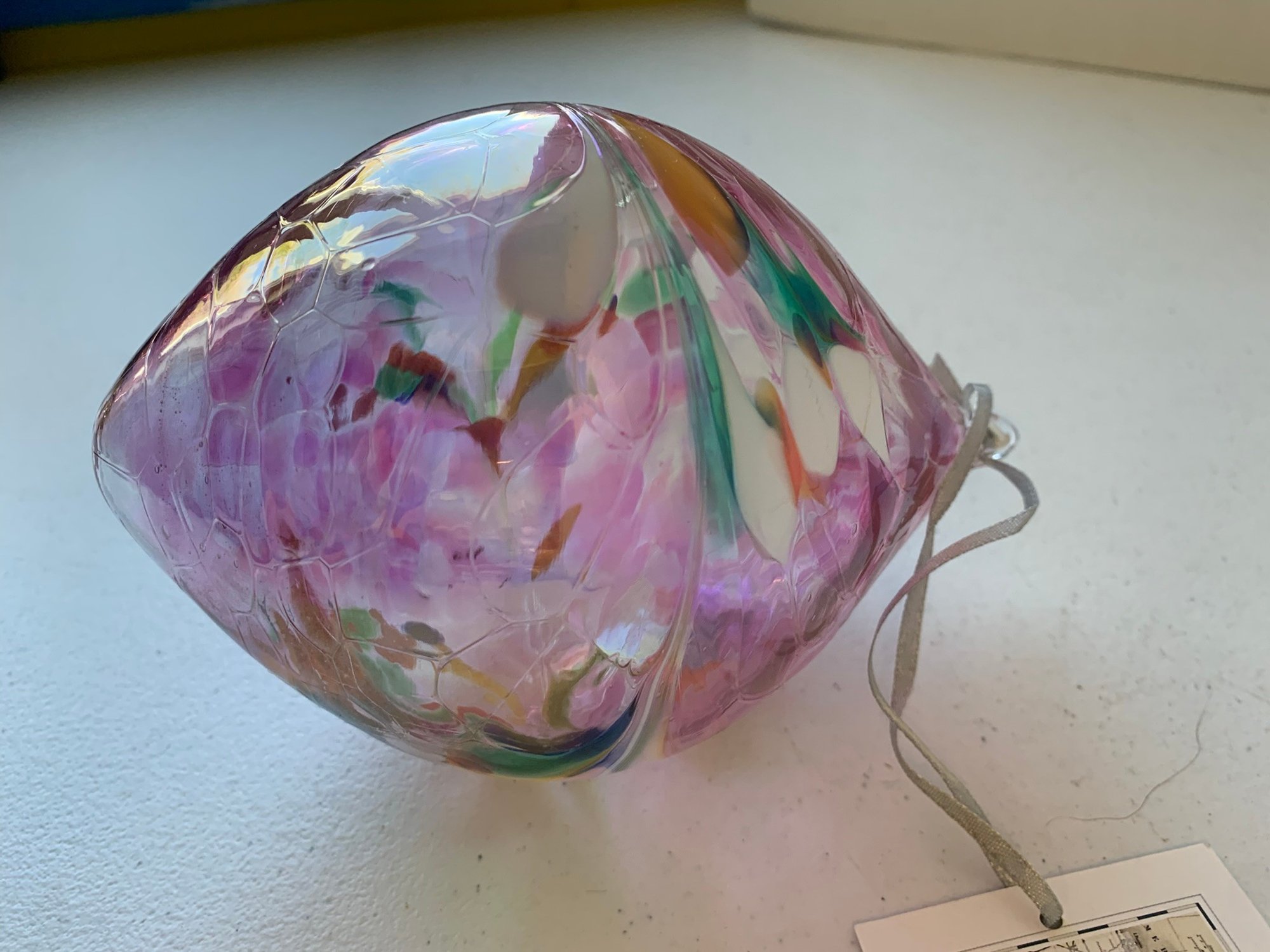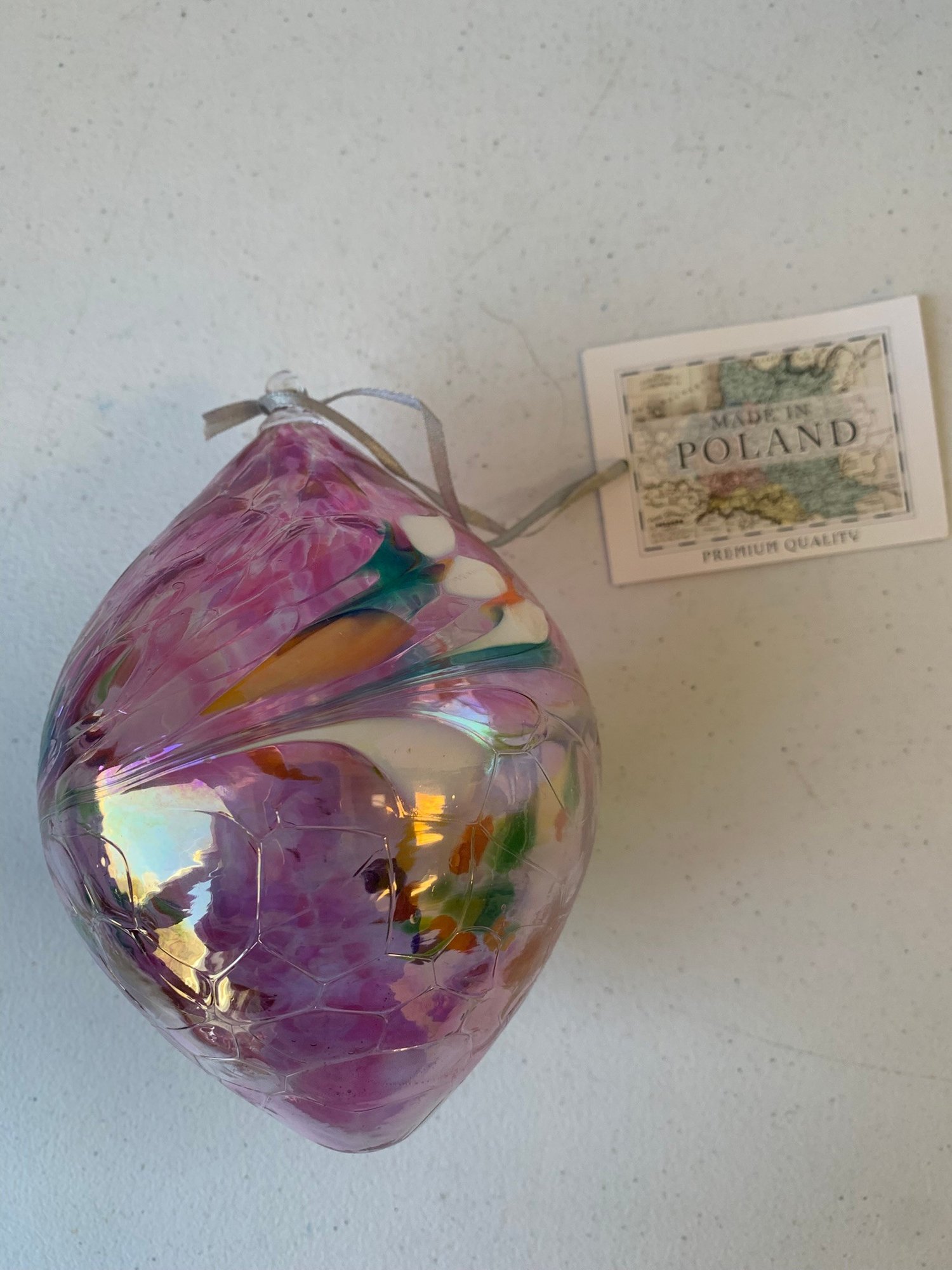 STUNNING HANDBLOWN GLASS ORNAMENT/ WITCH BALL, 6"H #2 POLAND