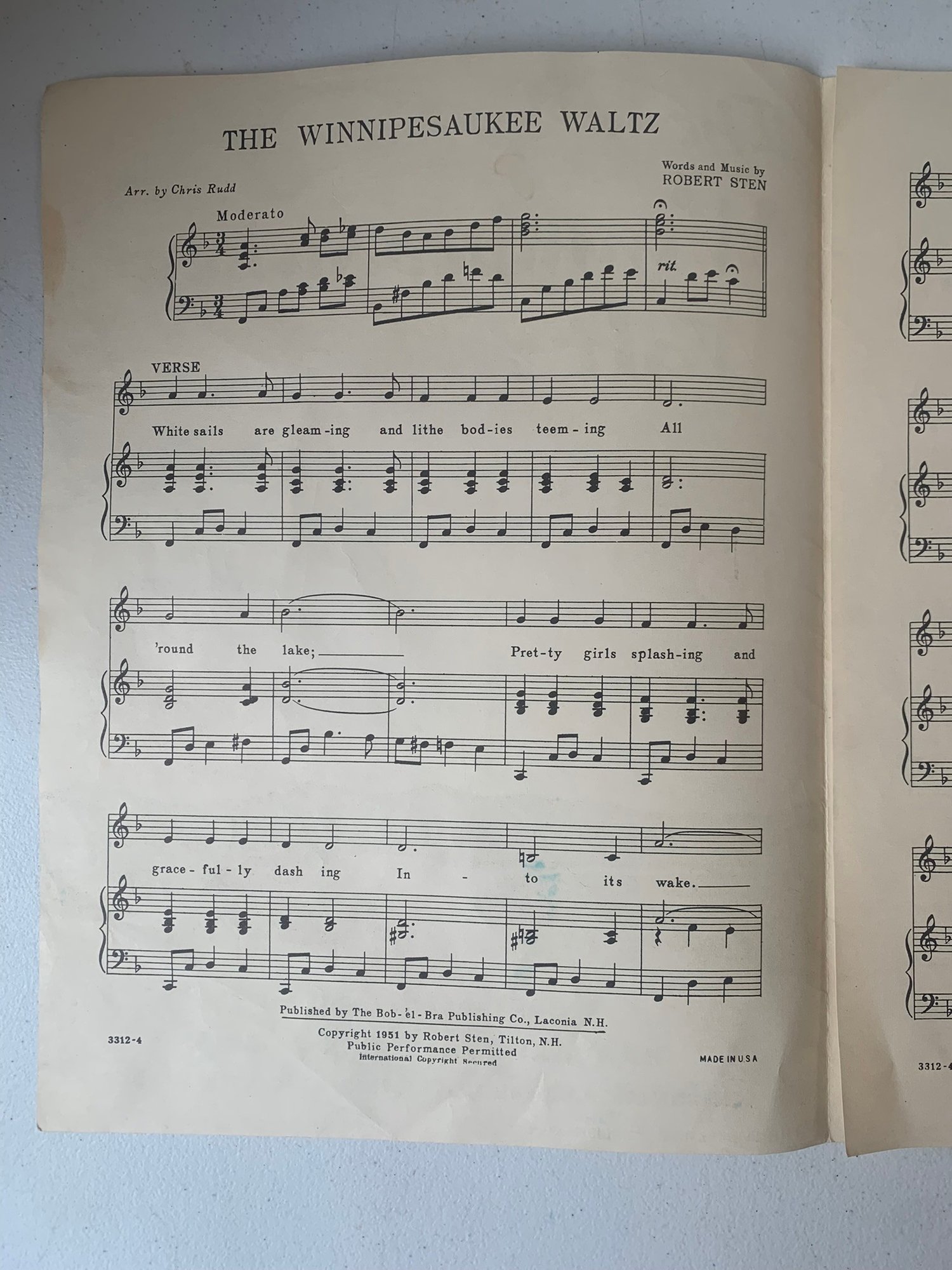 THE WINNIPESAUKEE WALTZ SHEET MUSIC, 1952 CENTER HARBOR NH