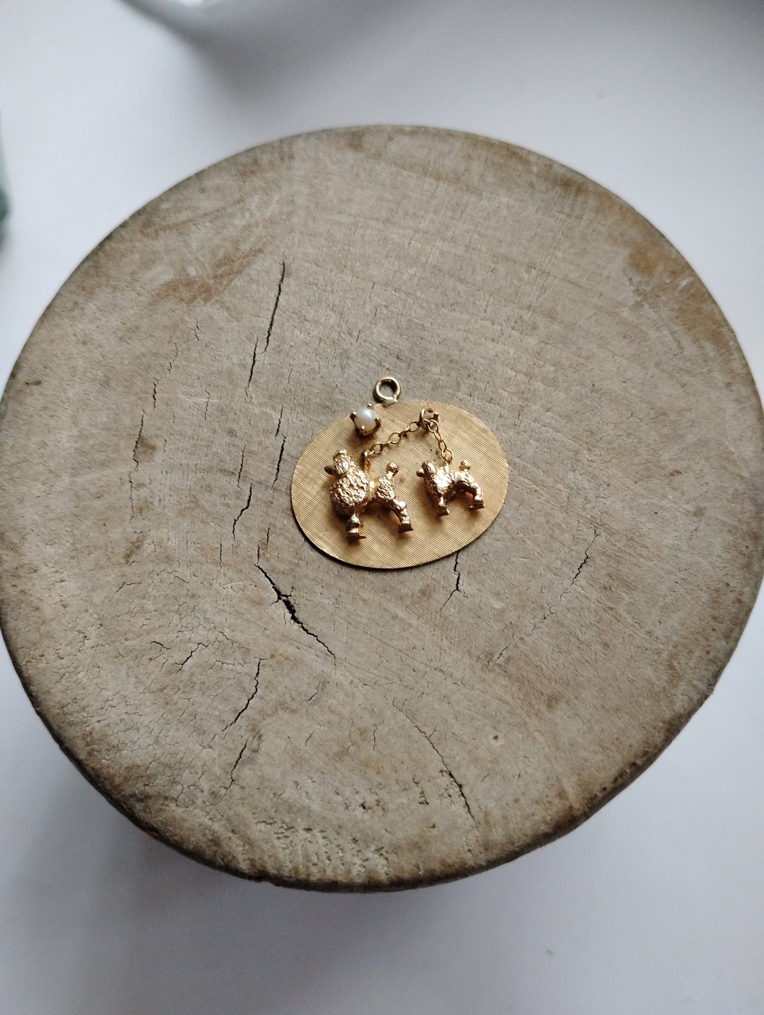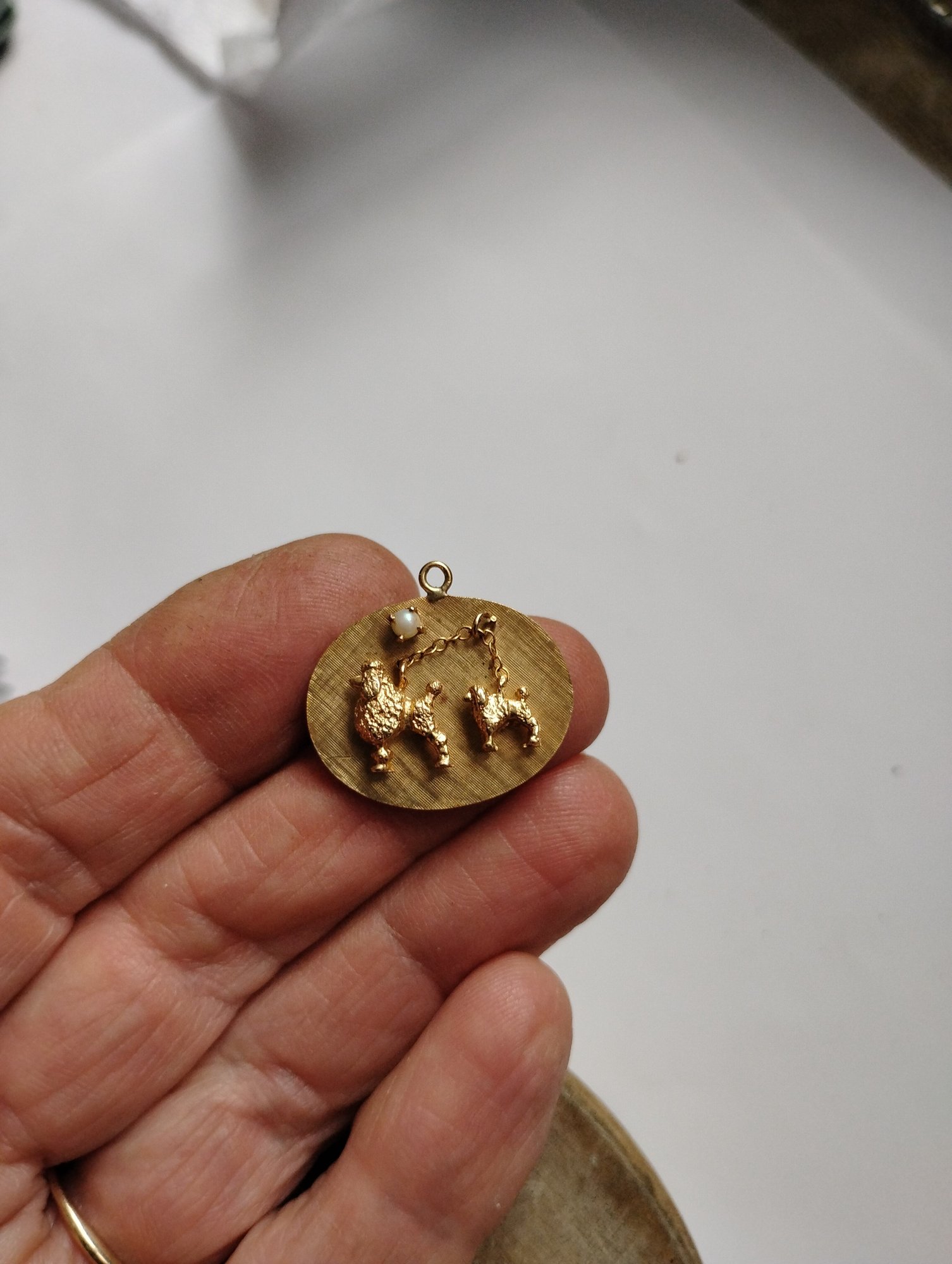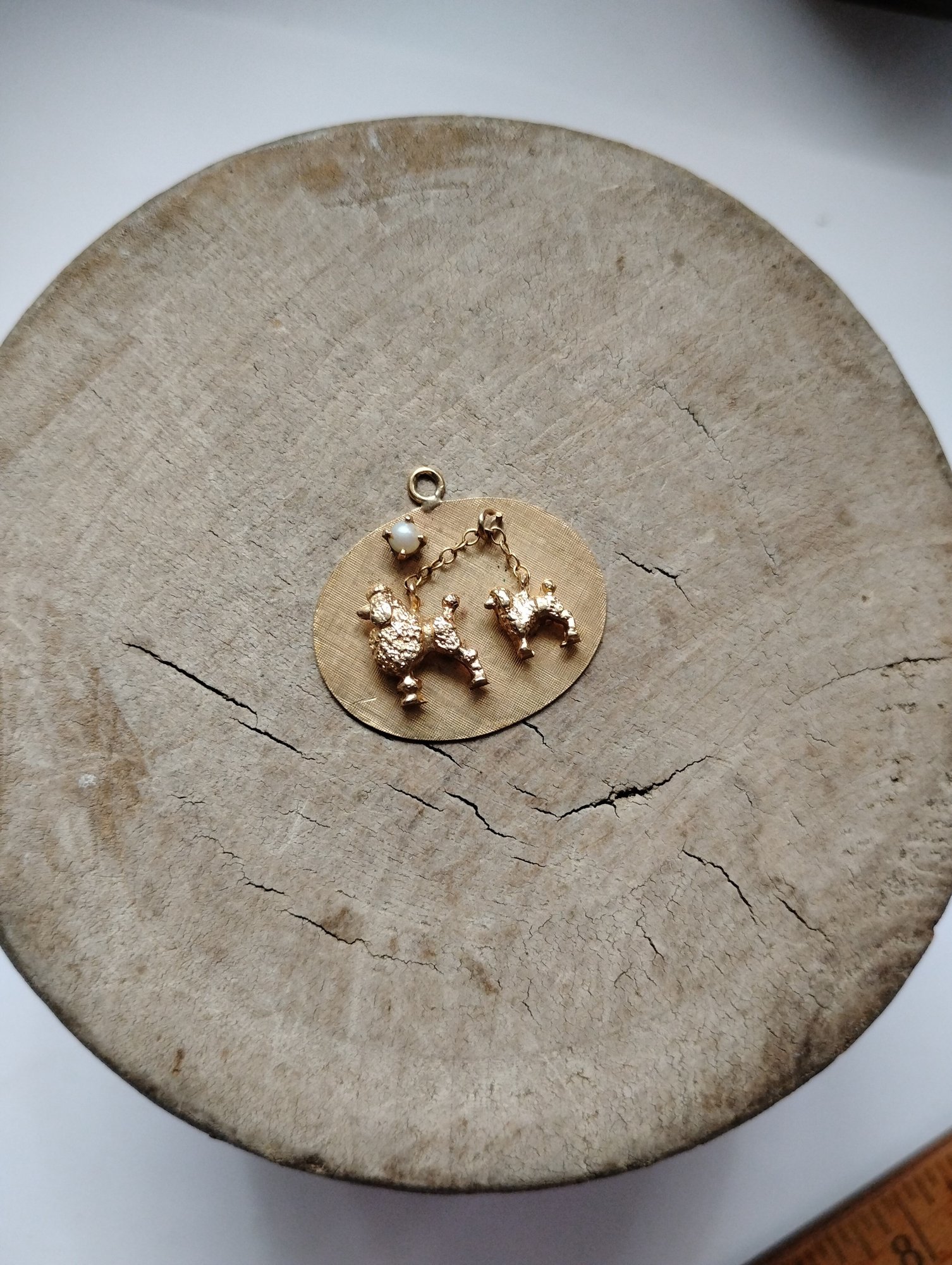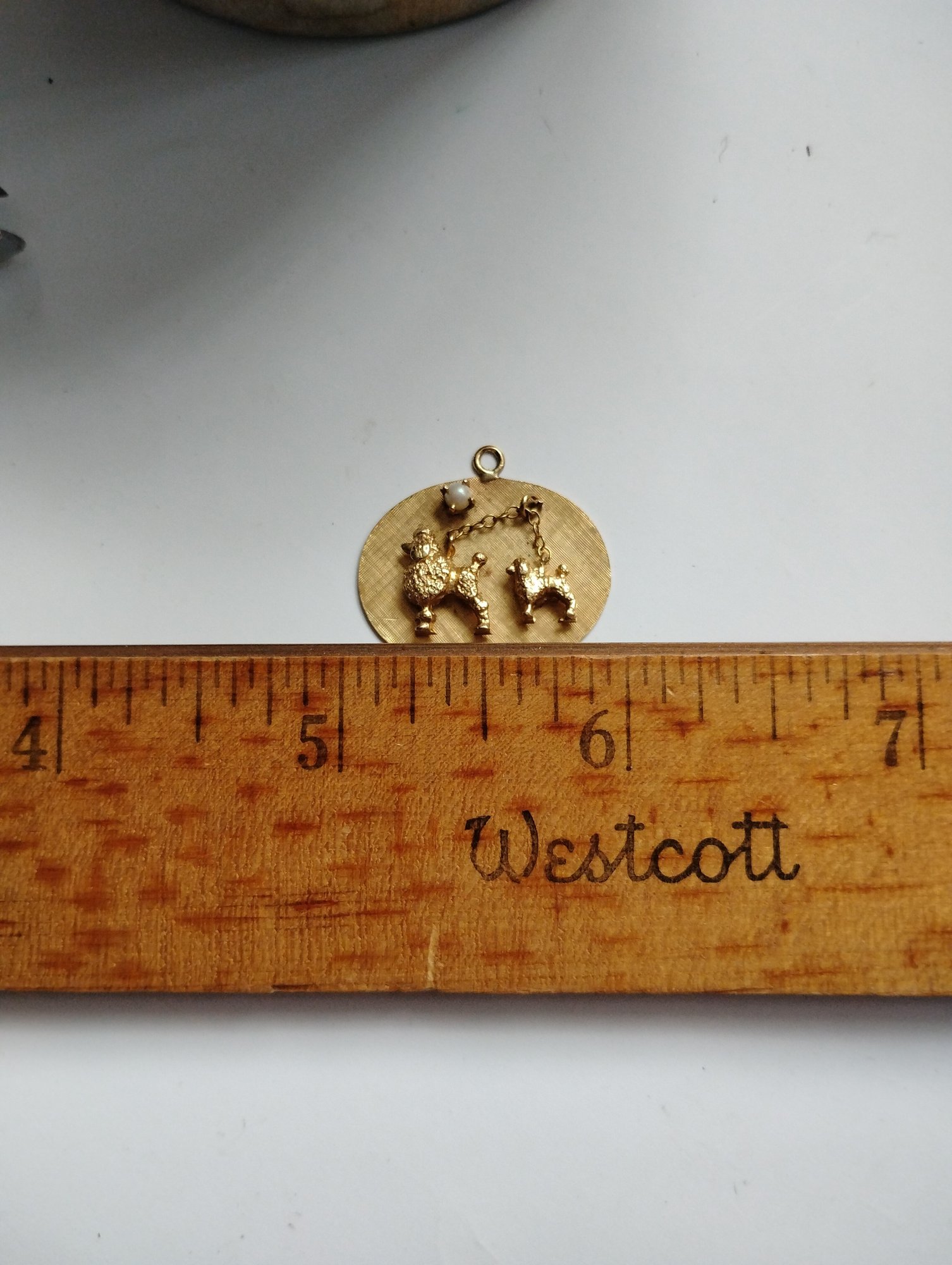 This is a wonderful vintage 14k solid gold poodle charm featuring 2 poodles on leashes.