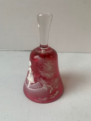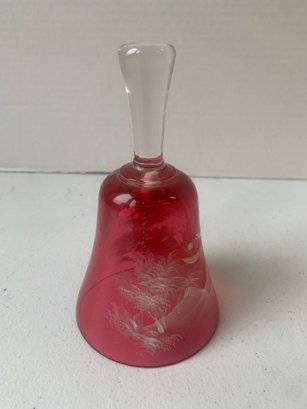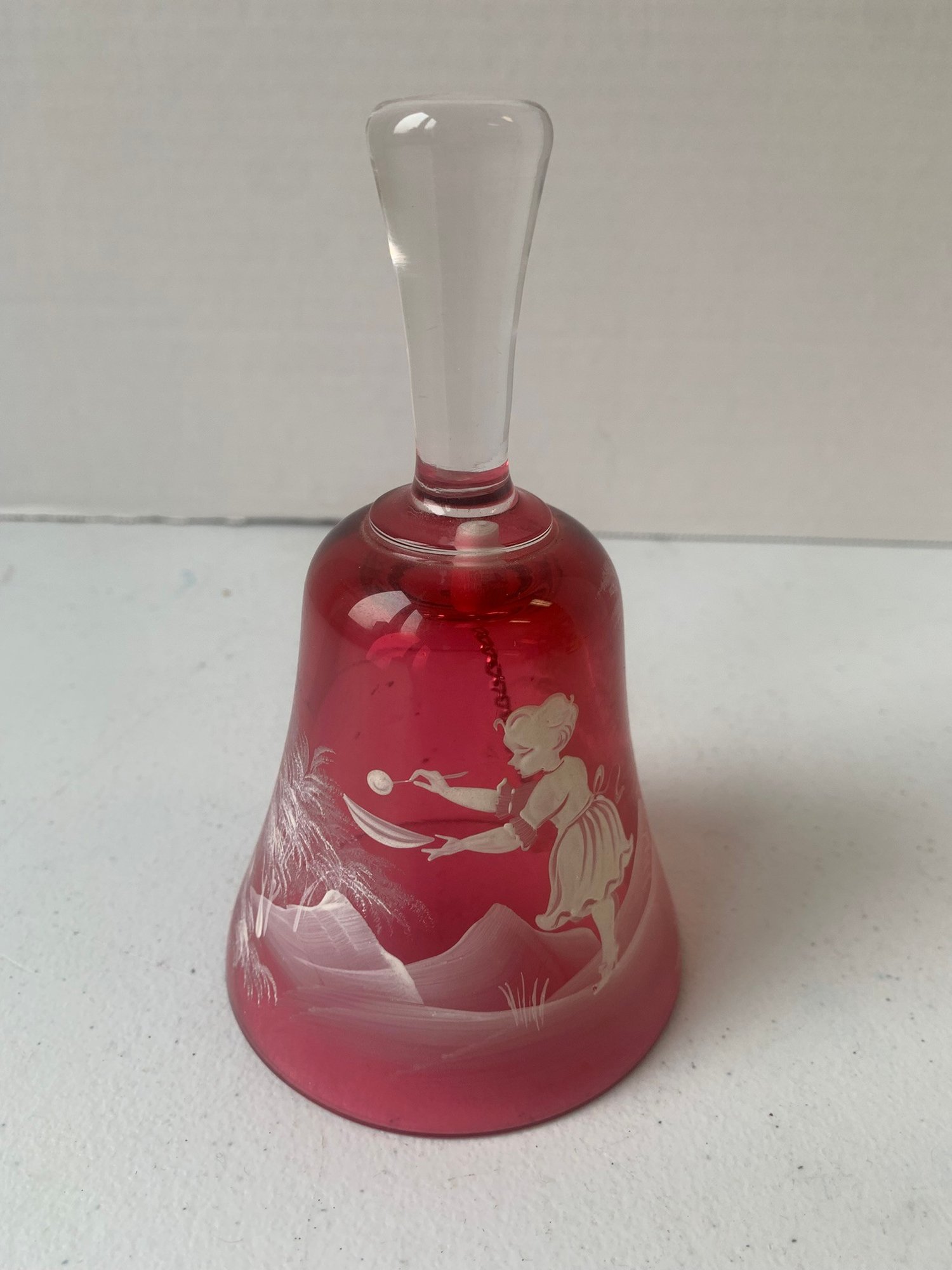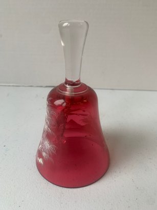 VINTAGE MARY GREGORY CRANBERRY GLASS FENTON BELL, 5.5"H