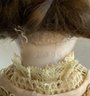10 ½” Shirley Antoon FG artist doll 2000, blue glass eyes, CM, brown mohair wig, compo body, lt pink wool & lace dress (lt soiling), original tag