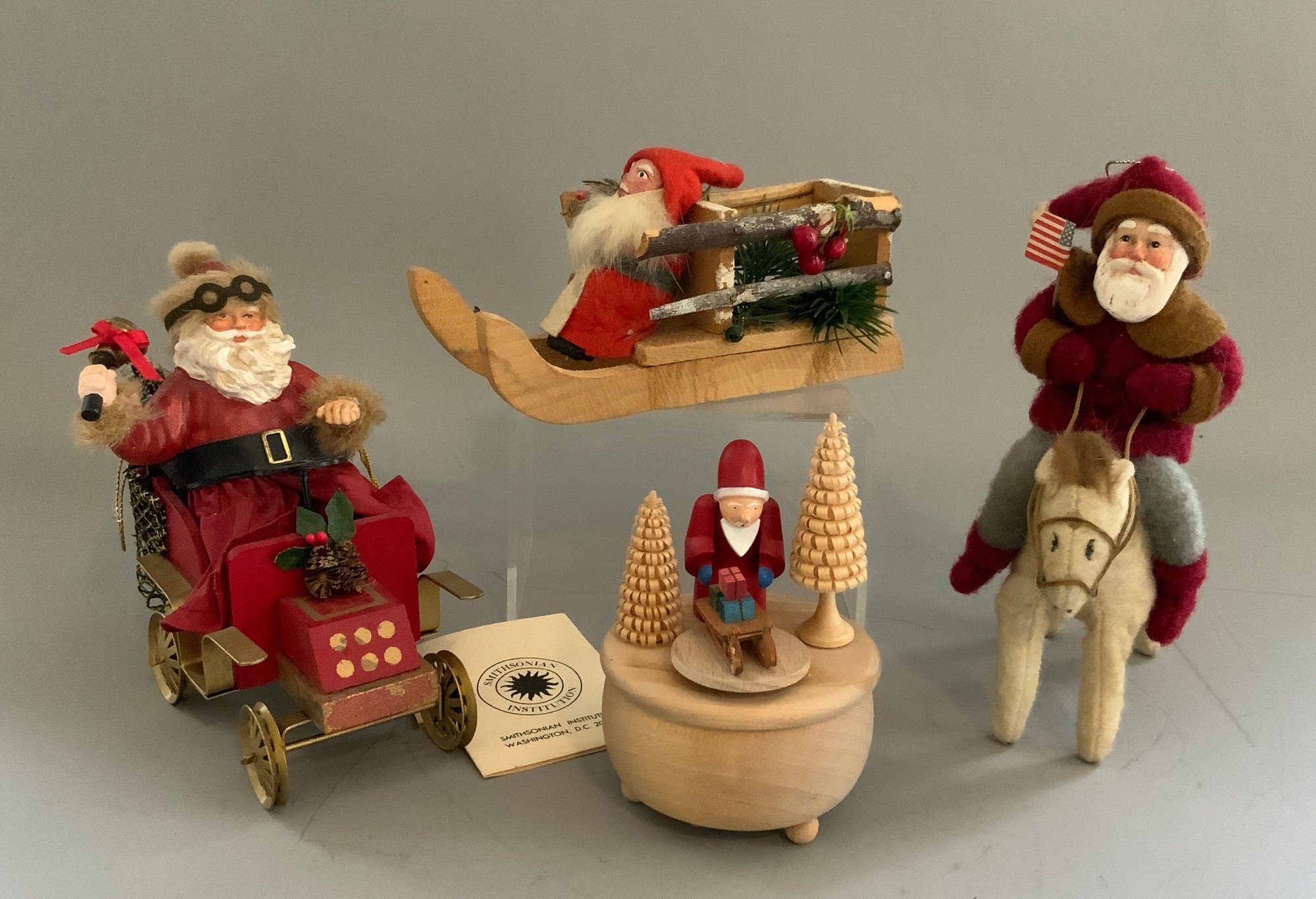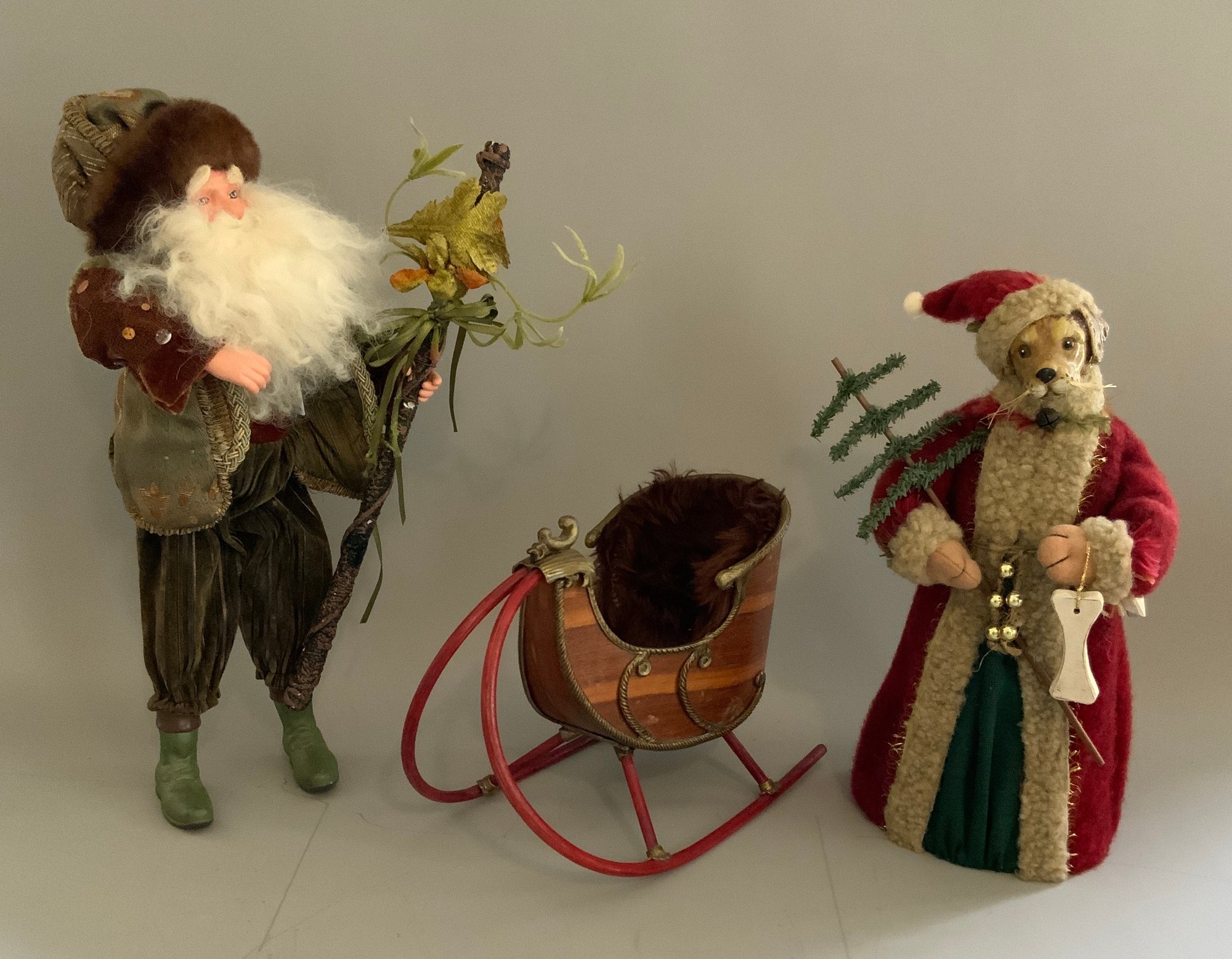 11 – Assorted Santa figures & sleighs 4” – 14” various styles & ages