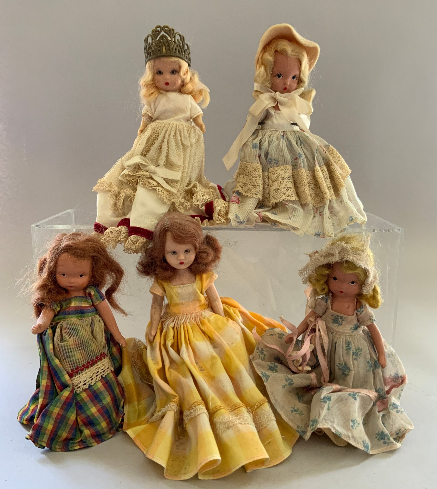 12 – 5” Assorted Nancy Ann Story Book dolls, played with condition